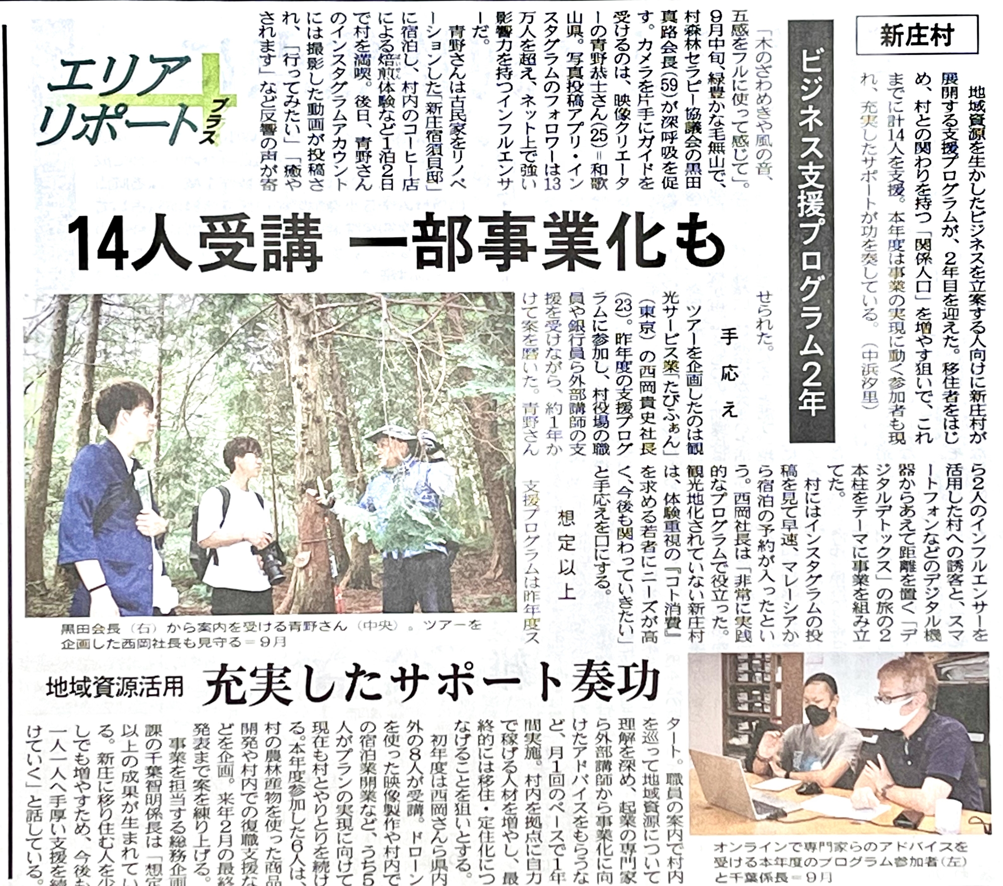 山陽新聞朝刊「作州ワイド版」で、新庄村の記事が!! 黒田さん、千葉さん、そして香山くんも顔が見える。