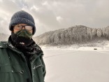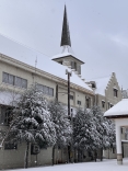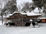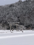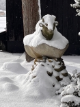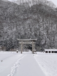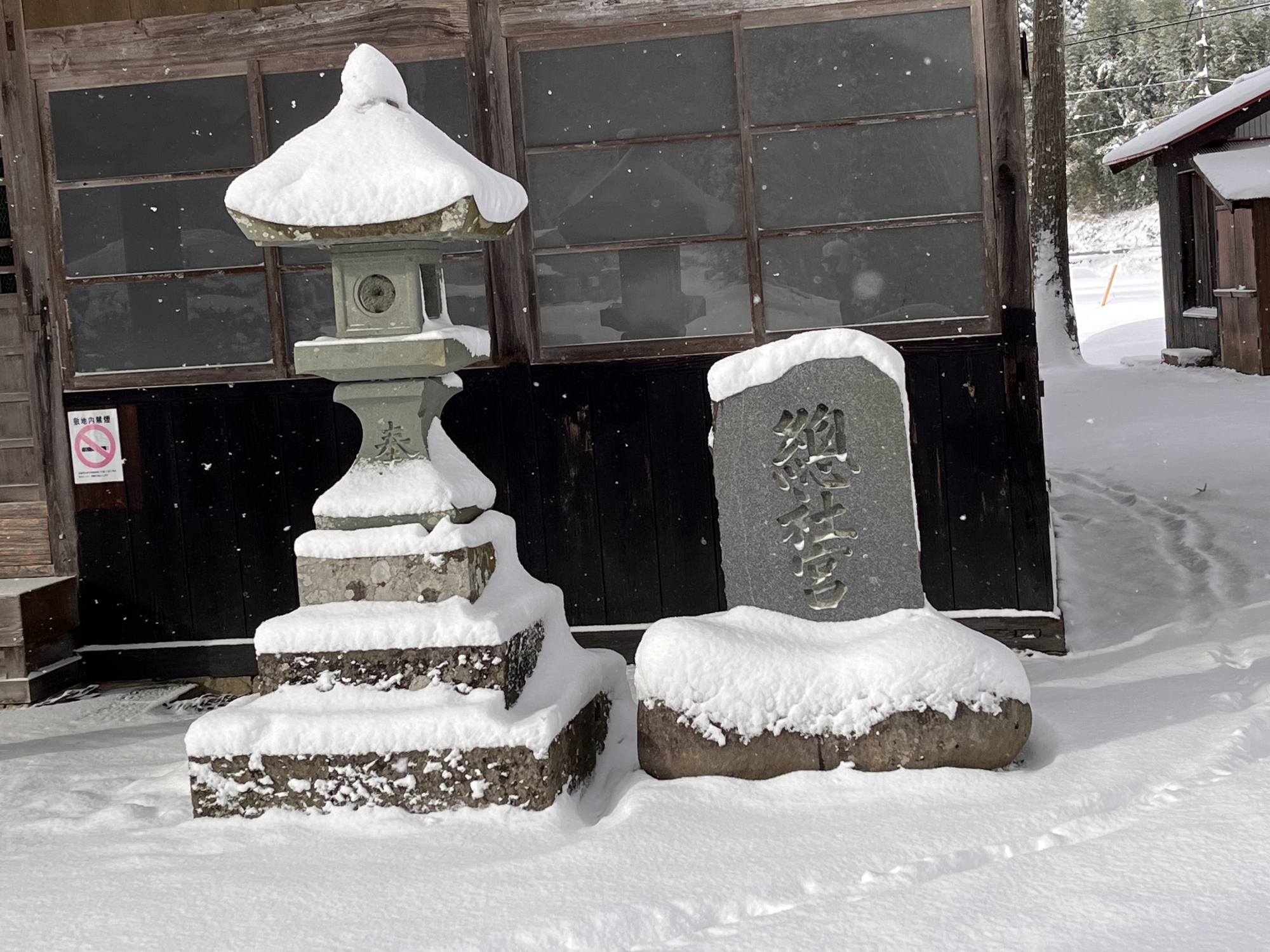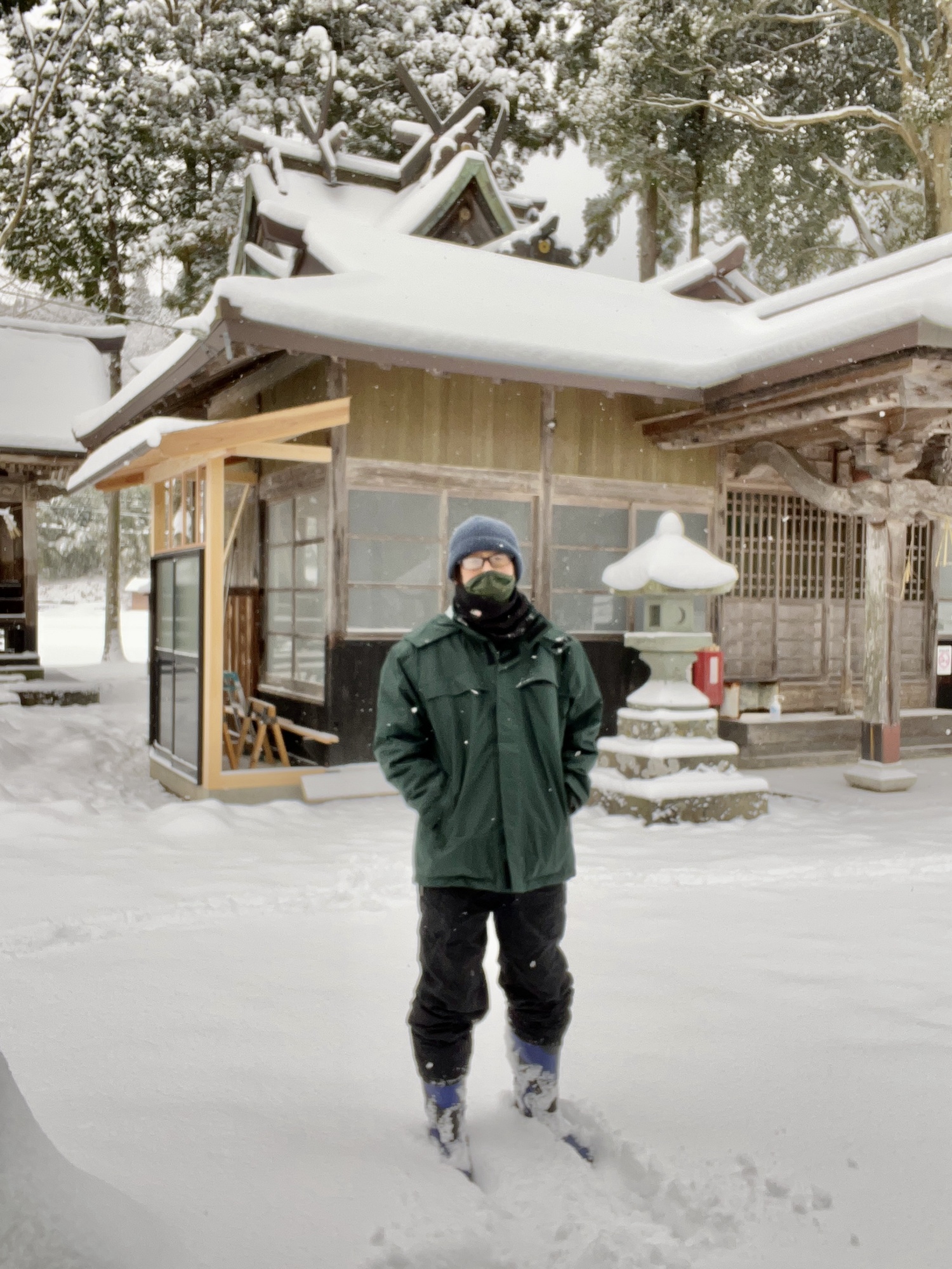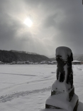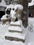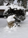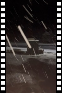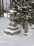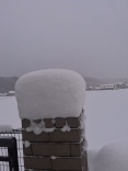 夕方の雪かき時・・・昨晩から、門柱の処、これまで積もりました。