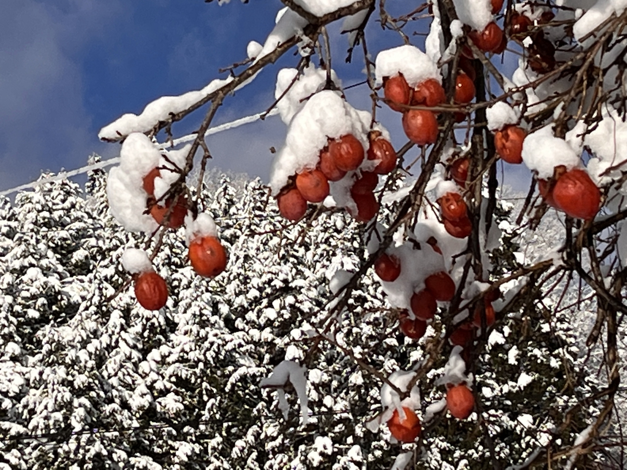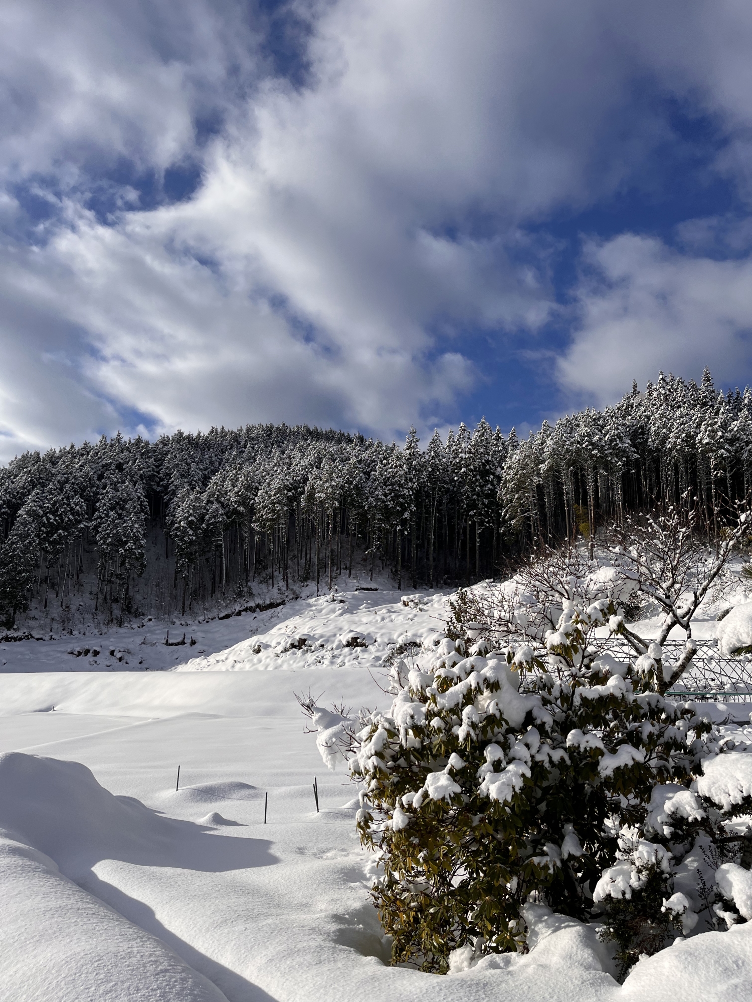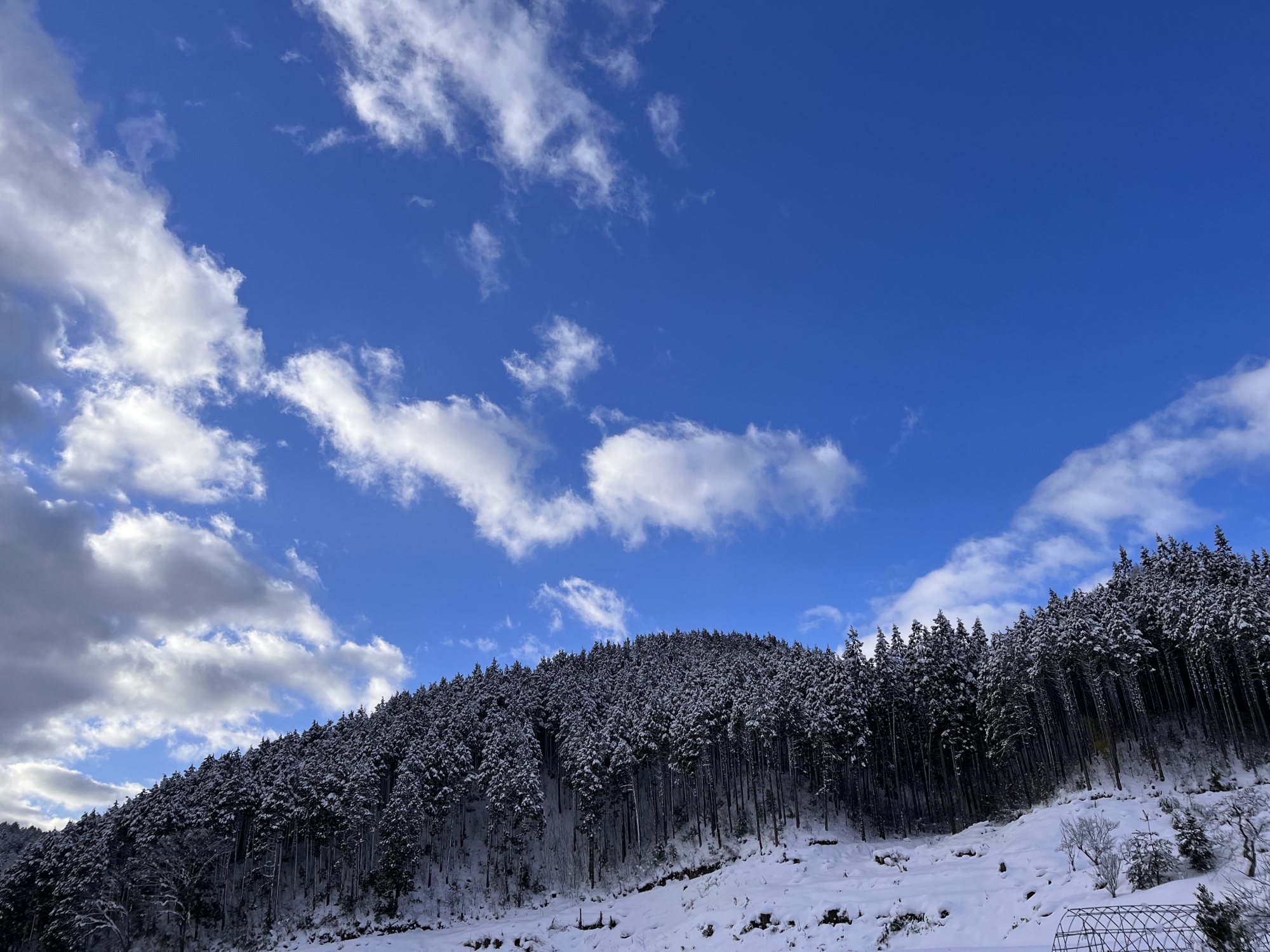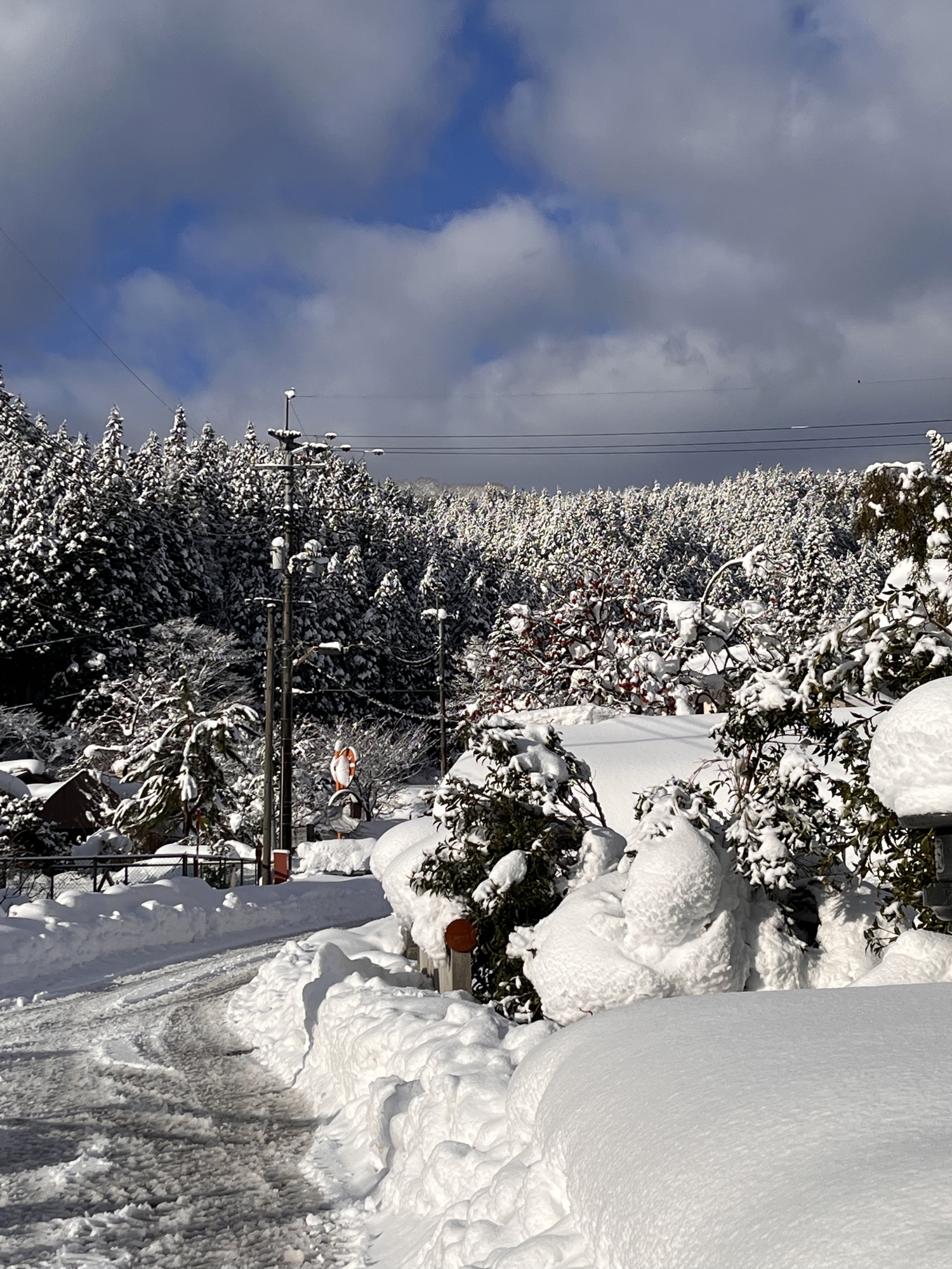 Christmas Dayですね・・・で、少しゆっくり起きて・・でも、雪掻き・・・している最中に・・青空が見えてきました。