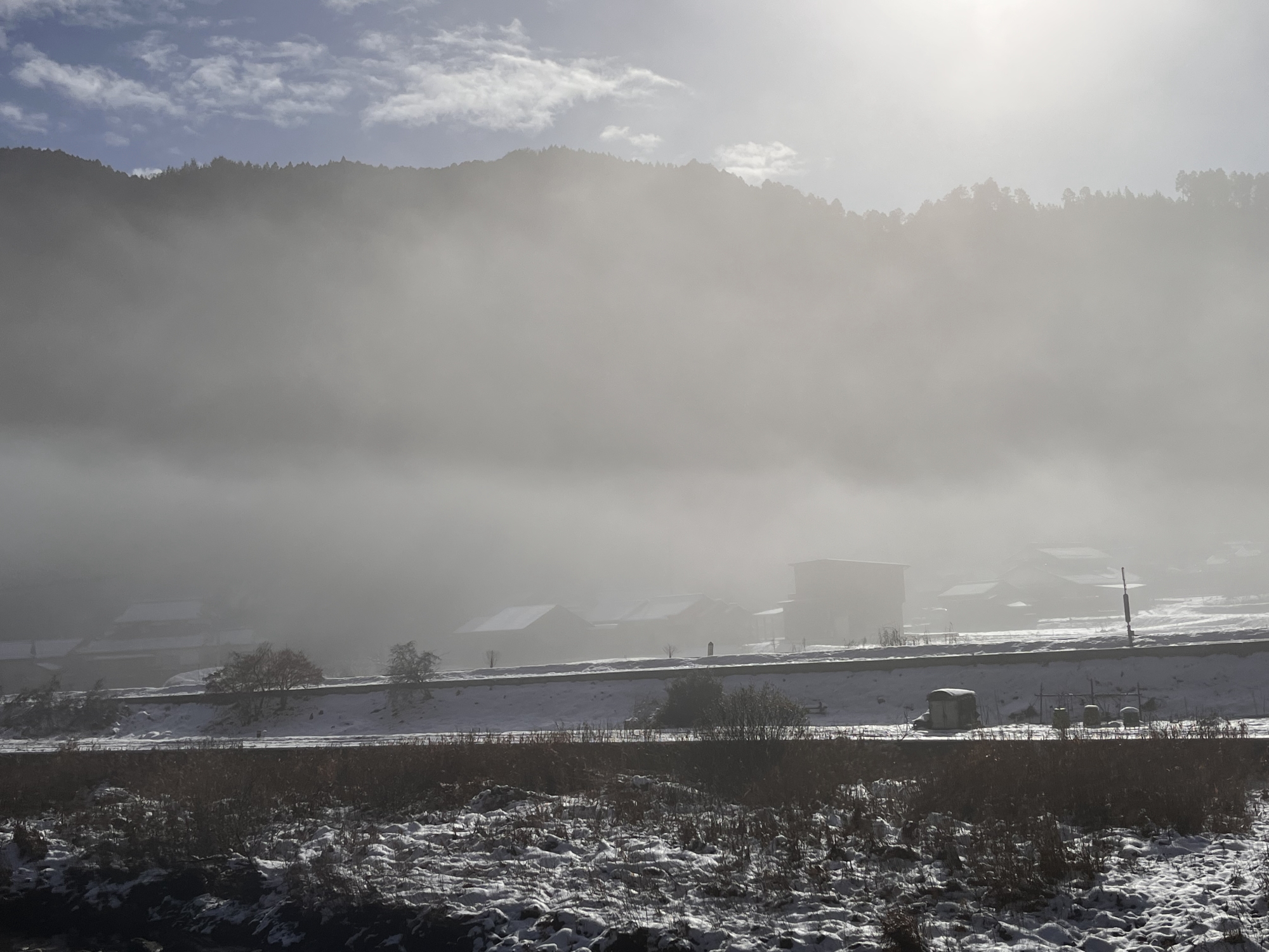 先ずは、勝山から(オートバックスでチェーンを購入・・使わなくて済めば幸いですが、備えあれば憂いなしです)・・・その途中、川霧的な・・・あるいは、多分、積雪からの湯気っていうか・・・。