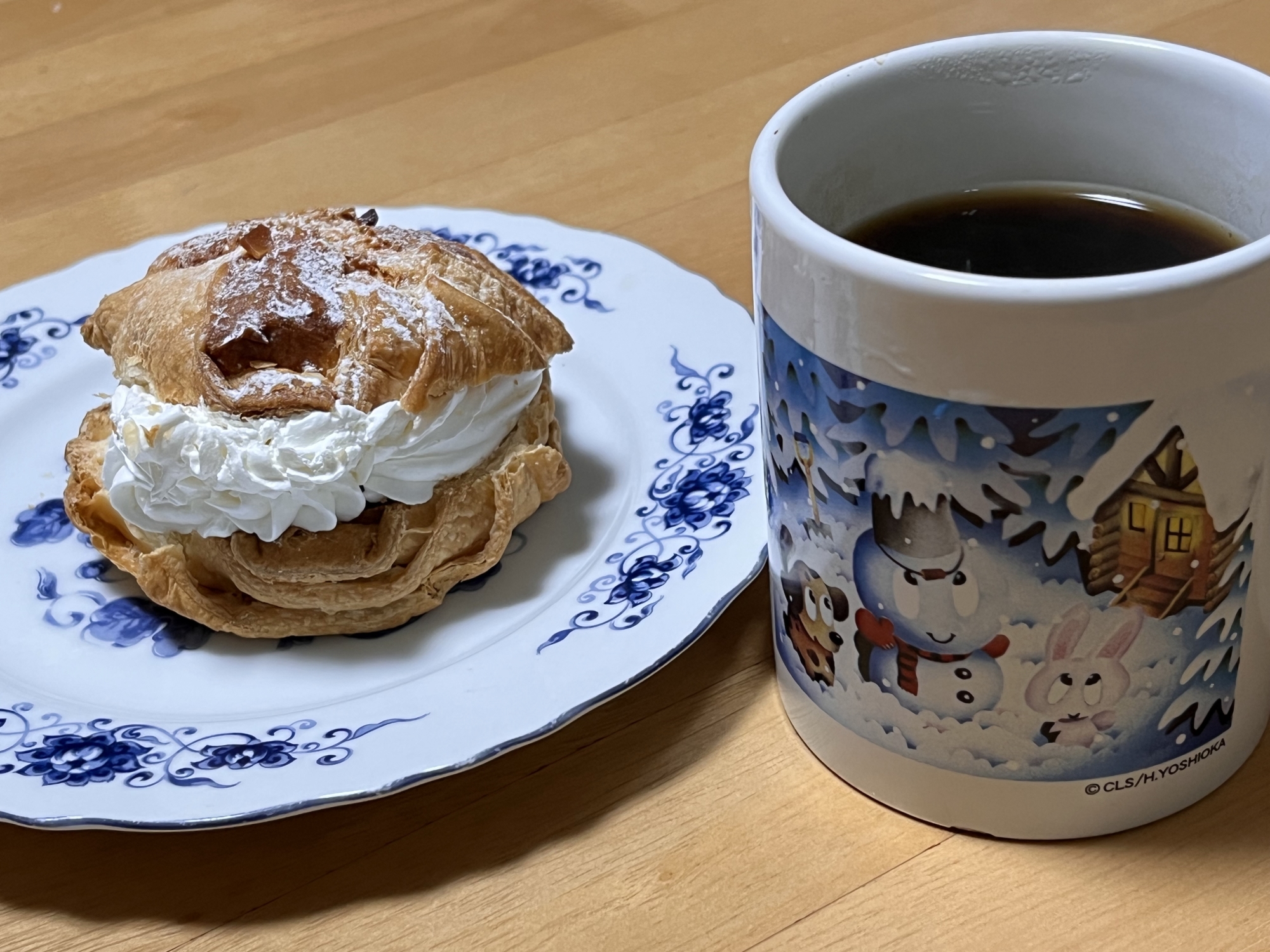 さて・・・今日はクリスマスなので「あんホイップシュー」と「骨付きチキン」と・・。