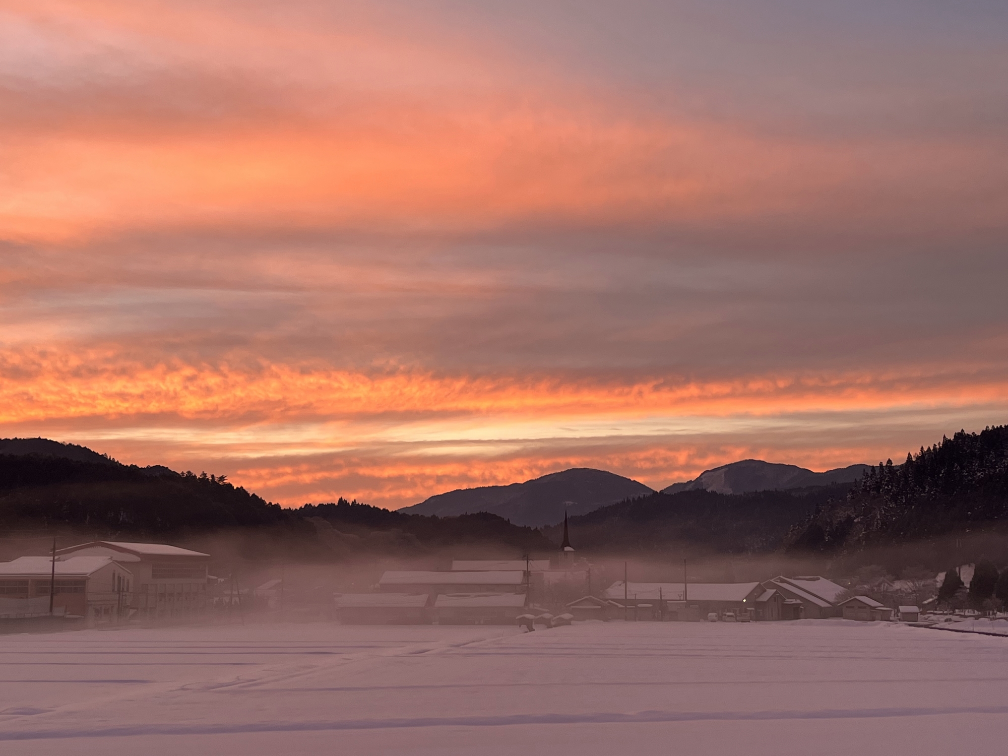 朝は、遠くに少しだけ雲の切れ間・・・。
