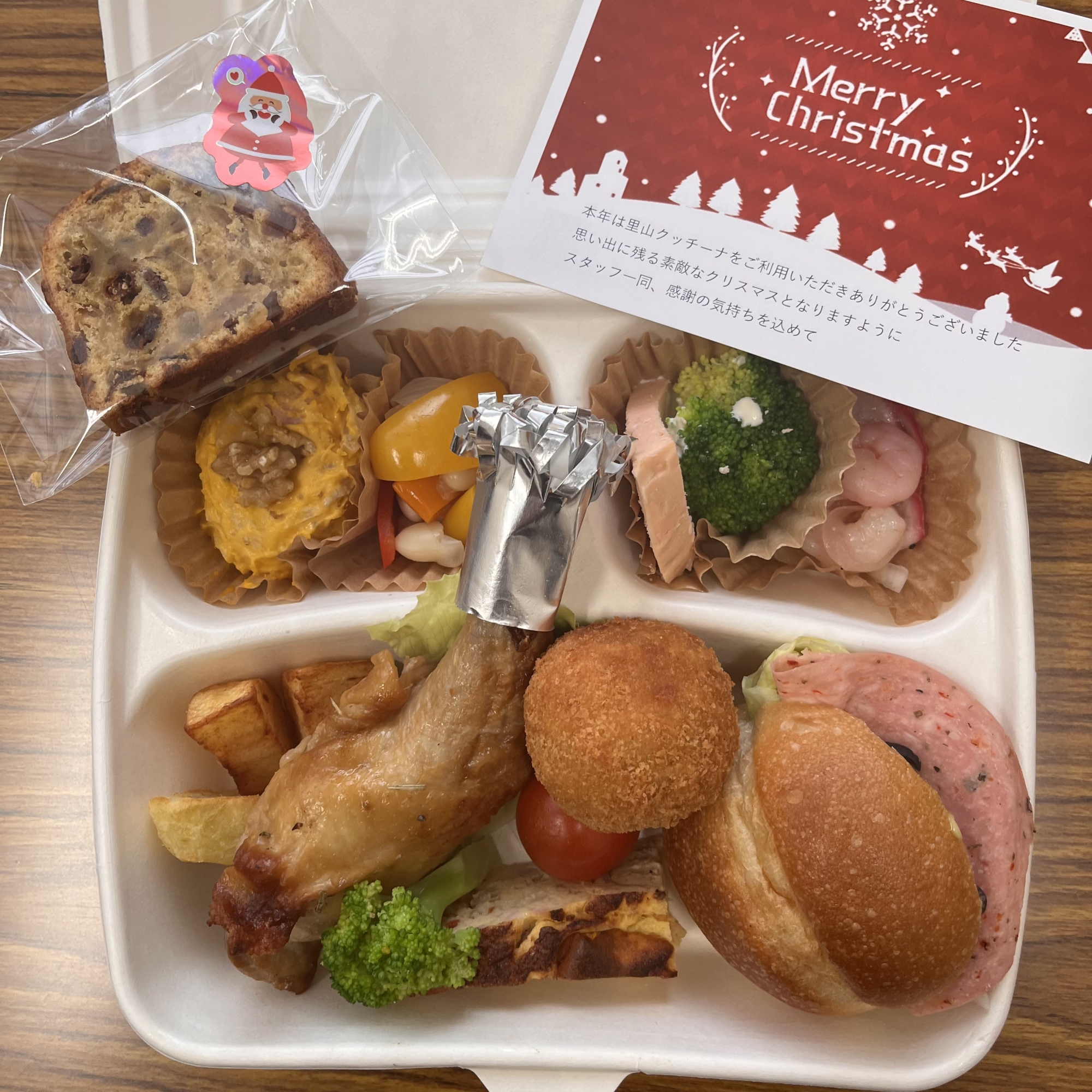 今日は、月いちレストランの里山クッチーナ:なんと、クリスマスデリボックスです。