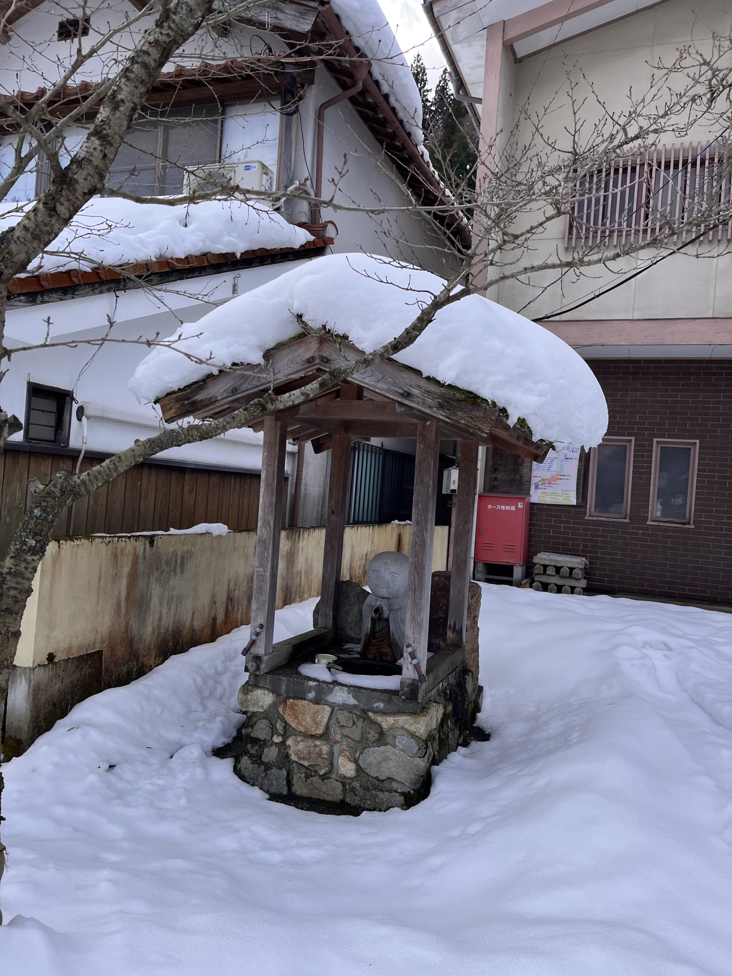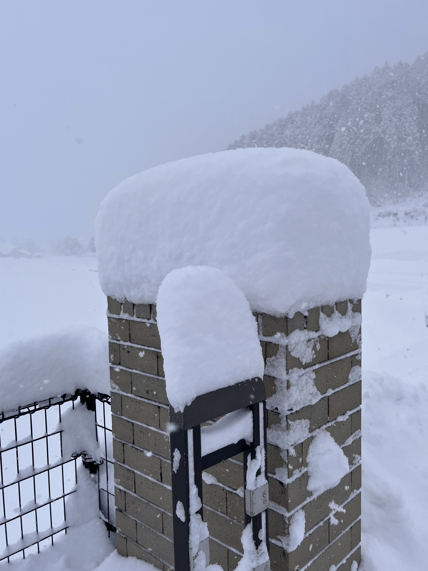 そして、門柱の雪は、なぜか傾く方向が反対。