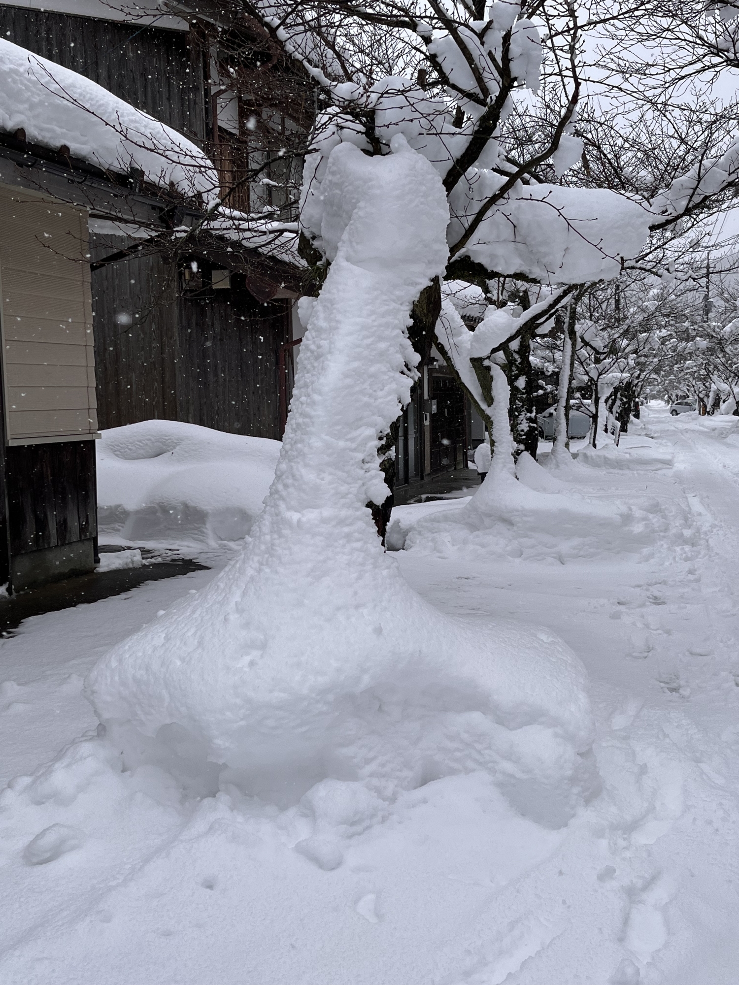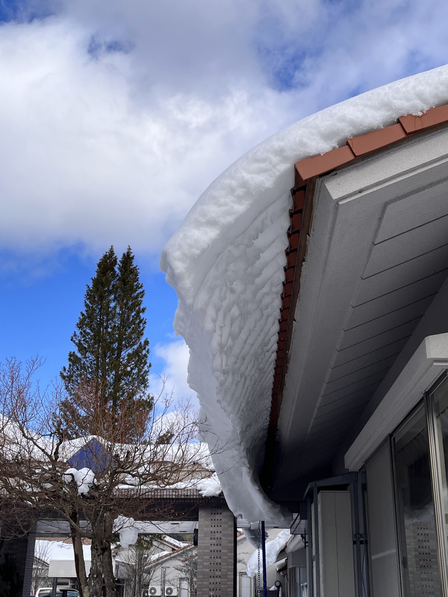 さて・・あちこちで・・・屋根から雪が落ちていきます。