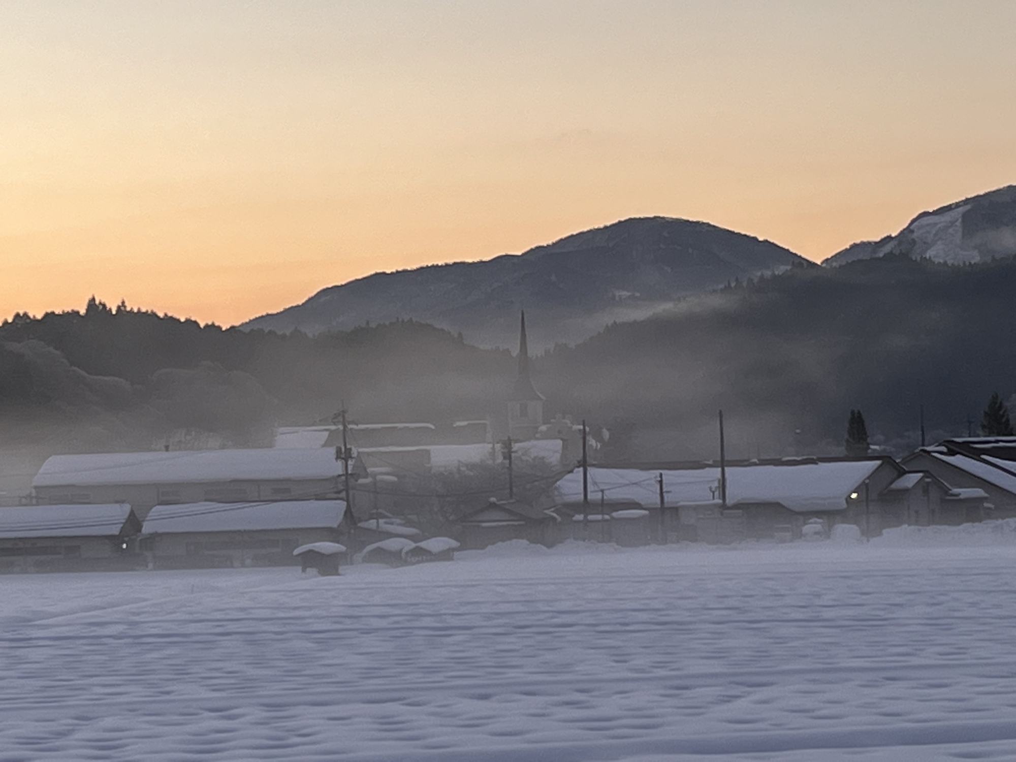 通勤前・・ちょっと晴れ間かって思ったら、少し雪も舞いました。