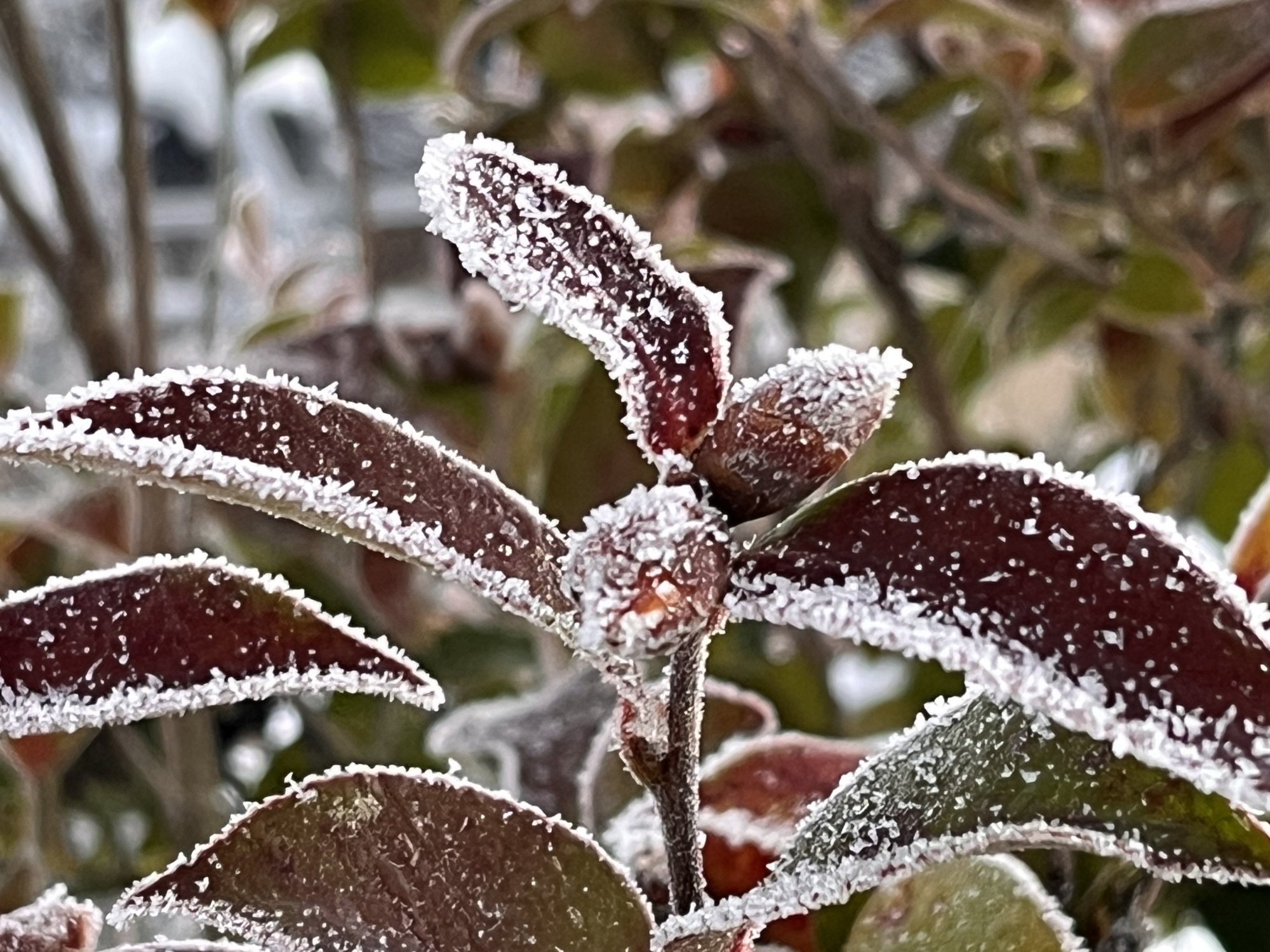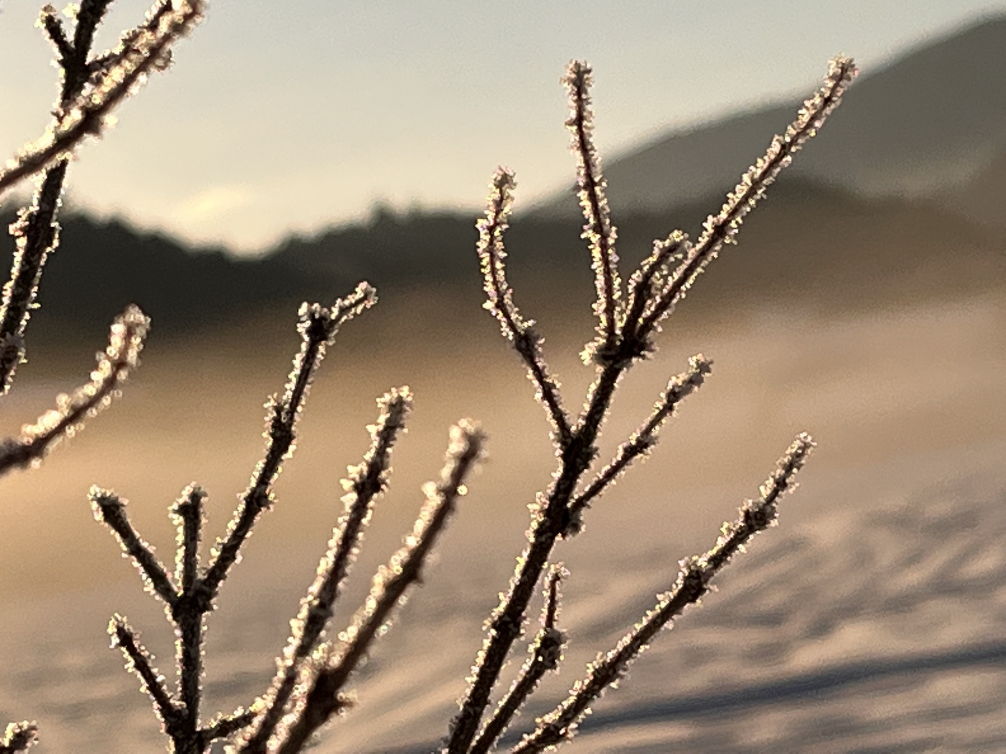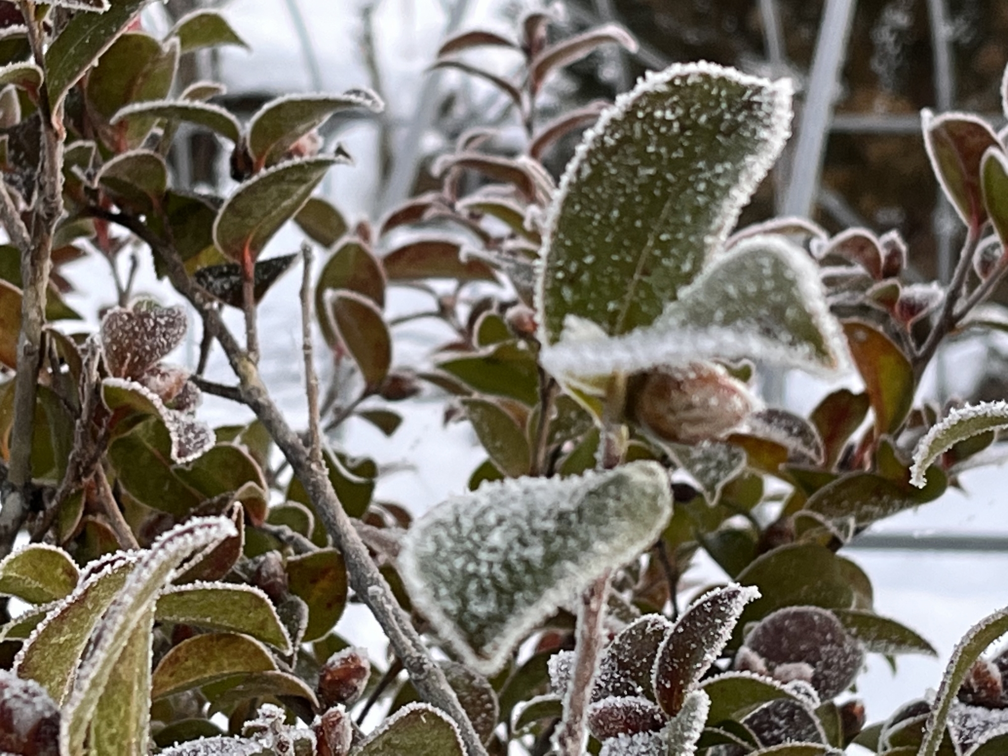 この小さな花の枝のも氷柱かな・・・可愛い。