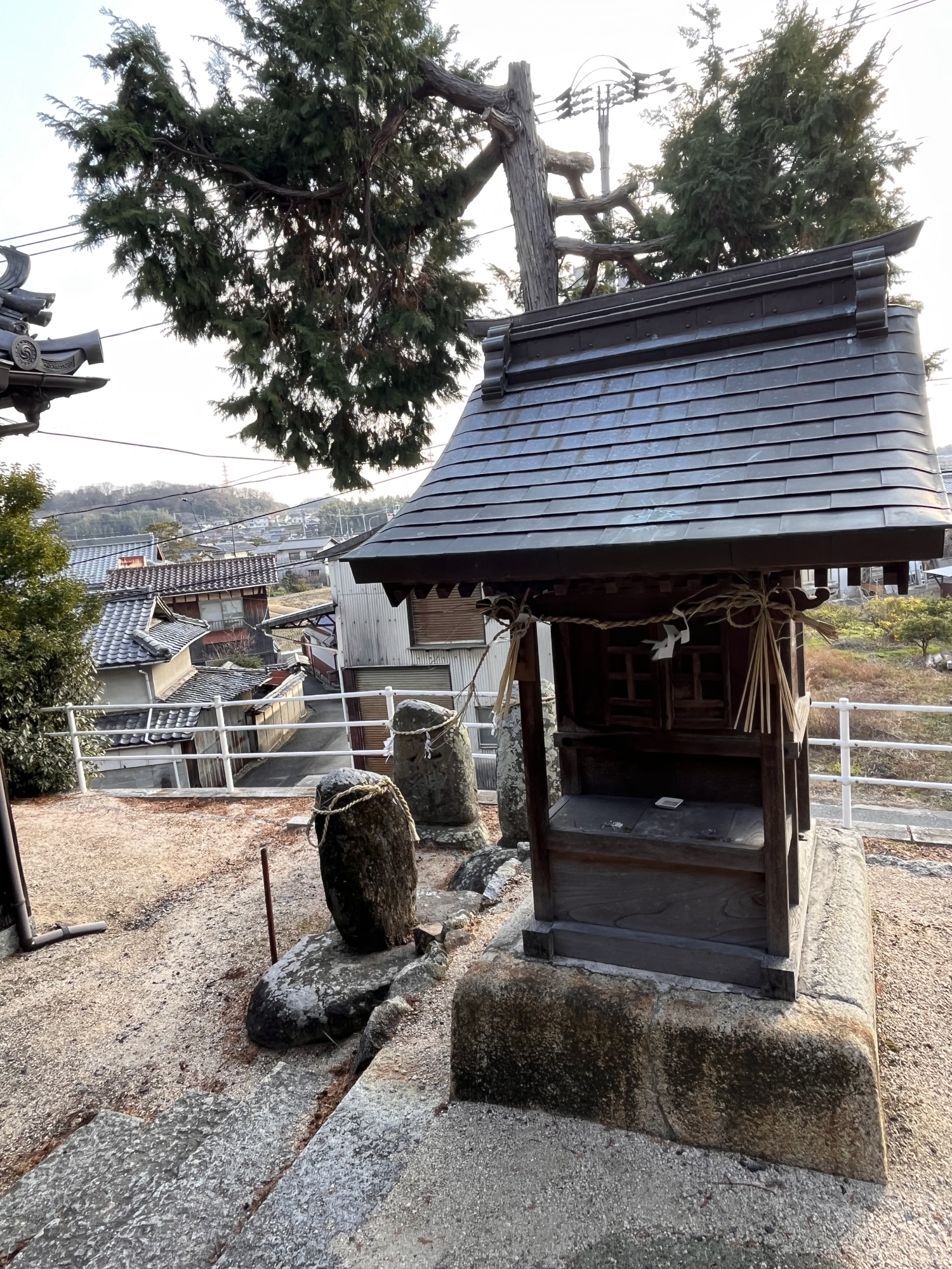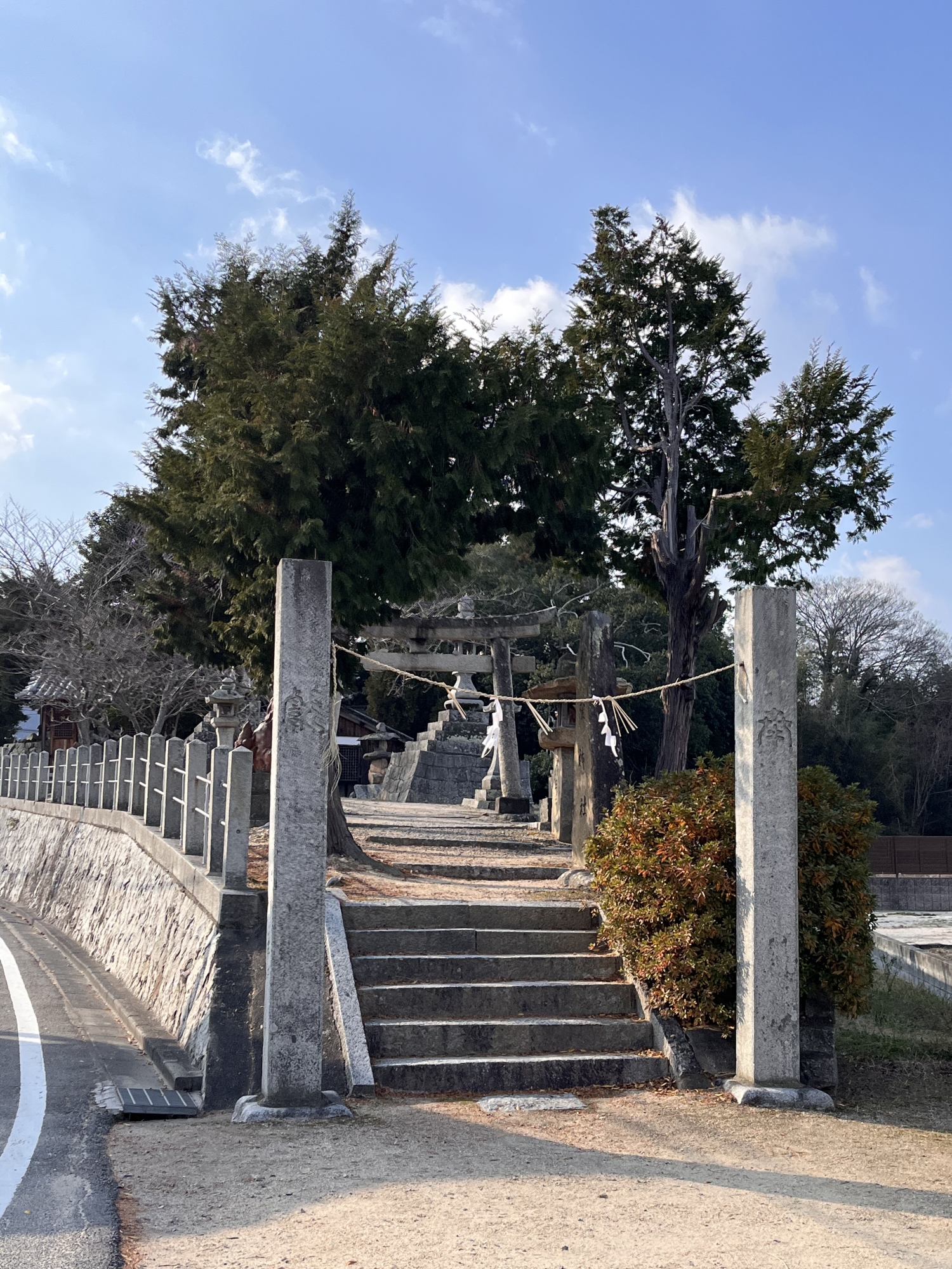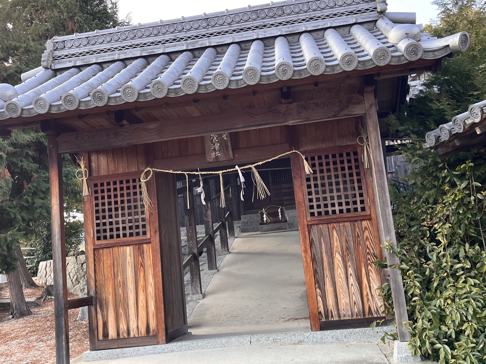 【社殿は元禄14年(1701)4月、天保13年3月に造営し現在に至った。大正6年4月、庄村矢部字向山村社楯築神社を合祀した。大正6年10月4日神饌幣帛供進神社に指定された。】