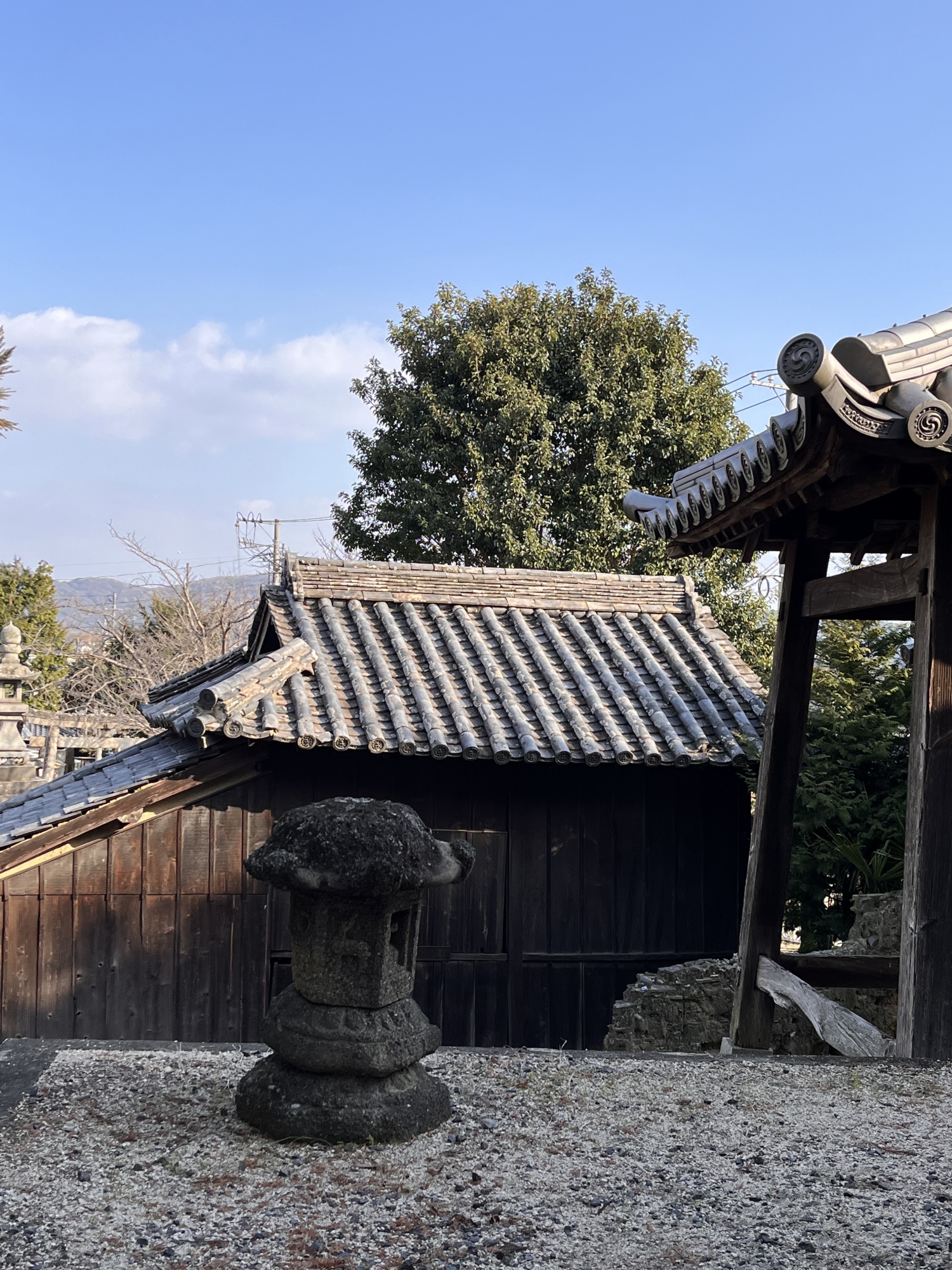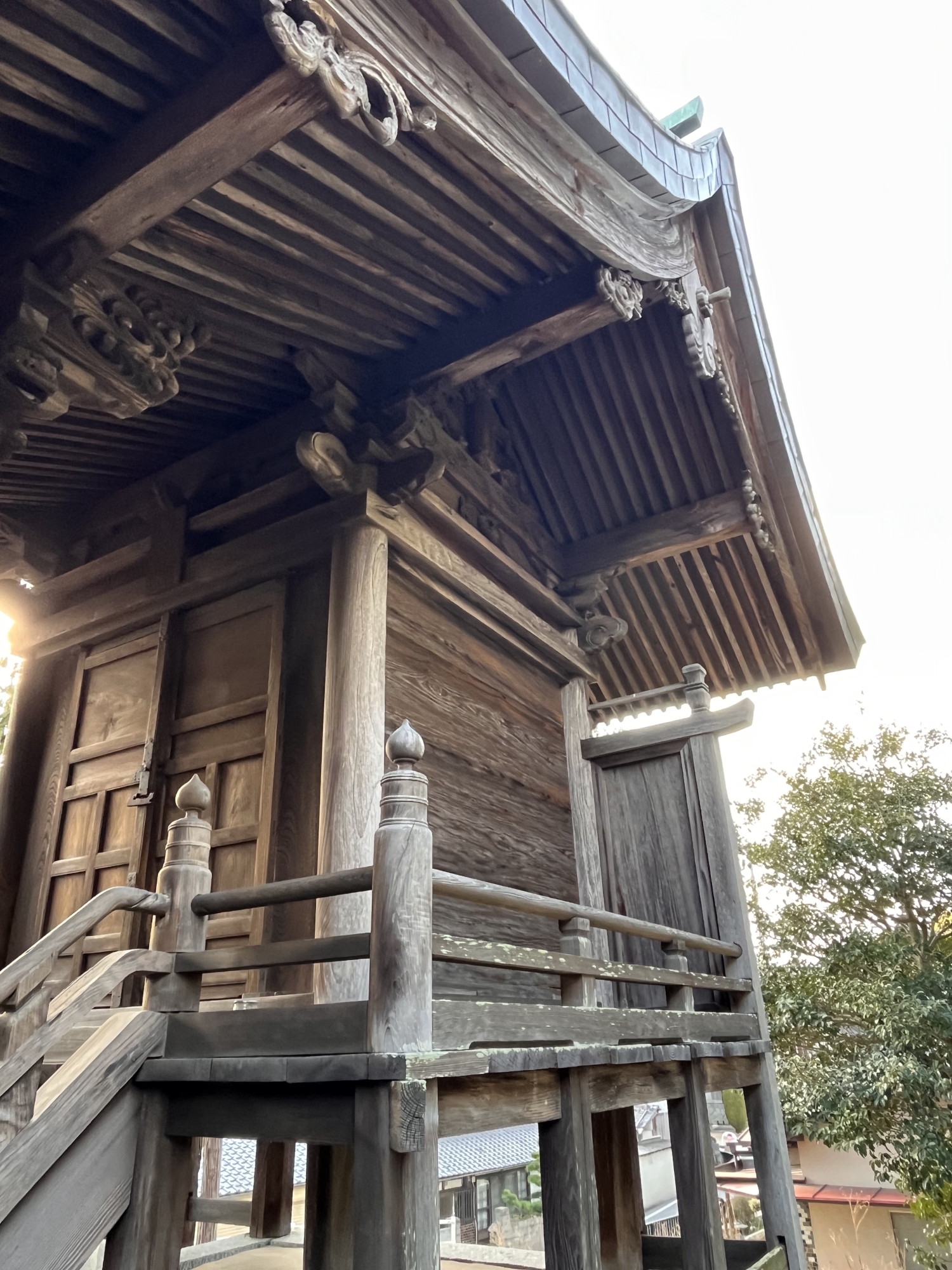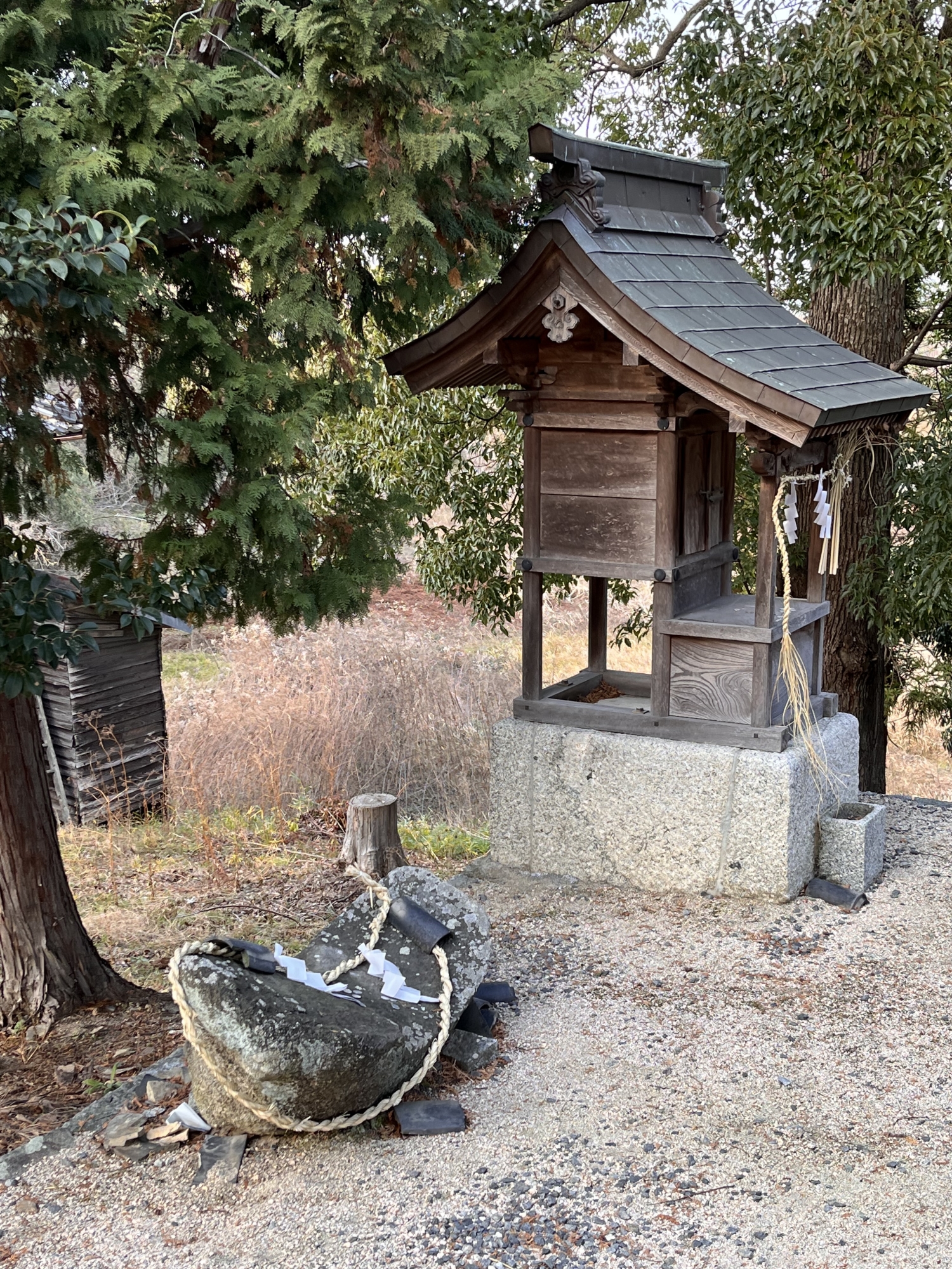 【社殿は元禄14年(1701)4月、天保13年3月に造営し現在に至った。大正6年4月、庄村矢部字向山村社楯築神社を合祀した。大正6年10月4日神饌幣帛供進神社に指定された。】