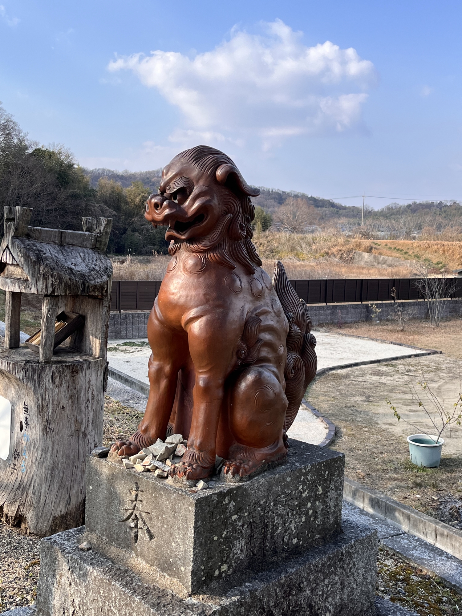 【すぐ命は鵜となり、鯉に姿を変えた温羅をこの場所で捕食した。それを祭るため村人達はここに鯉喰神社を建立した。】