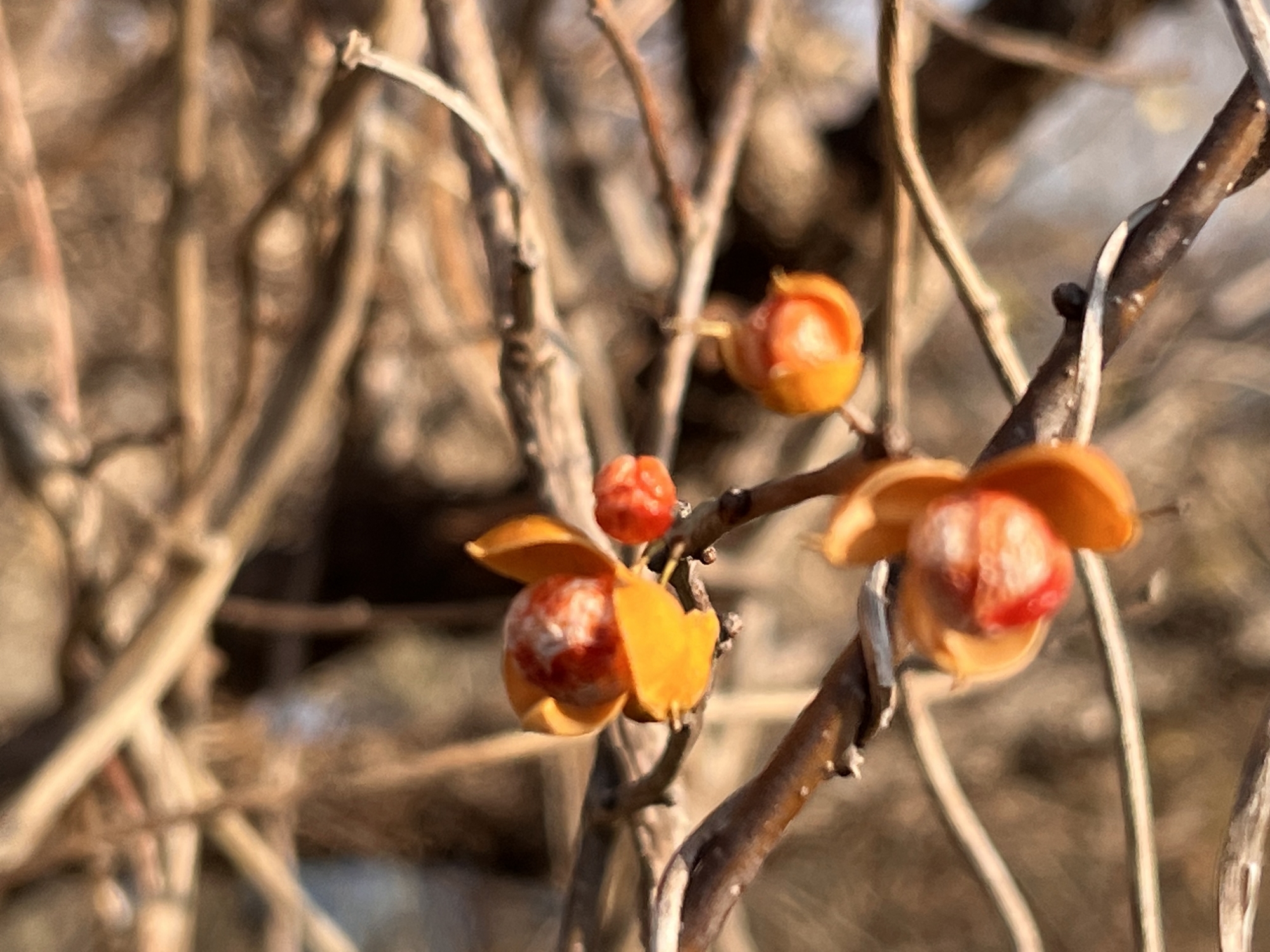これは・・これって蝋梅? 枯れ偽果って言うのかしら?