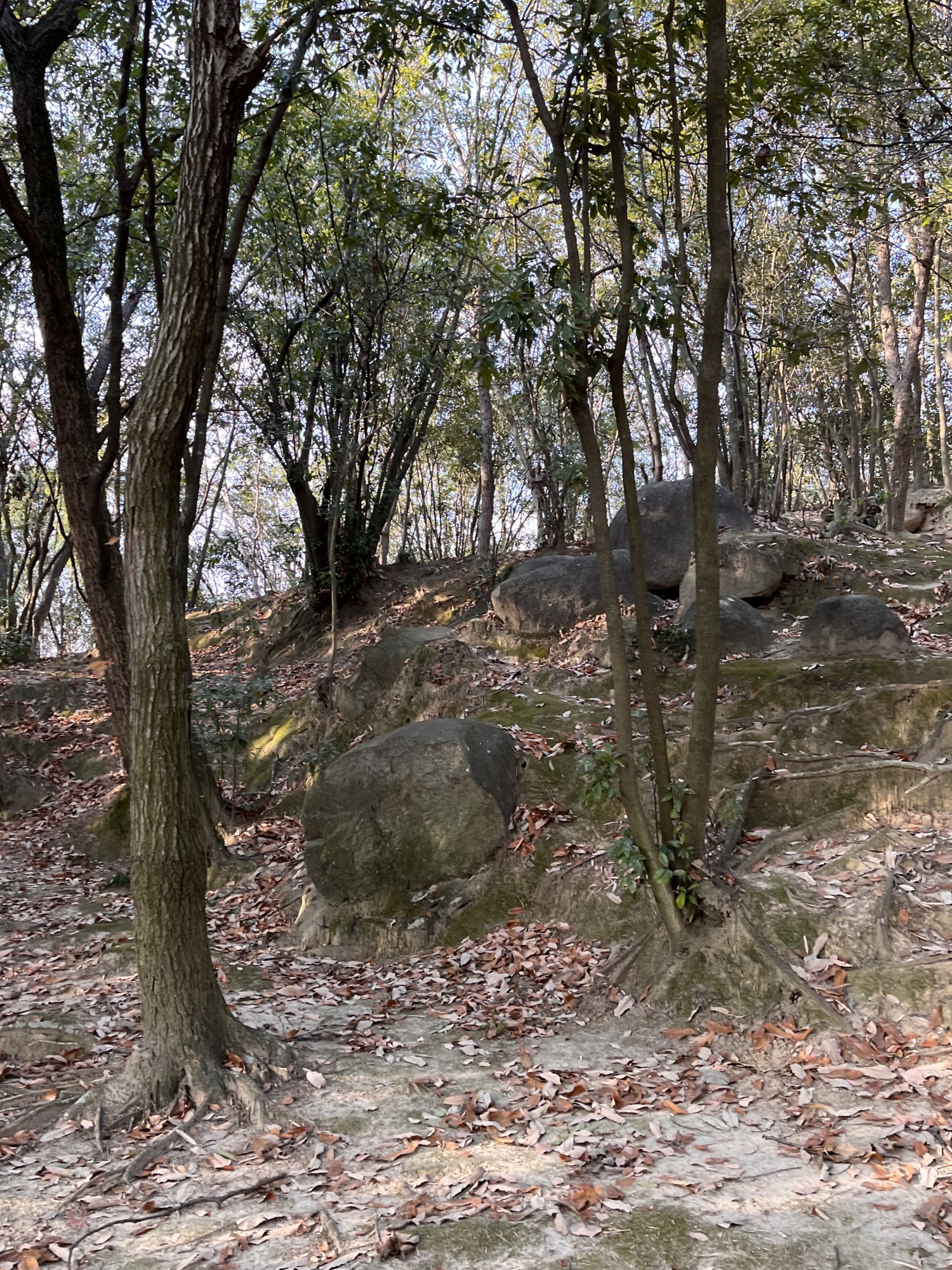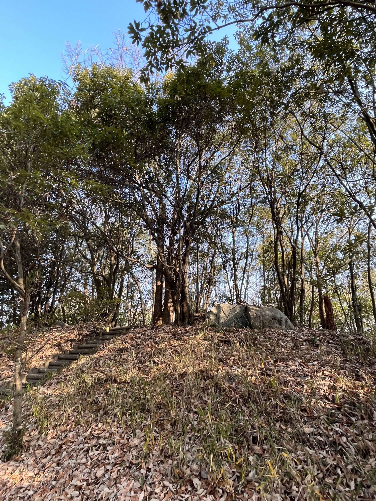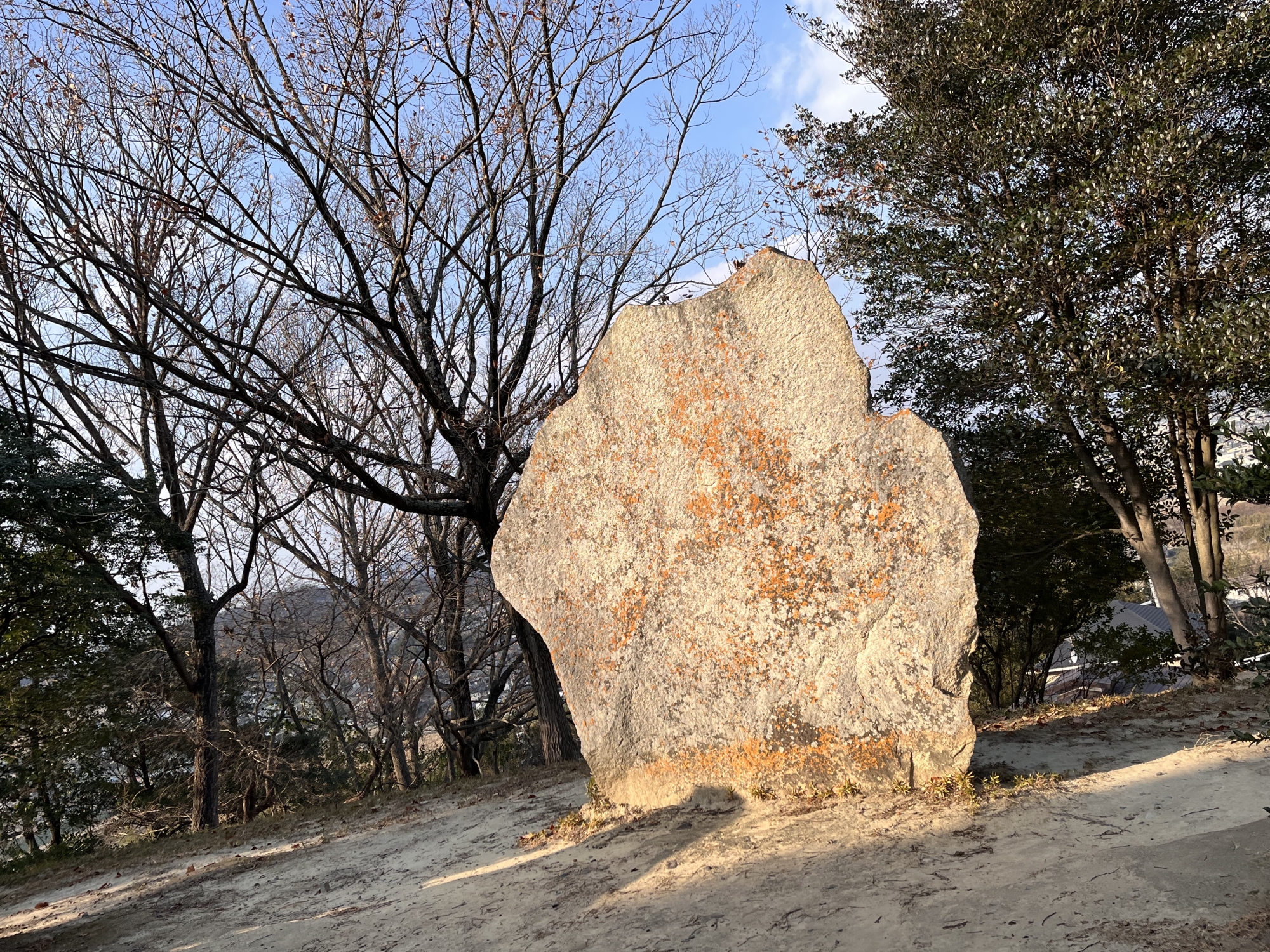 【自然地形を利用し盛り土を行って整えられて墳丘の規模は、現在知られている弥生時代の墳丘墓としては最大級です。円丘部は径約50m、高さ5m。墳丘頂部には5個の巨石が立っており、墳丘斜面には円礫帯がめぐっています。】