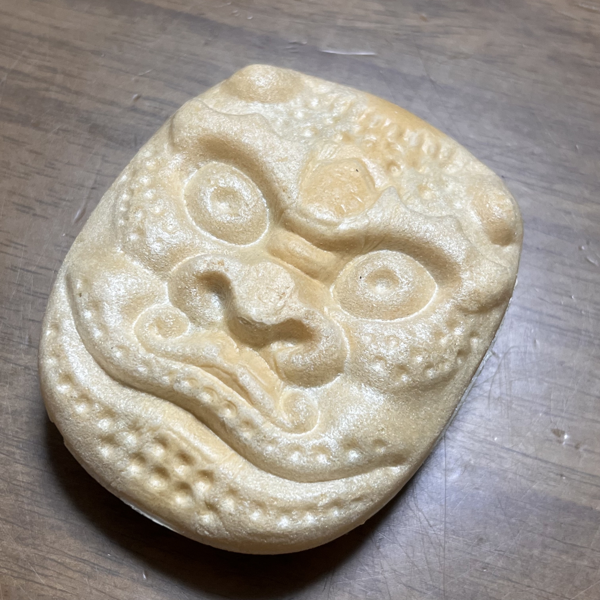 倉敷への寄り道で高梁に寄ったお土産の備中神楽面最中。最中は美味しい。面相は少し怖い。