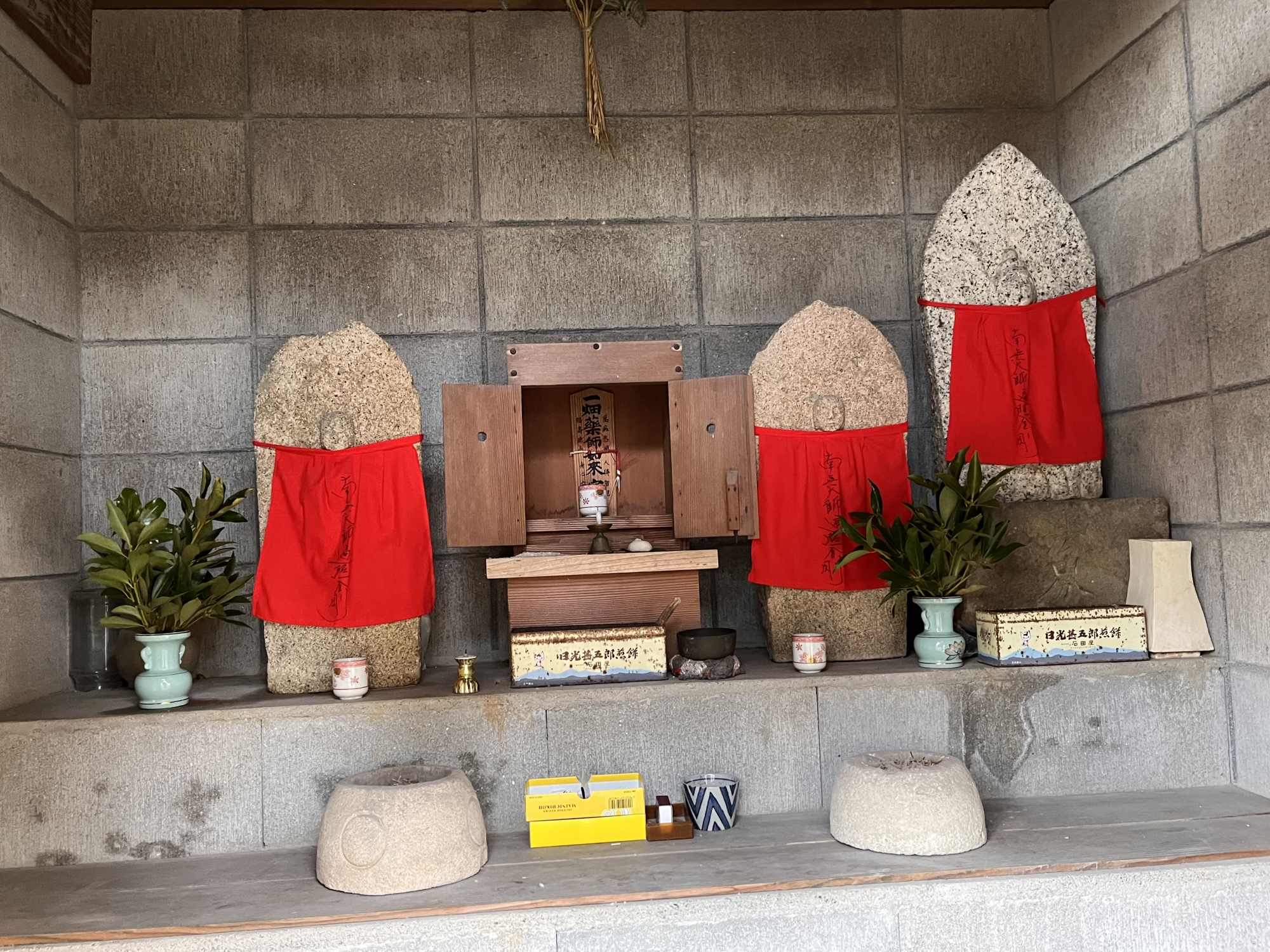 その鳥居の傍には・・・これは「井尻野八十八箇所」と記されているいくつかのお地蔵様や仏像や・・ですね。