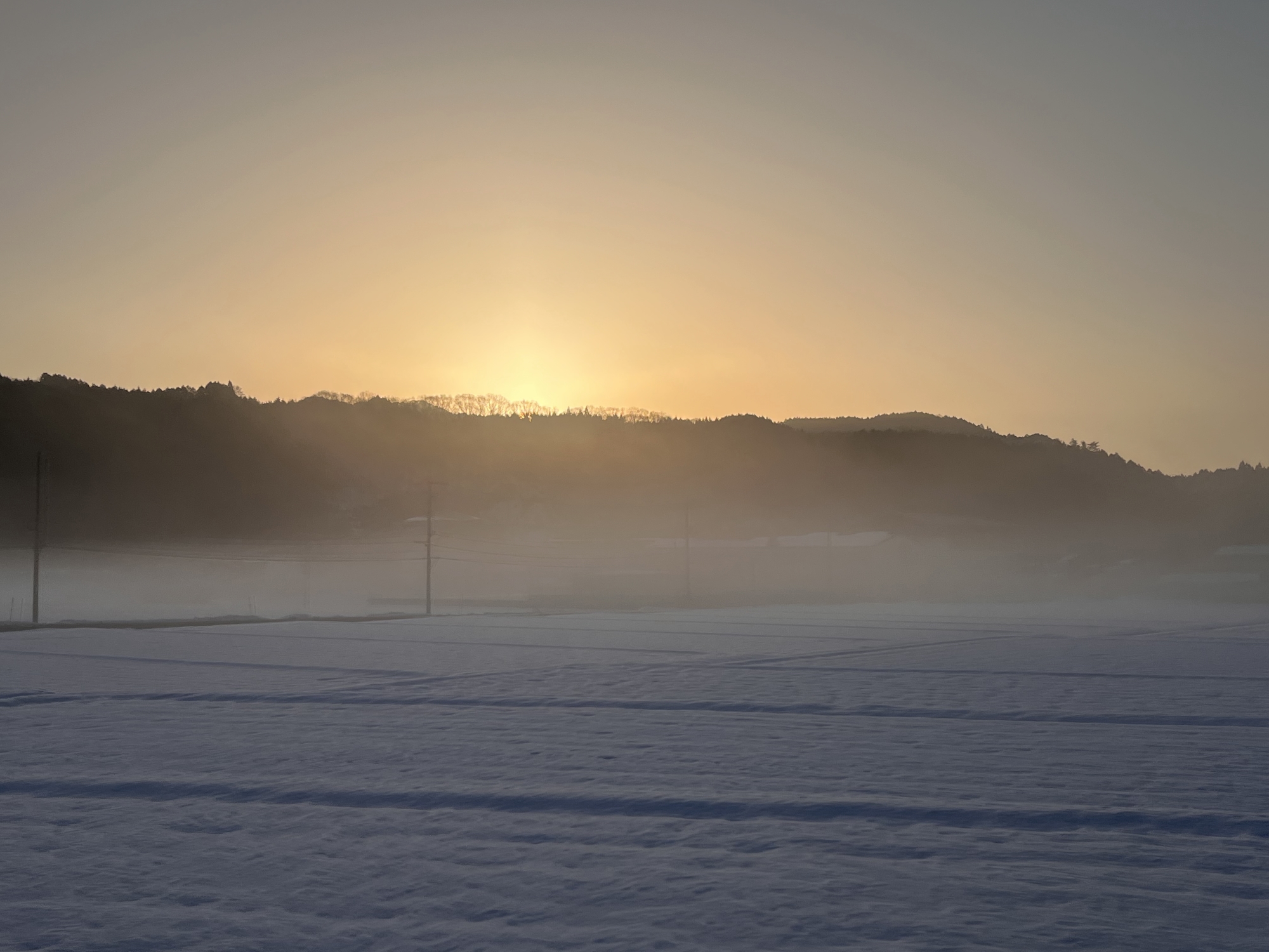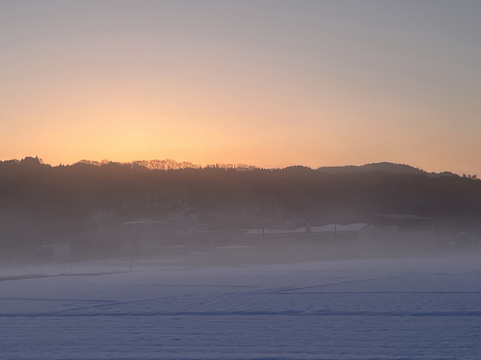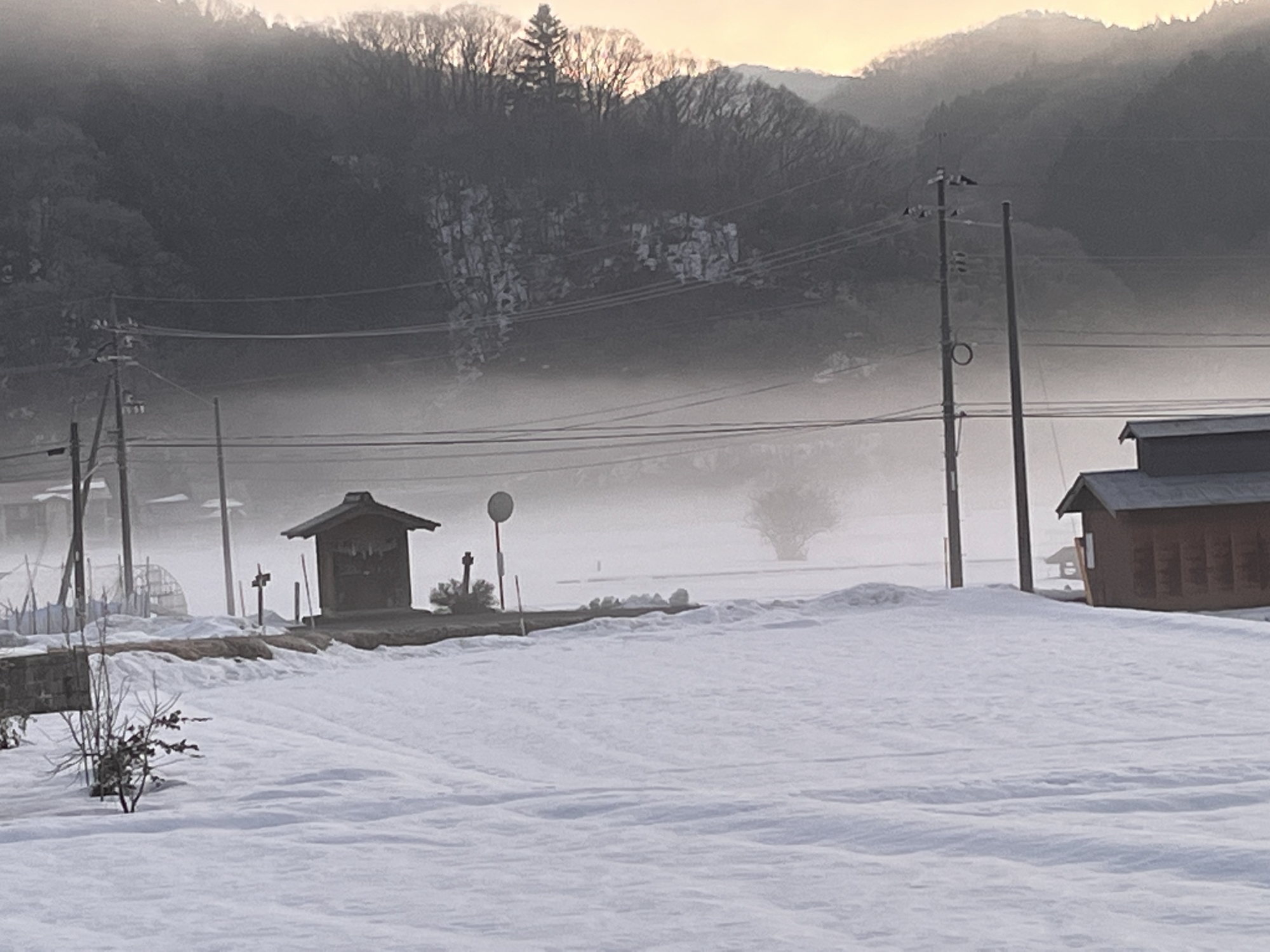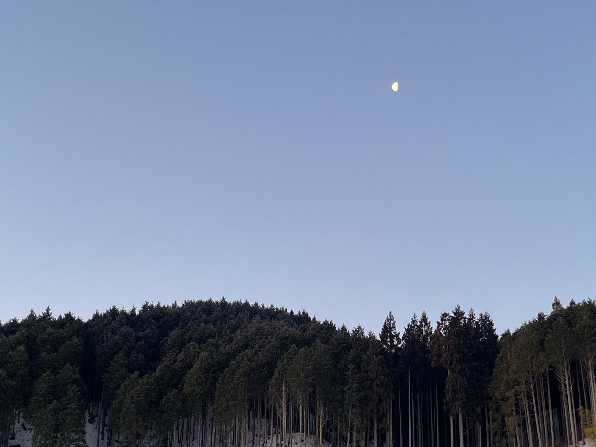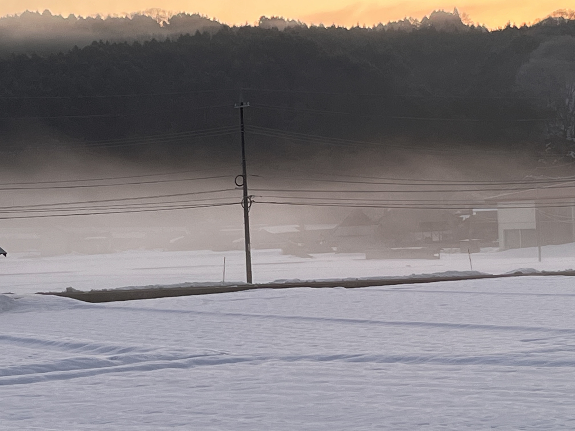朝の月と・・・霧かな・・・濃霧ですかしら。