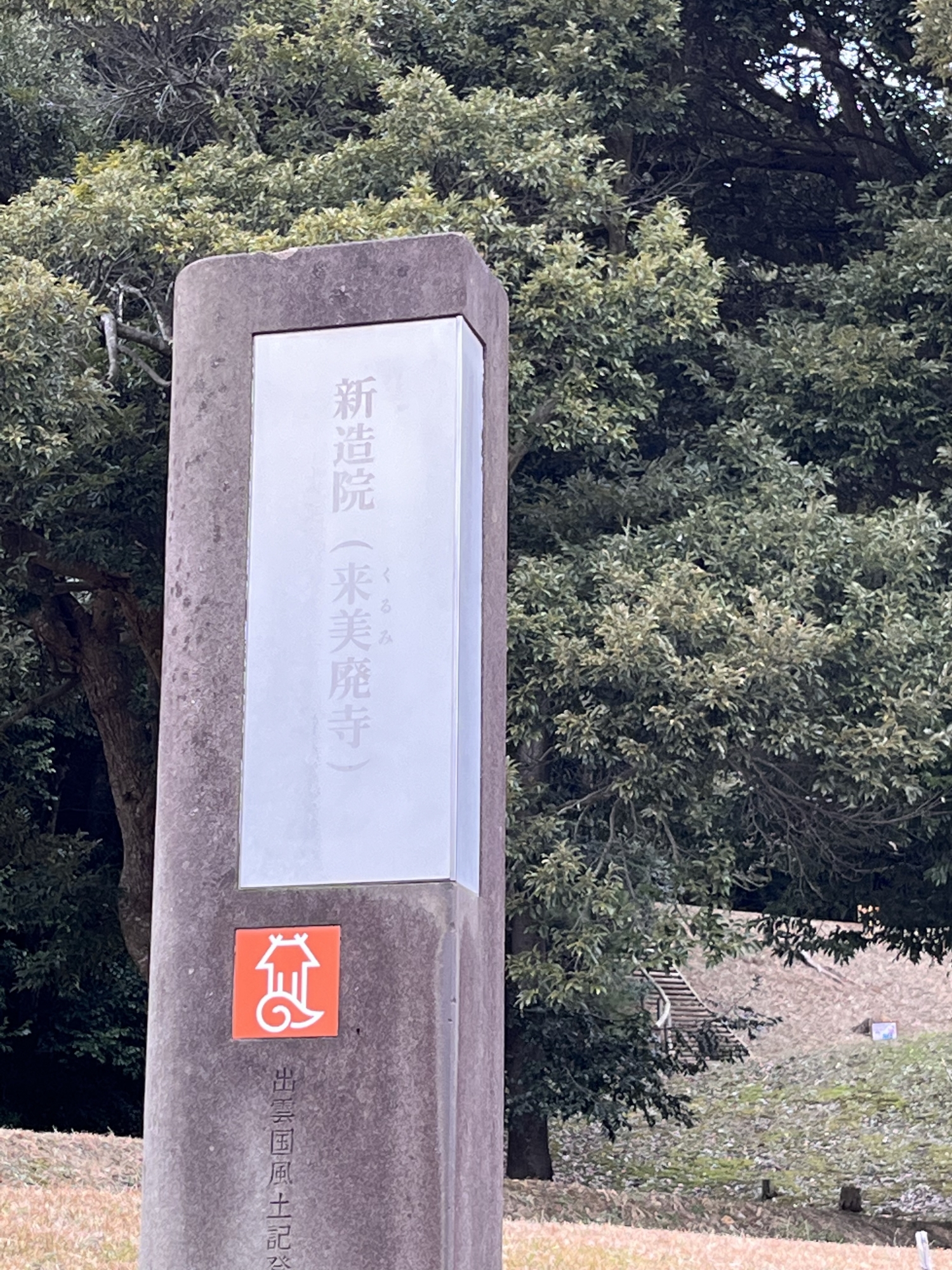 【なお、『出雲国風土記』には同じく現地の豪族である出雲臣弟山が建立した「新造院」も存在しているため、そちらの跡地と推定される四王寺跡を「南新造院」(正倉跡の東側にある。現在、島根県指定史跡)と称し、こちらを「北新造院」と称した。】