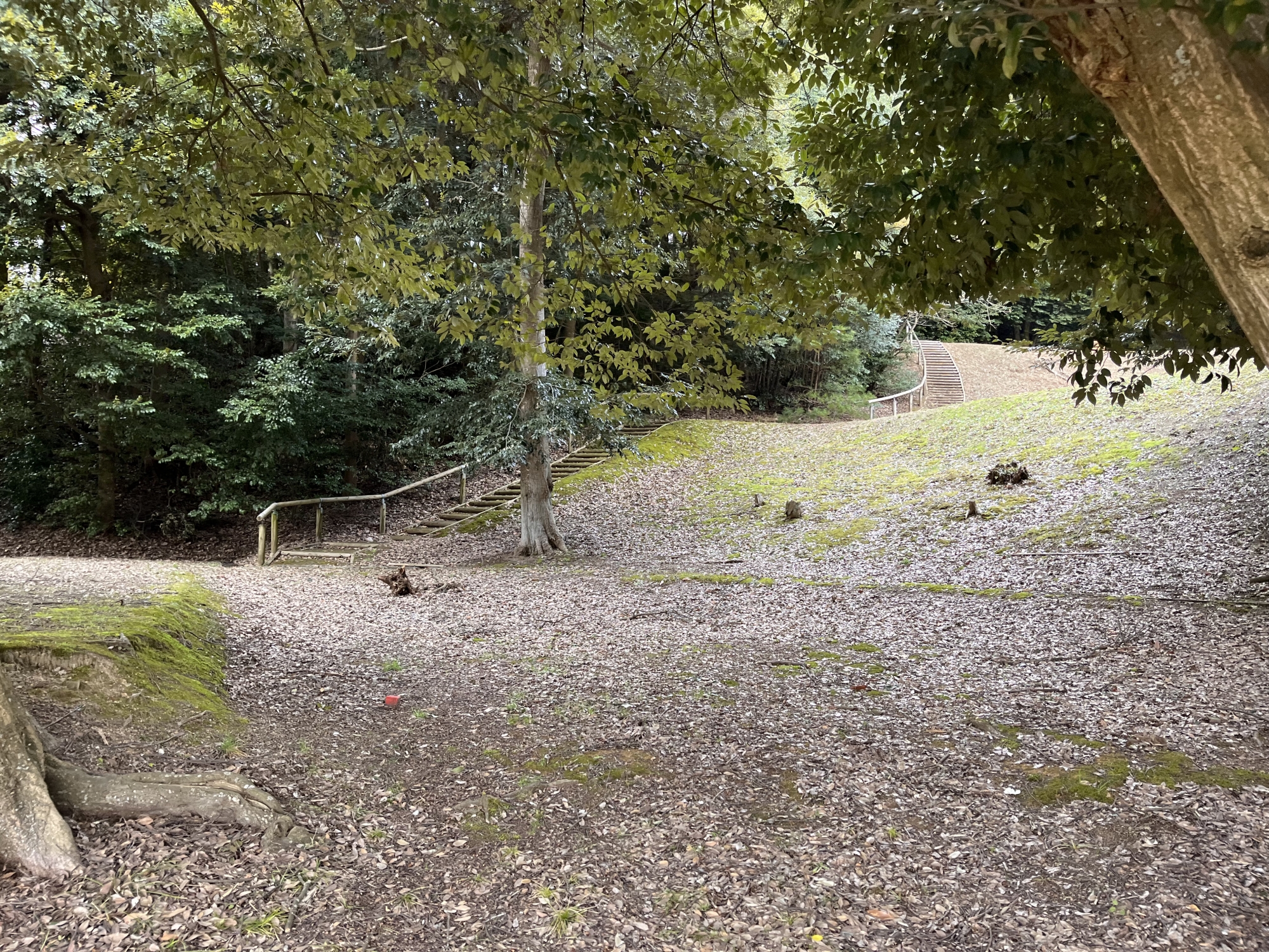 【丘陵の中腹に立地しており、非常に残存状態がよい遺跡です。】