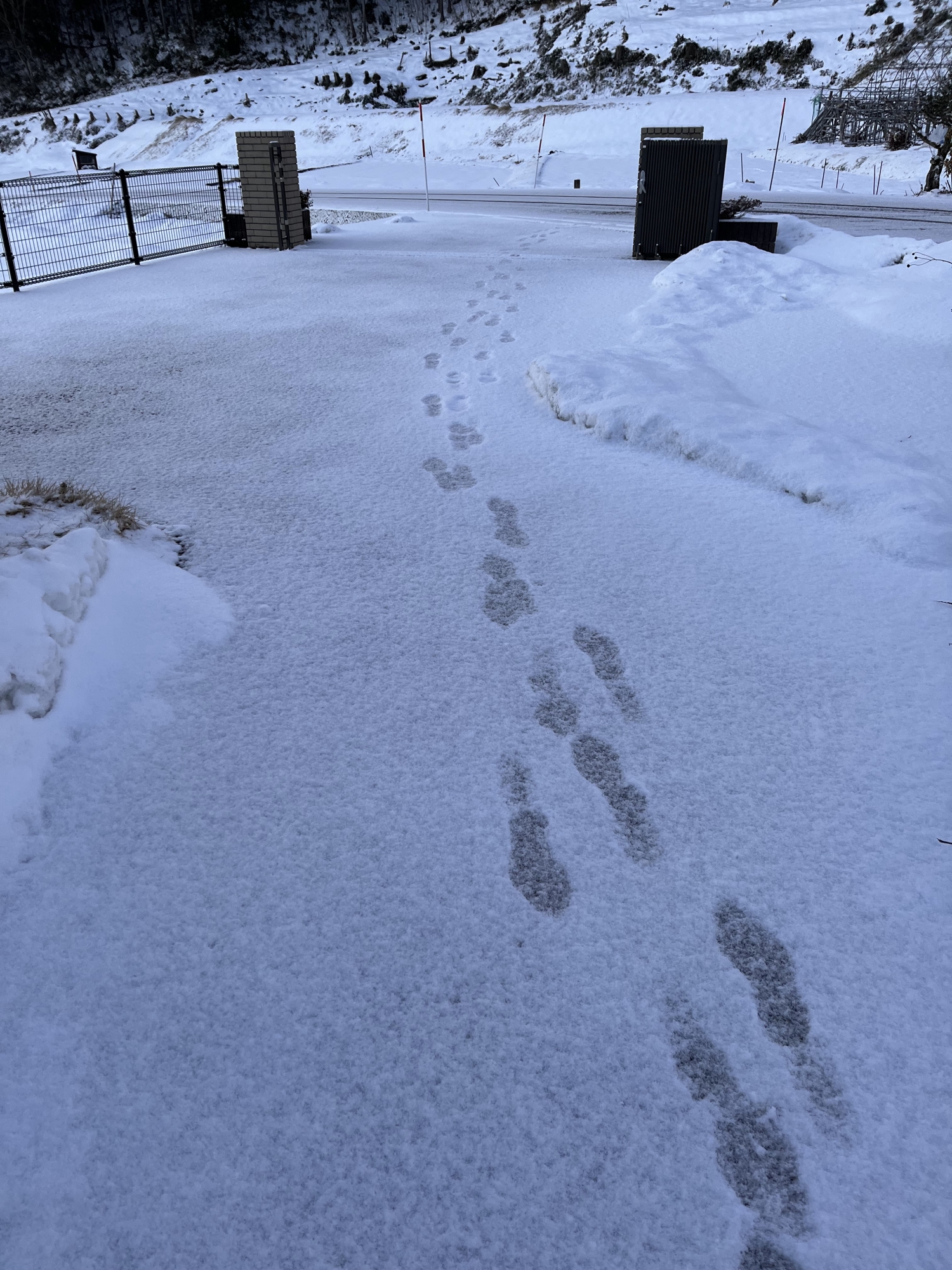 夜に雪は降って・・粒の雪で、道路などもうっすらと白い世界が拡がっていました。