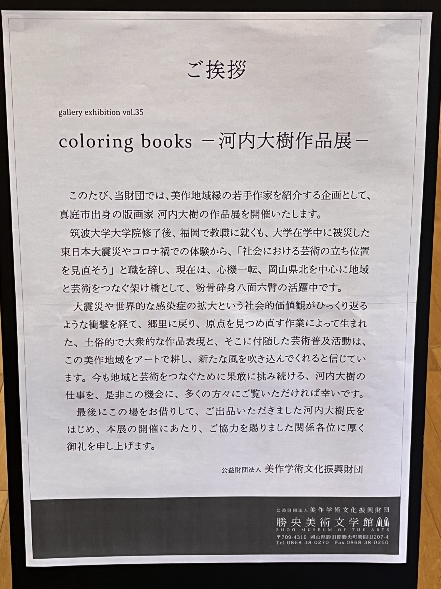 真庭市のご出身の河内大樹さんの作品展。このflyerで、気になっていたのです。