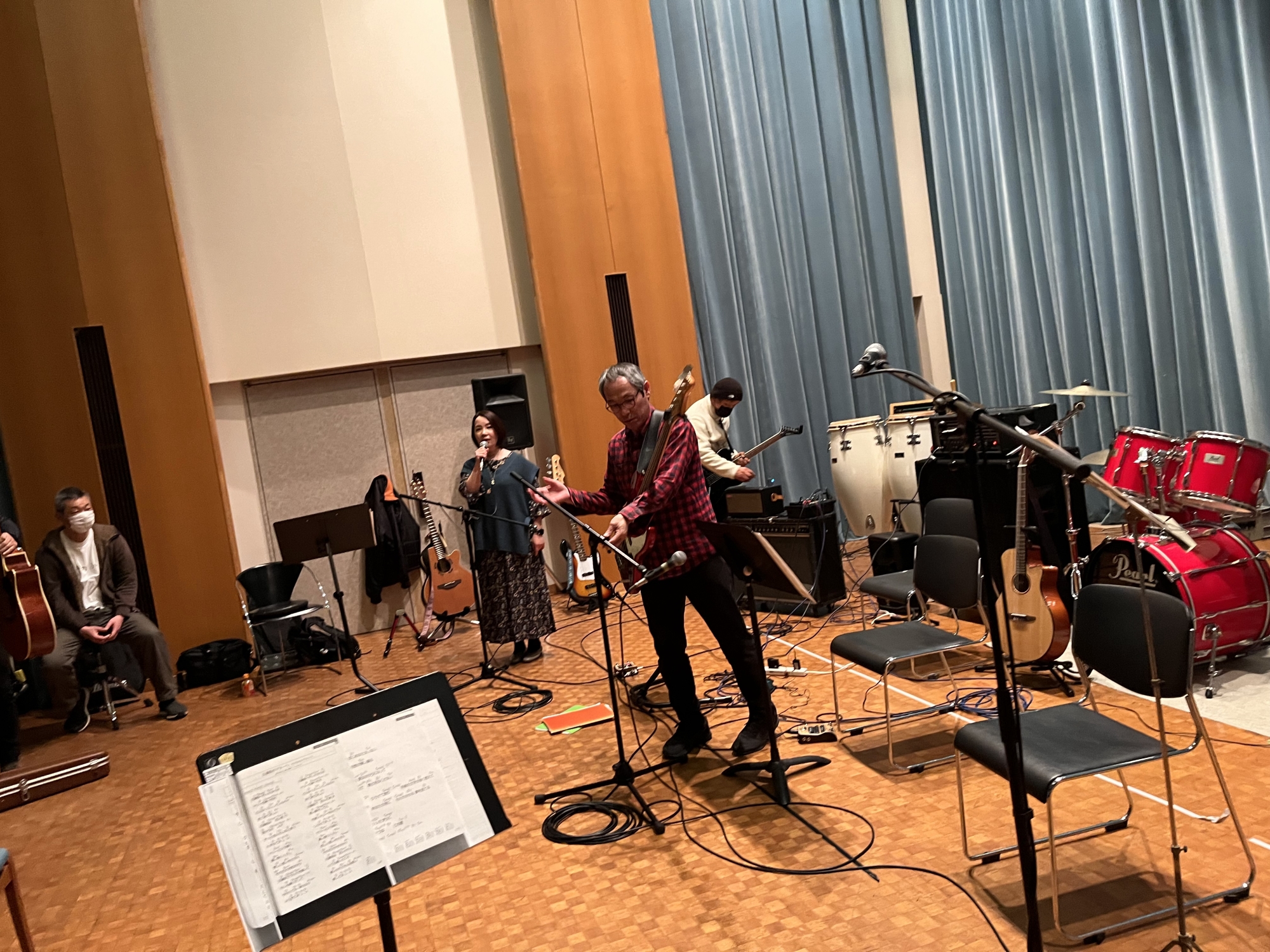 年末に、エスパスホワイエでのライブに参加させて頂いて、今回もお声掛け頂きました。今回は、皆さん、懐かしい曲群を、バンドメンバーが、コード譜を受け取って、初めて合わせてみるやり方。