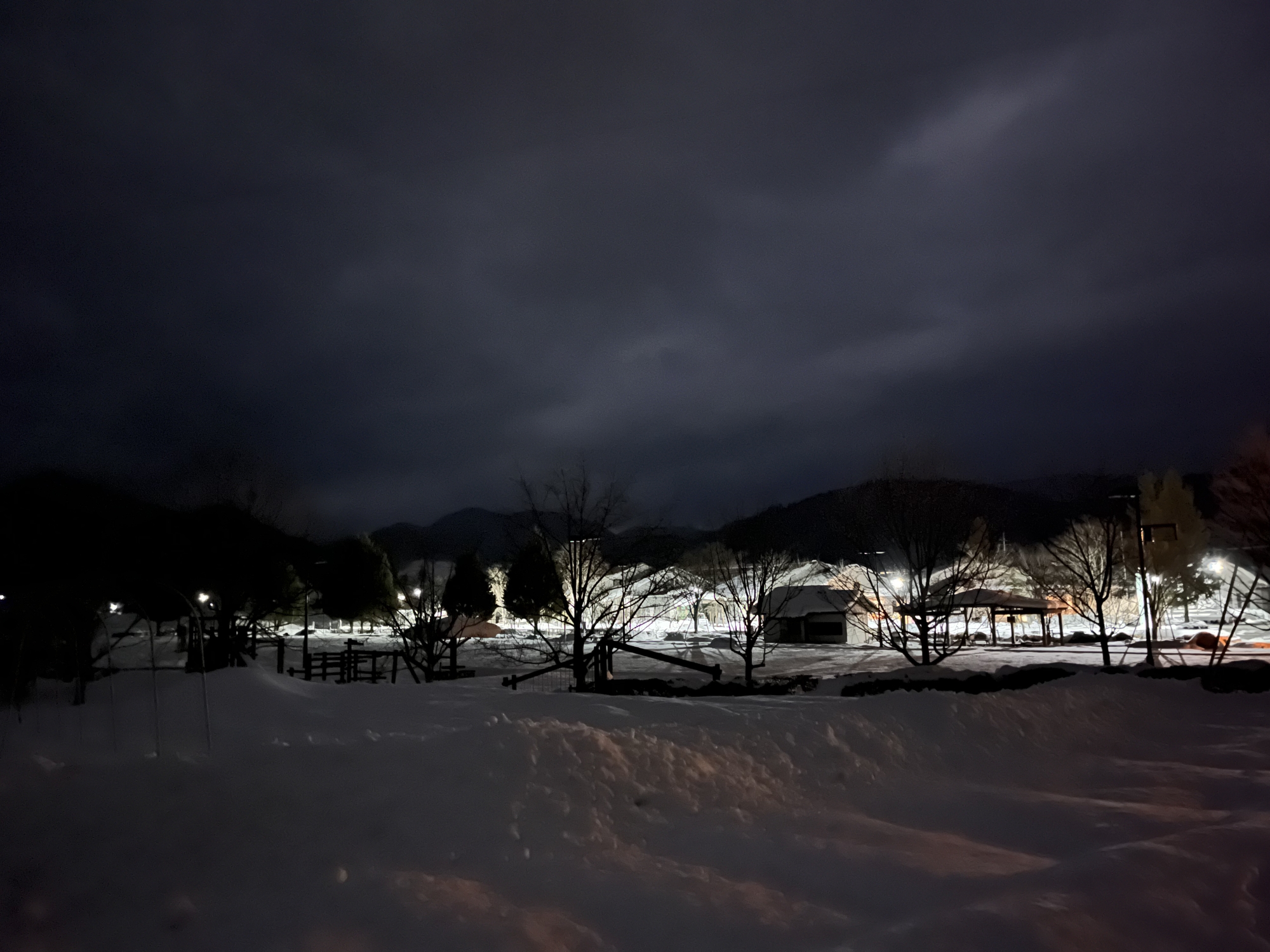 雪に雨が掛かってきた様子slushy って言うそうです(夜の英会話倶楽部で教わりました)。こんな雨。