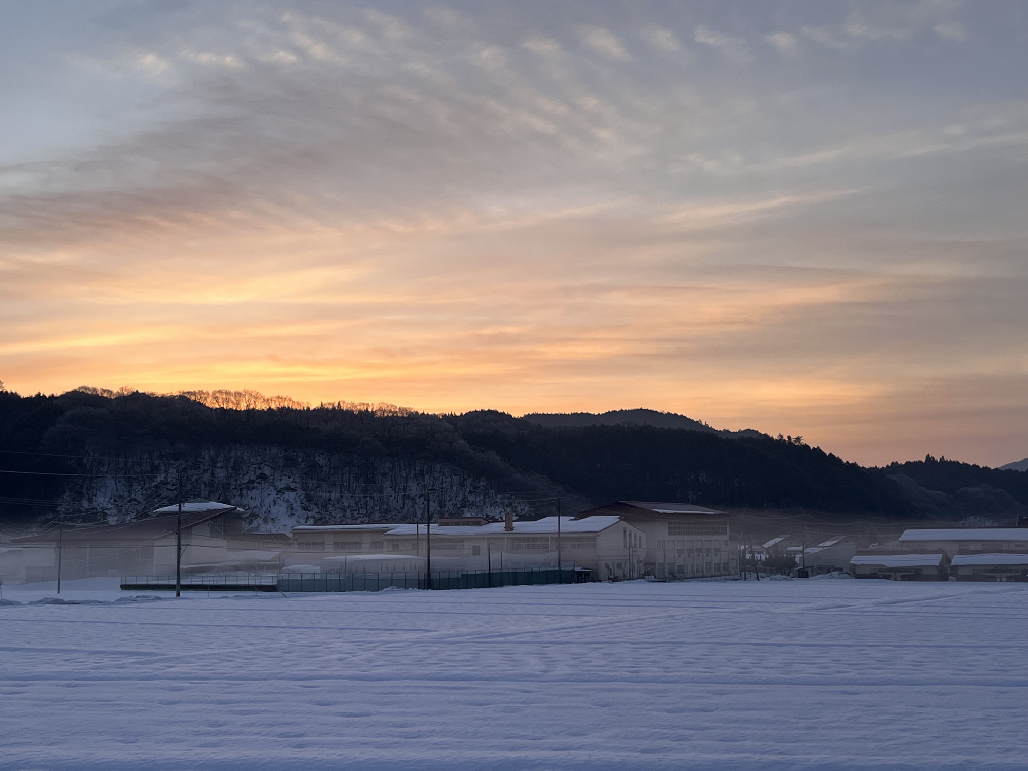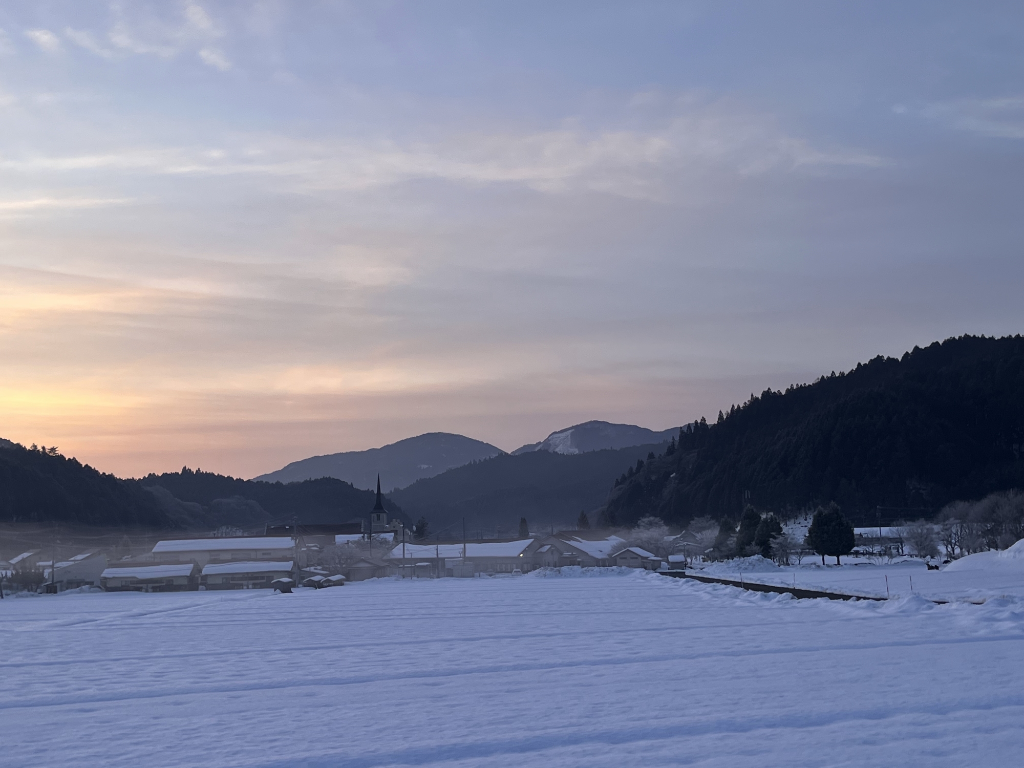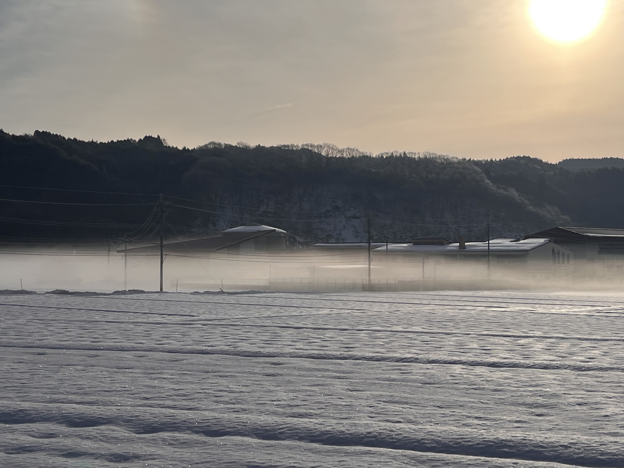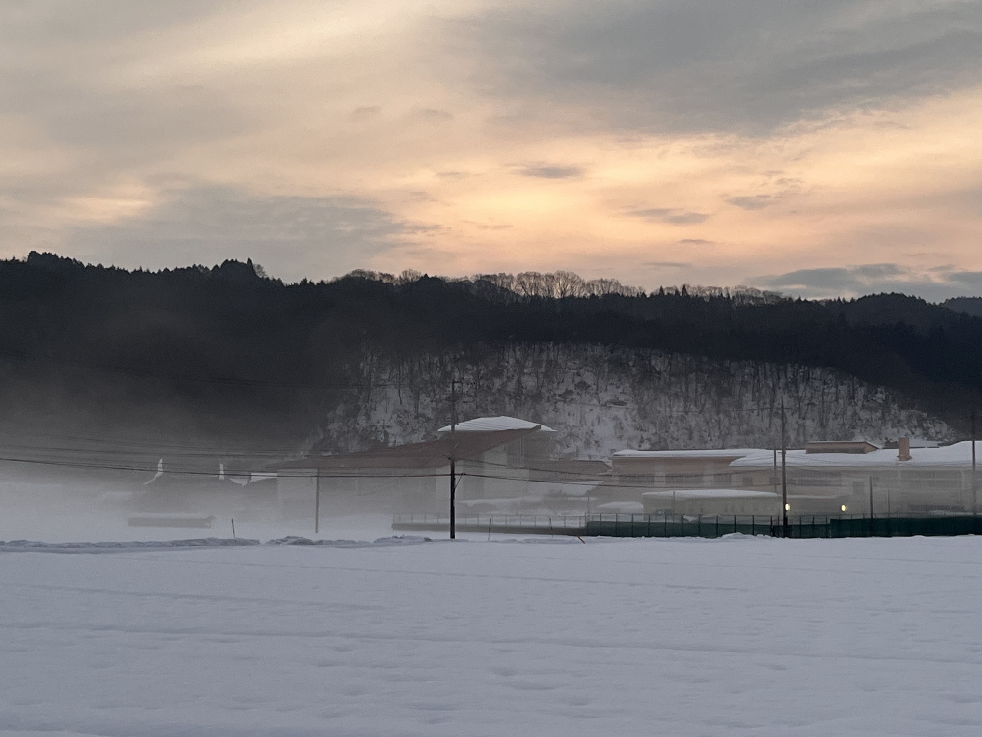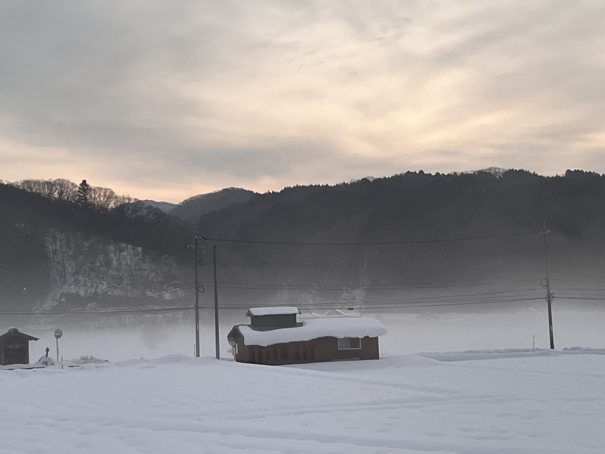 うっすらと朝靄。