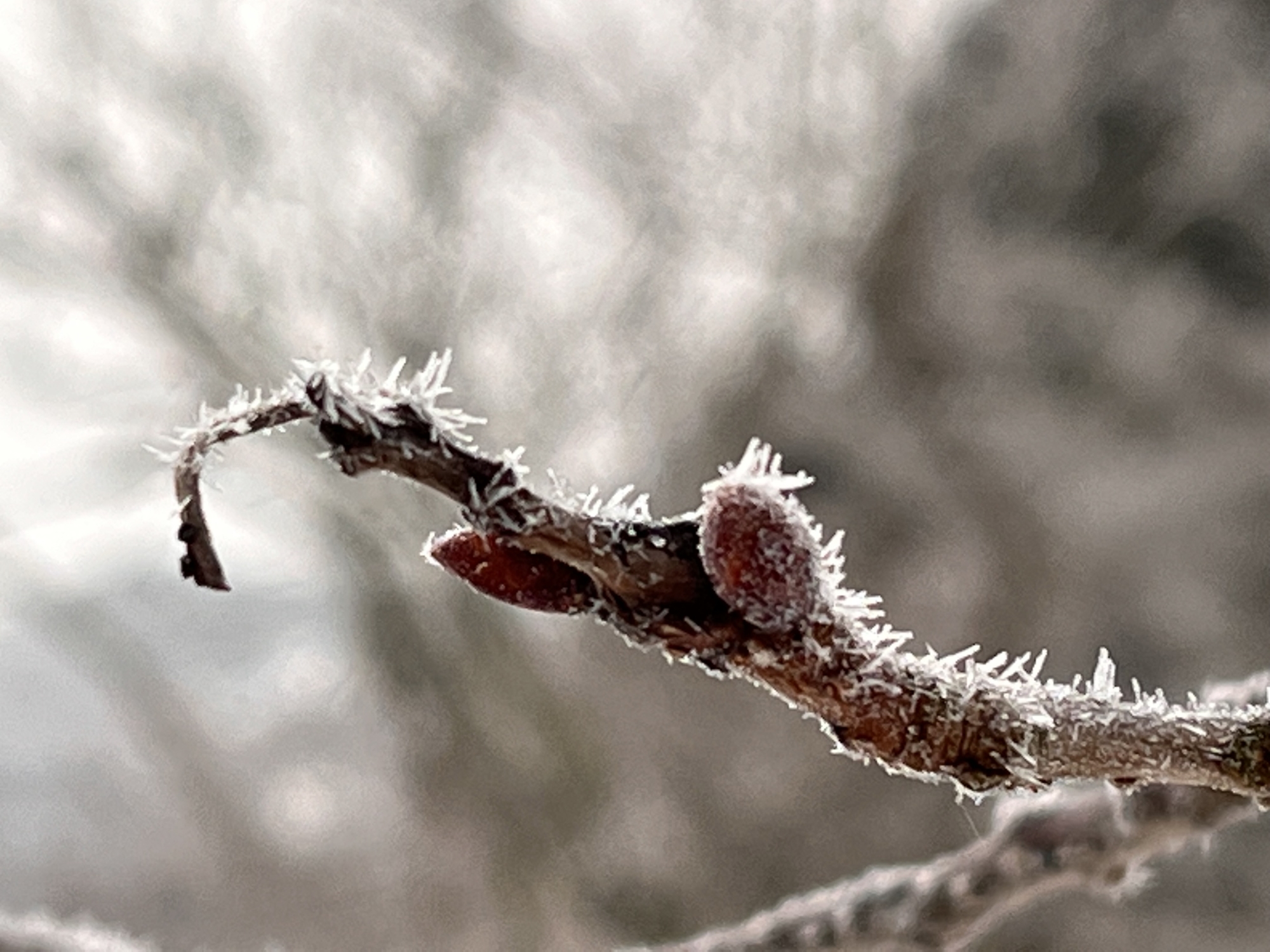 草などは雪の下なので・・枝とかの霜しか目に入りませんね。