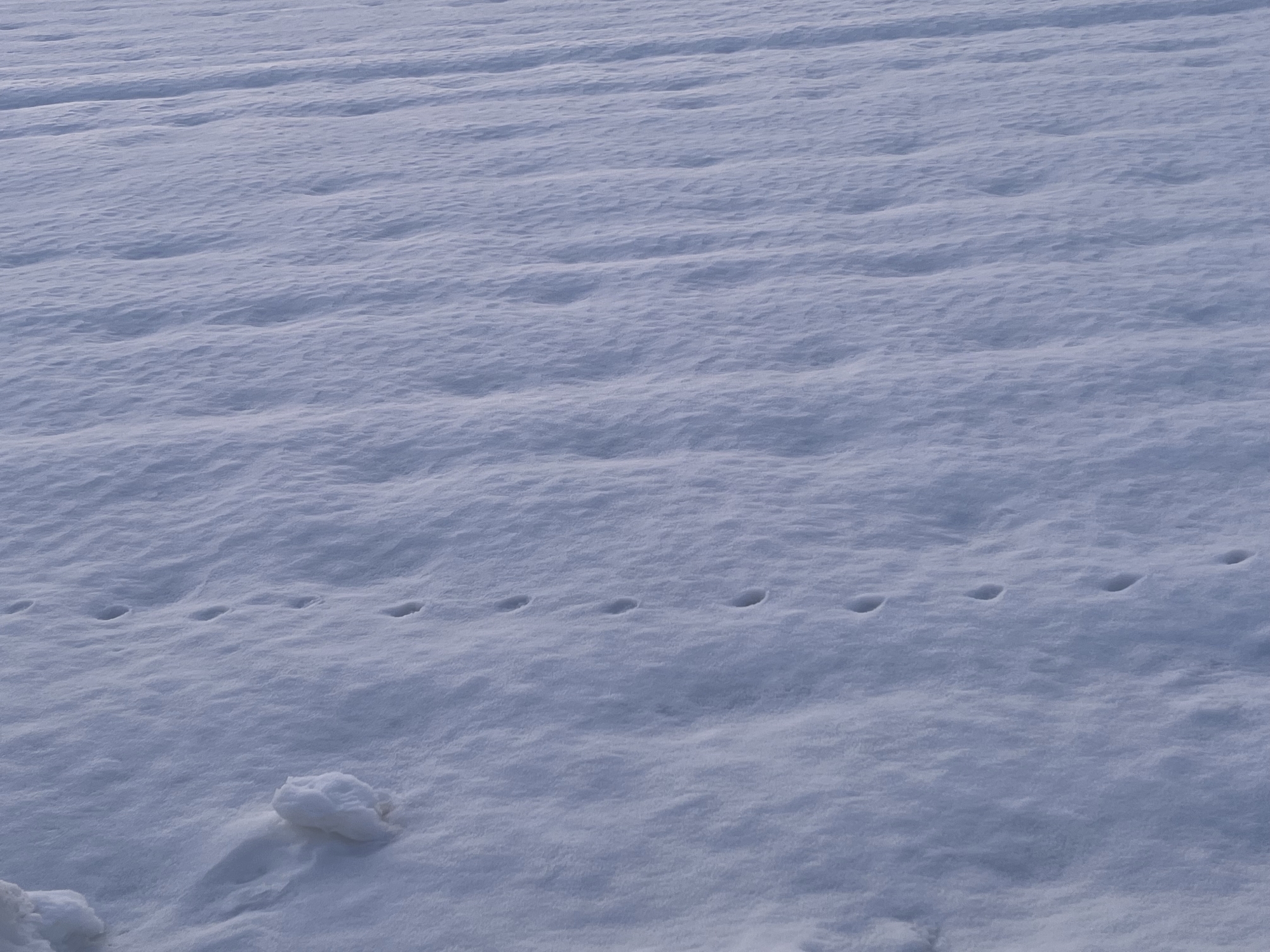 朝の雪野原には、誰かの足跡。