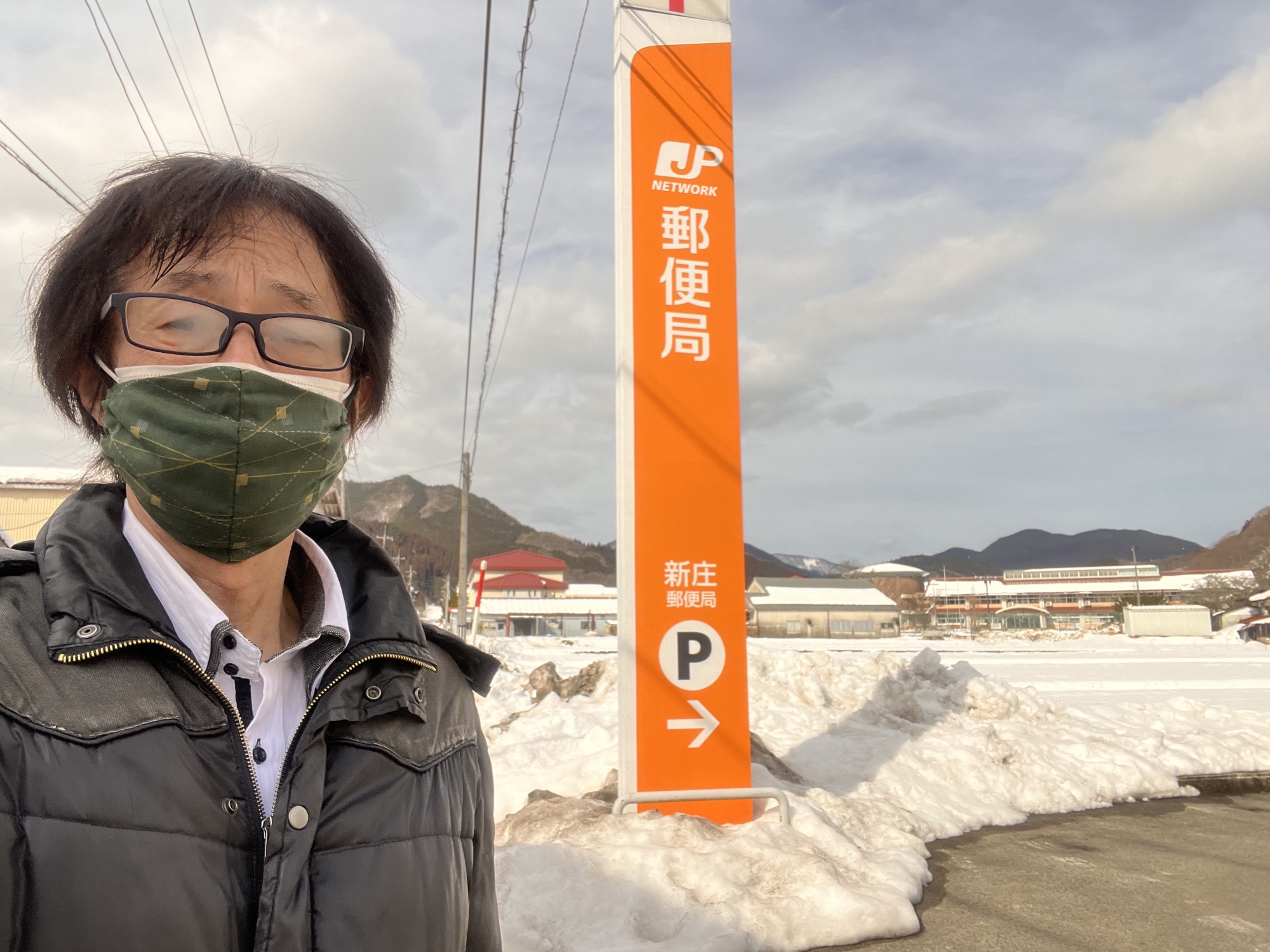 昼は役場の前を通って、郵便局へ。