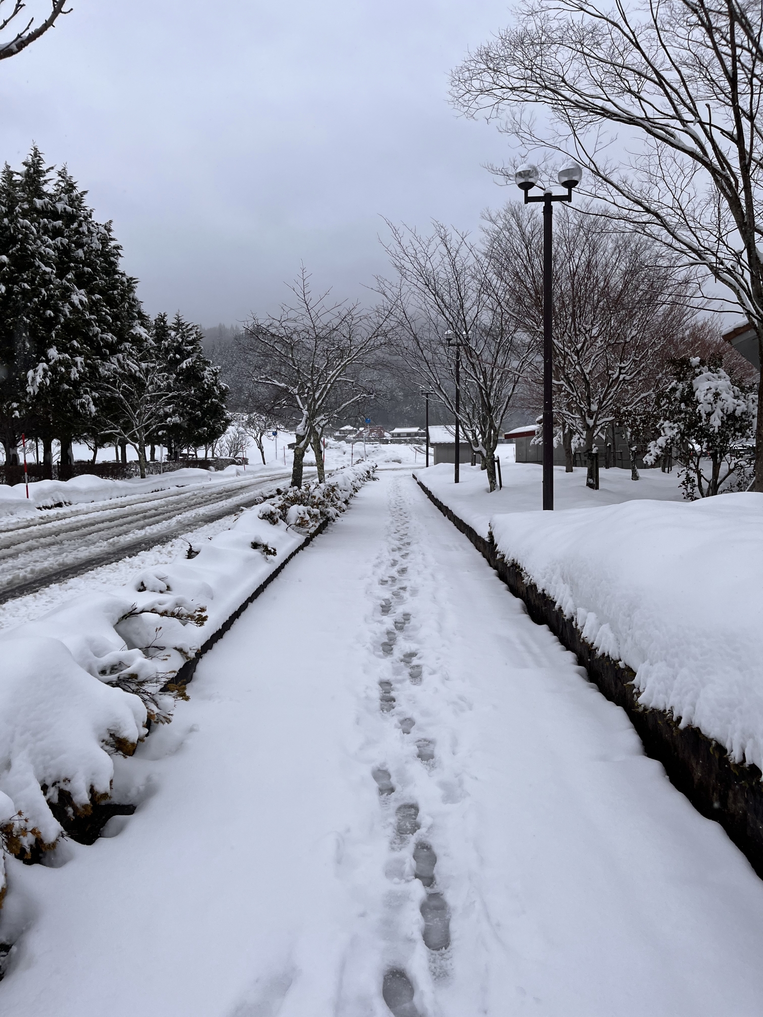 さて・・・通勤・・誰かが雪の中に足跡を残しています。