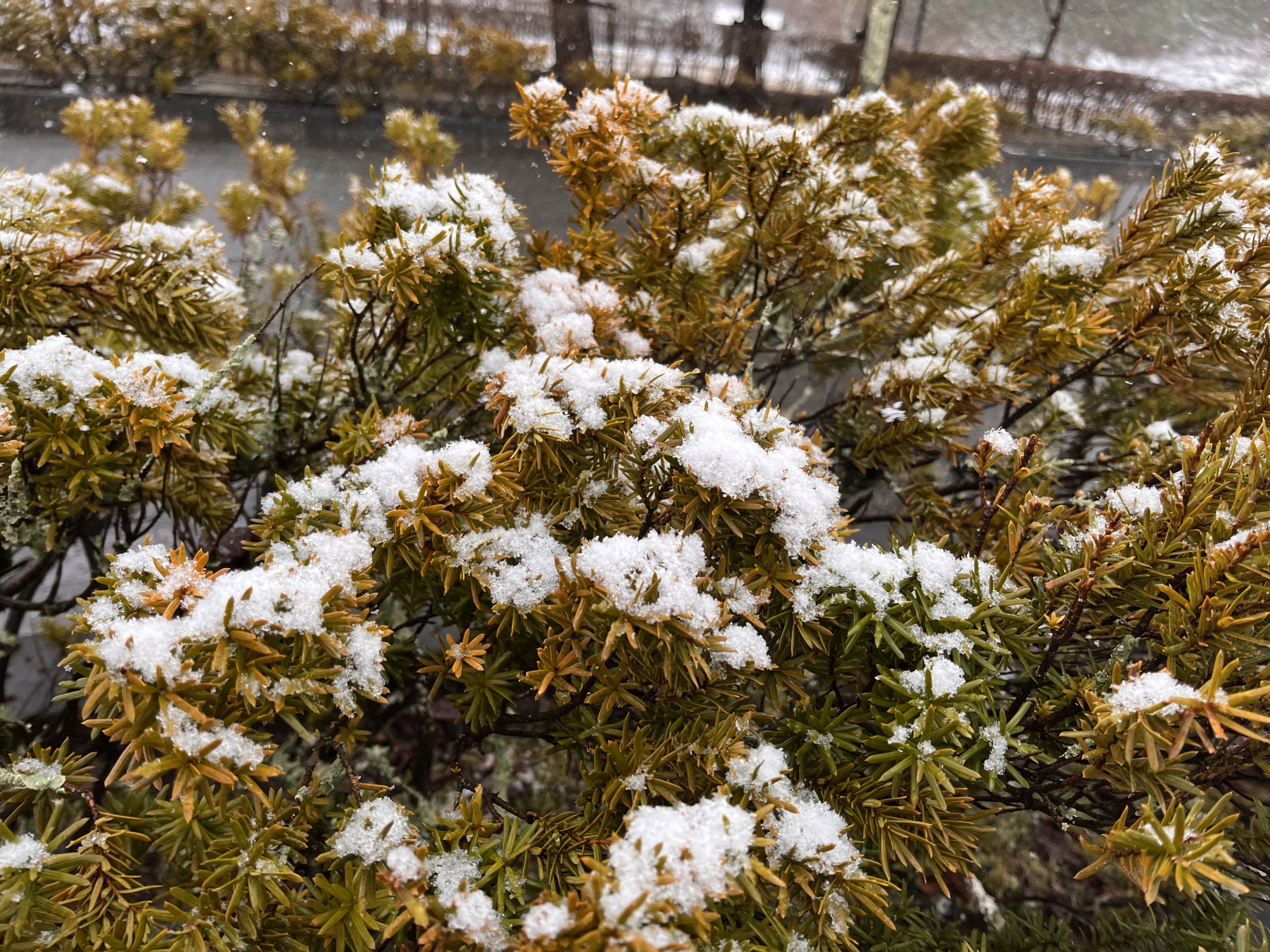 今朝から雪で・・うっすら白くなっていて・・夕方過ぎまで・・降雪(道路に積もるほどでは無かったですが・・・北の方の野土路は10cmくらい積もっていたそうな)。