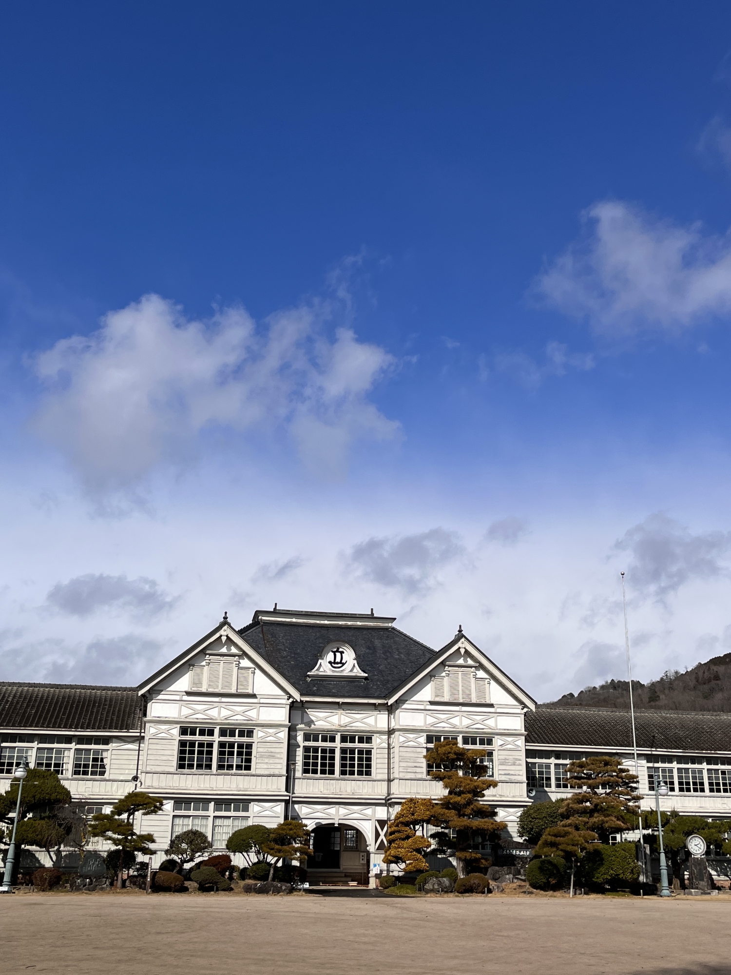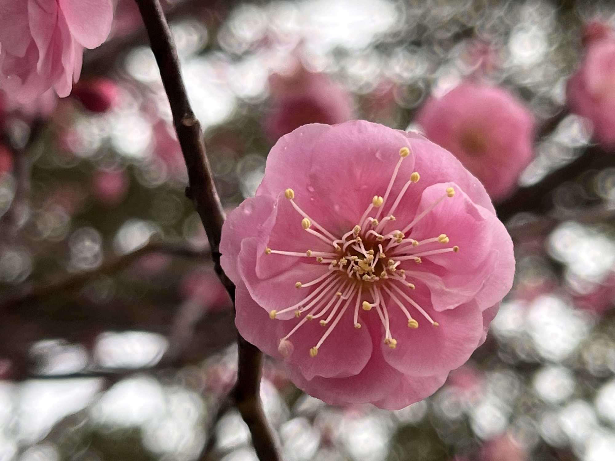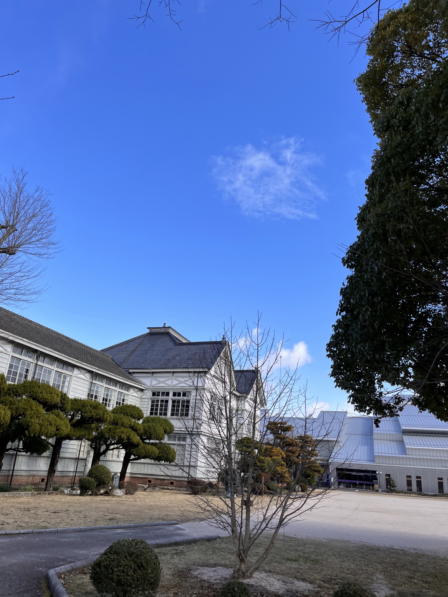 そこからいつもの旧遷喬尋常小学校跡・・・ピンクの梅。