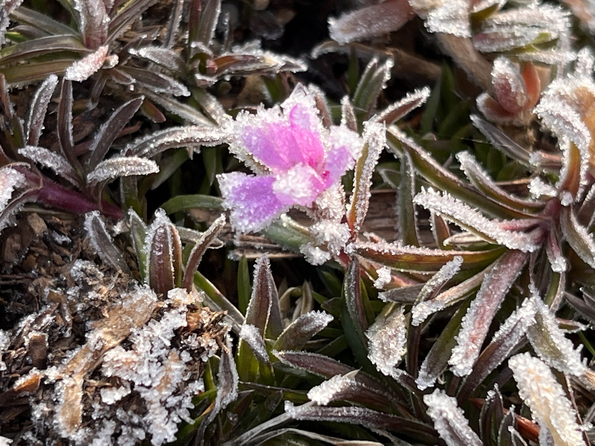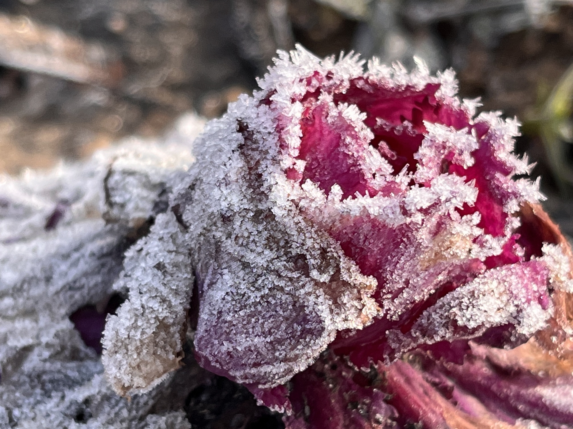 朝は冷え込んで・・・霜です。