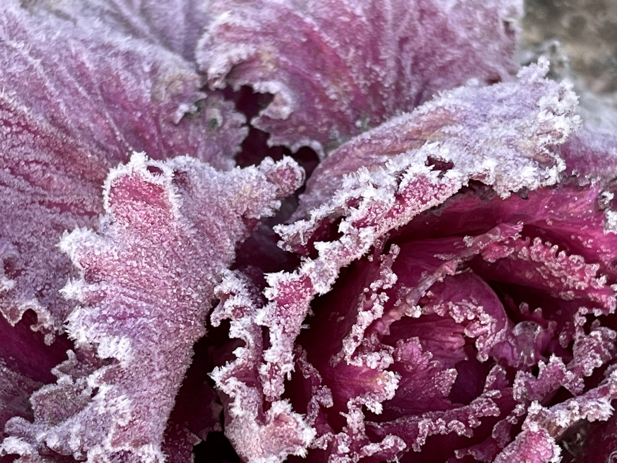交差点の花壇の葉ボタンも・・。