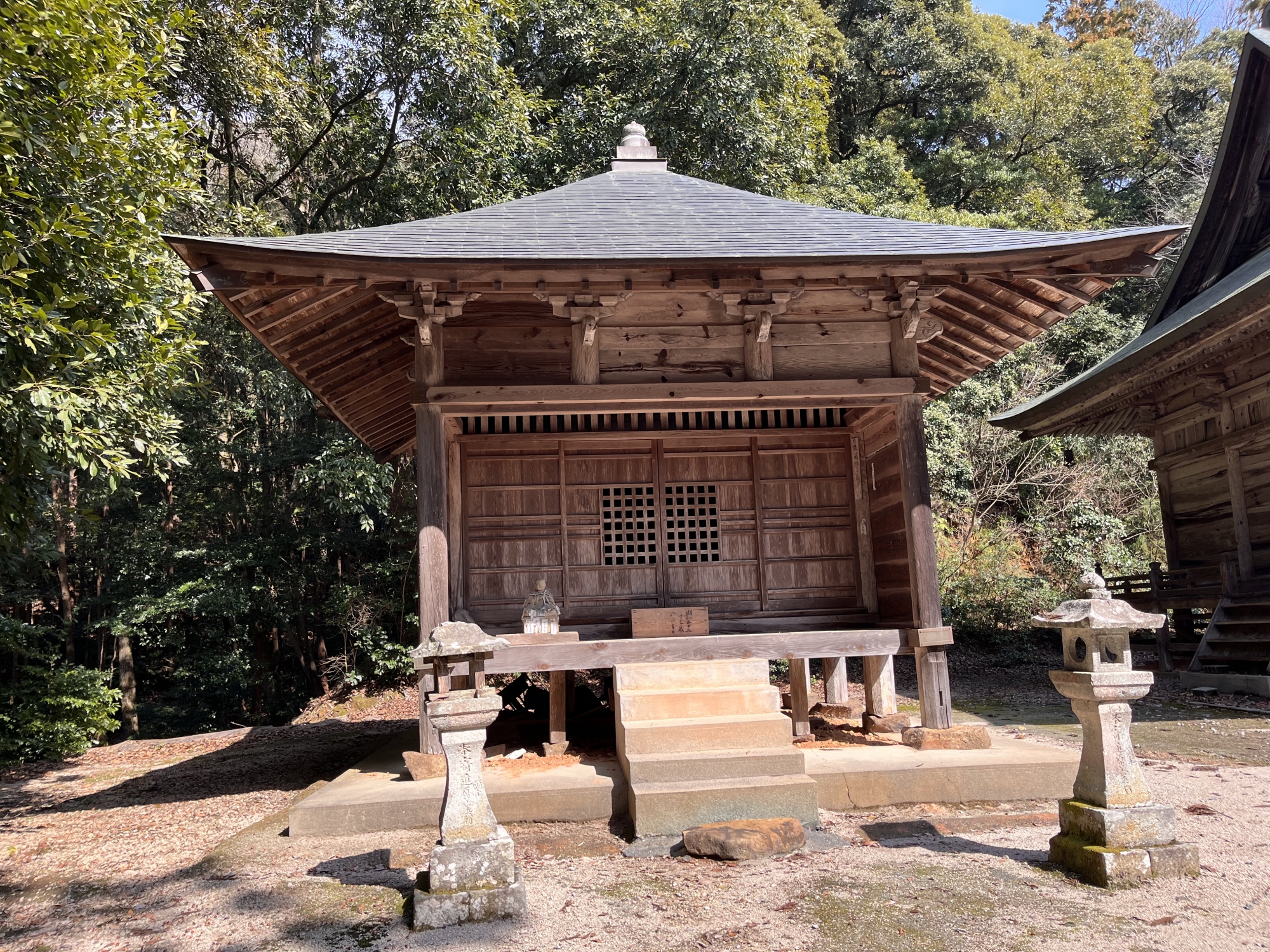 【本尊は行基の一刀三禮(さんらい)の作と伝えられる千手観音像が祀られていて、延命長寿の観音として知られる。】