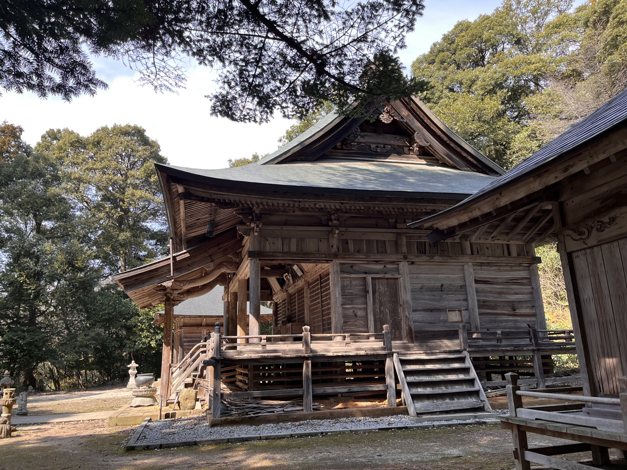 【この寺は聖武天皇の勅願寺であったといわれ、入母屋造りの本堂を囲む回廊は、絵馬、写真など新旧さまざまな奉納品で飾りたてられている。】