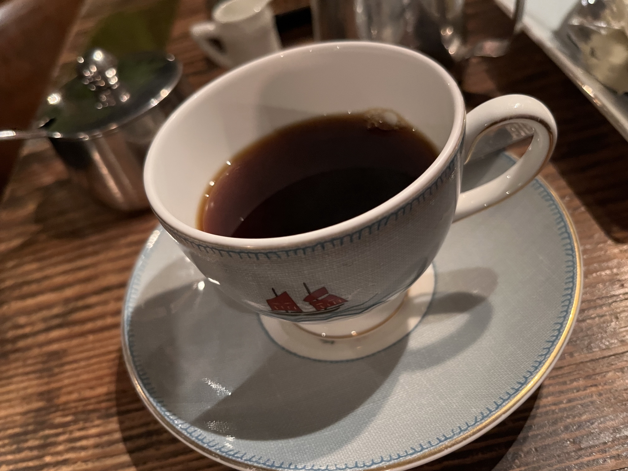 沢山のコーヒーカップ・・そして、メニューは少し違って・・チーズケーキにしました。ガテマラコーヒーと。