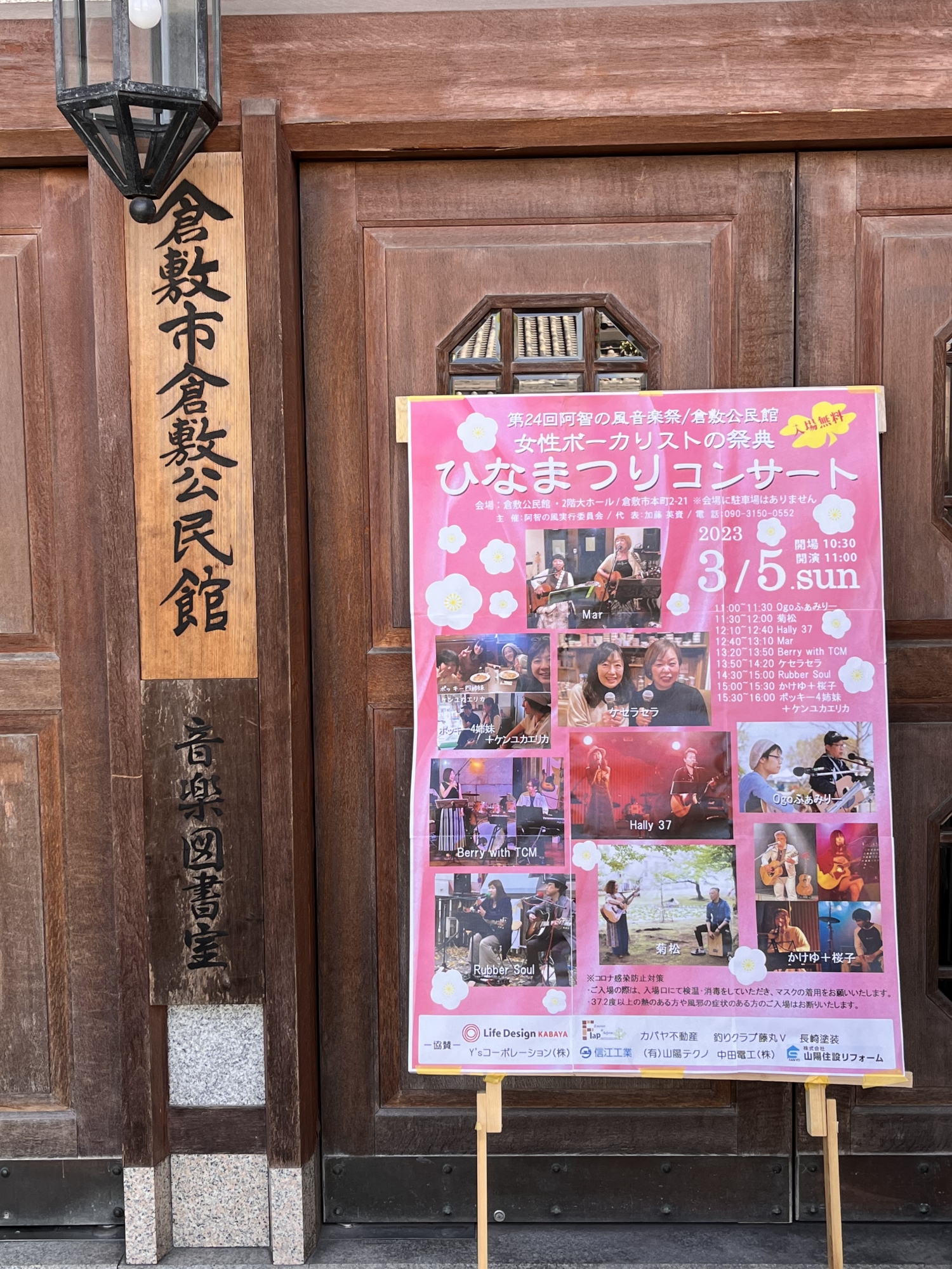 今日は・・・倉敷市倉敷公民館で「阿智の風音楽祭:ひな祭りコンサート」でした。