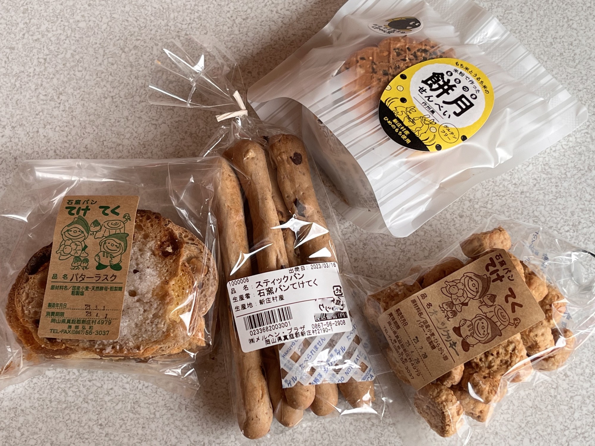お土産を道の駅で・・・てけてくさんのパン系と、餅月煎餅