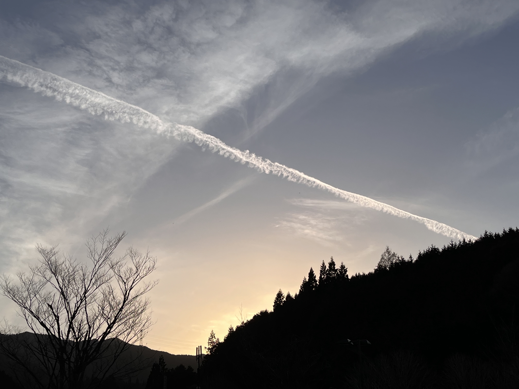 退勤時の回り道は、大所まで・・・飛行機雲。