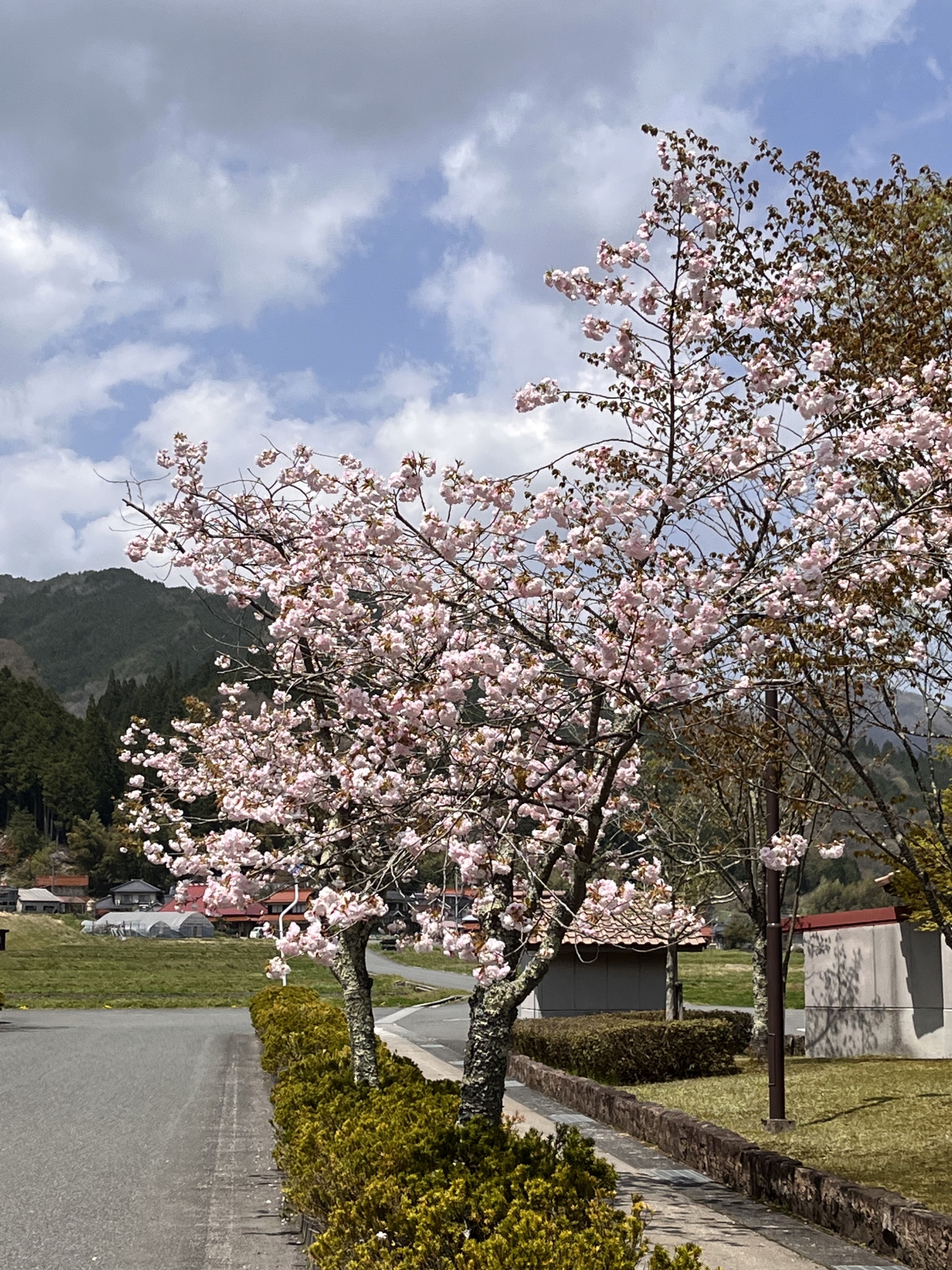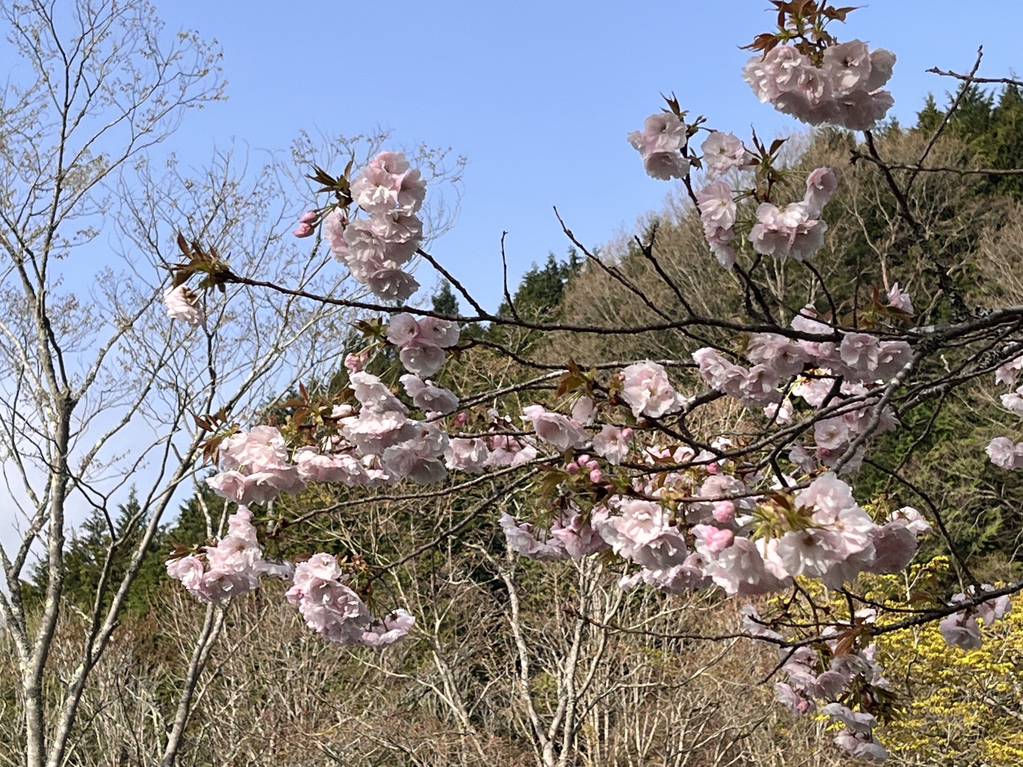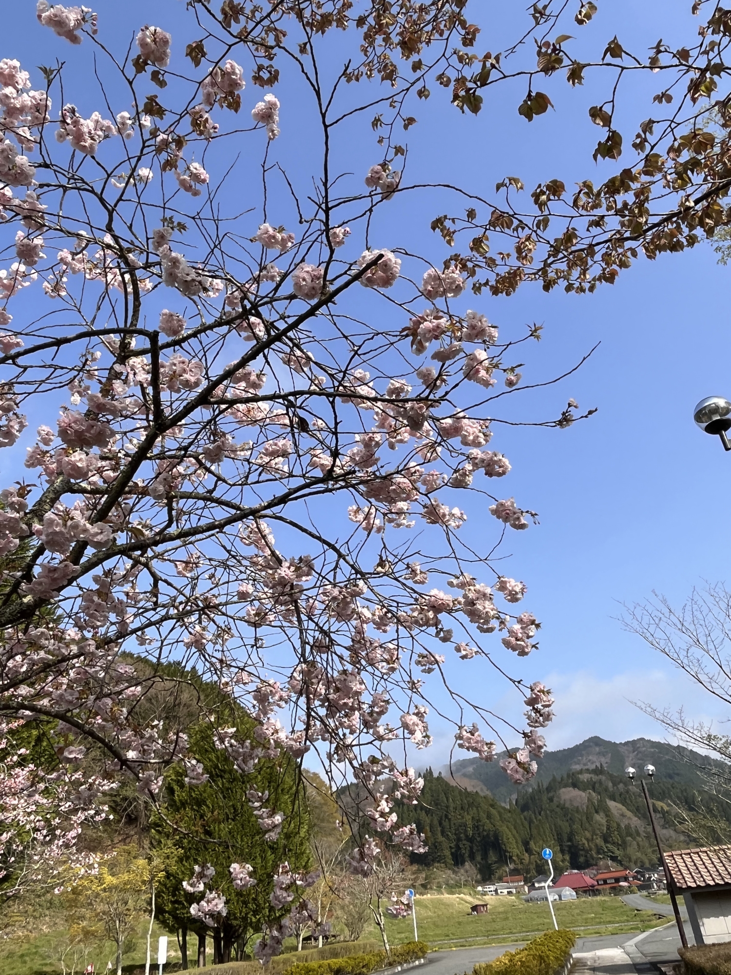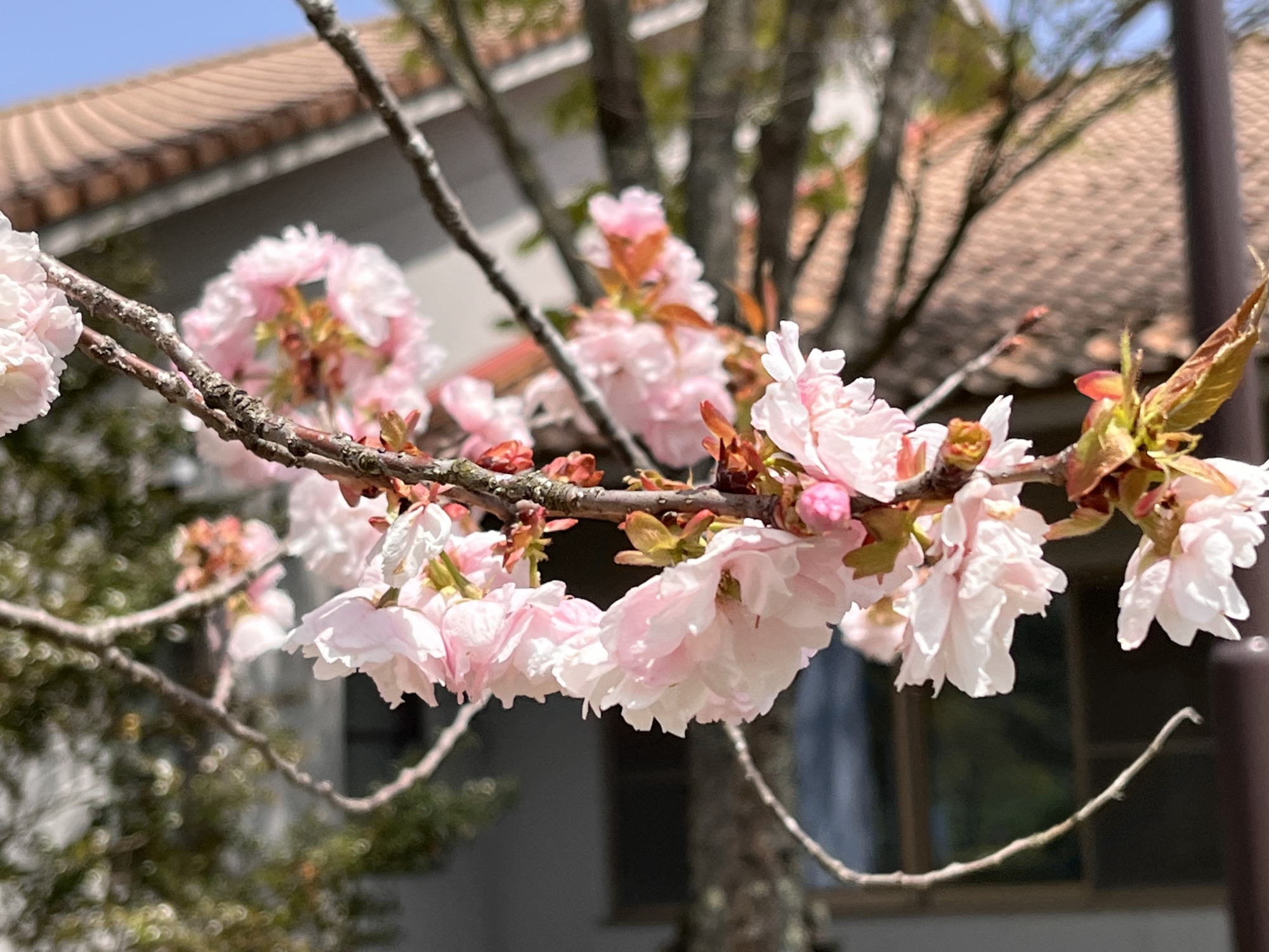 でも、そのあとは・・・晴れて・・・八重桜も微笑ましい!
