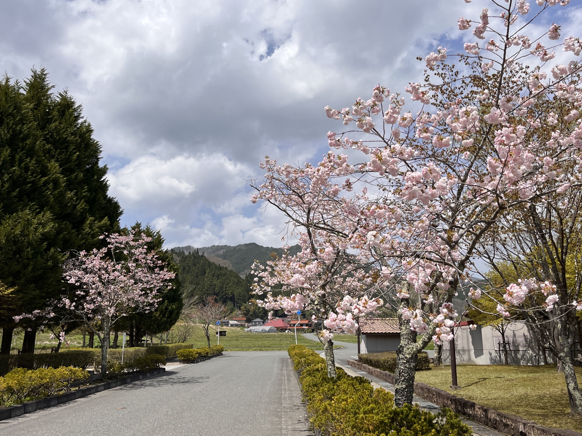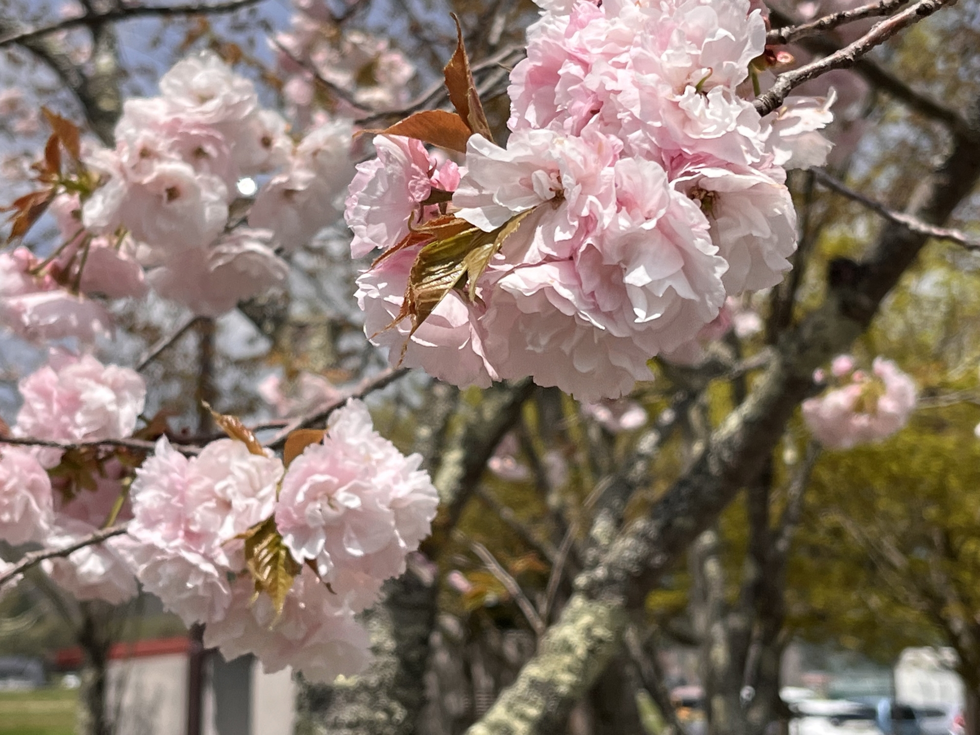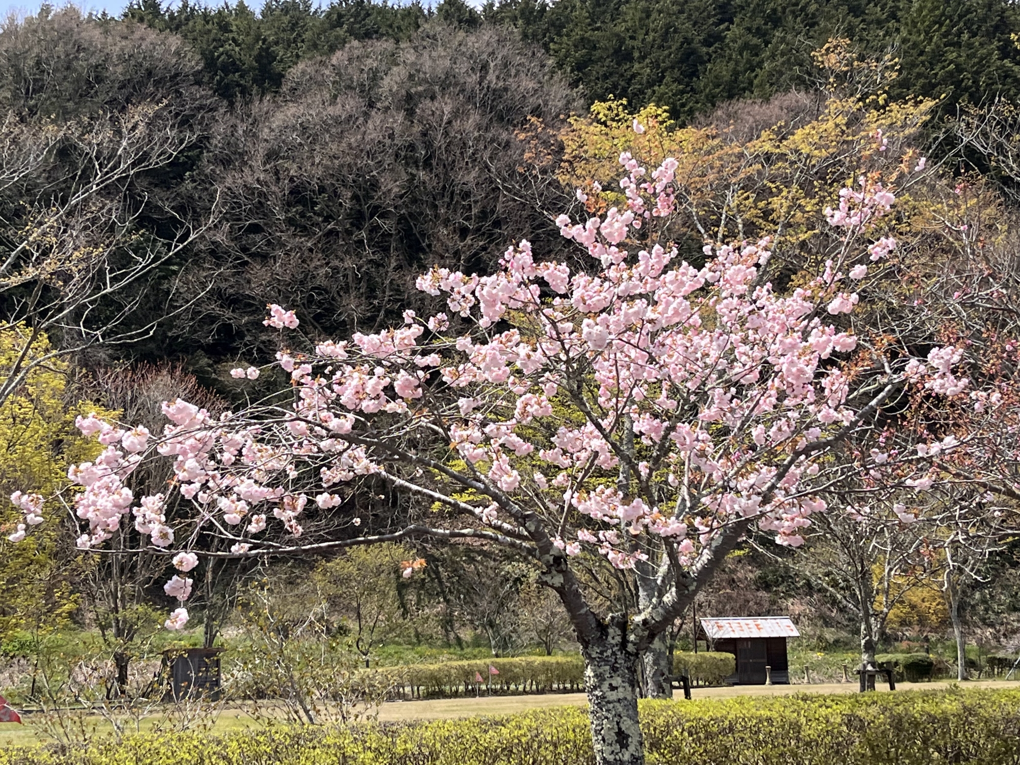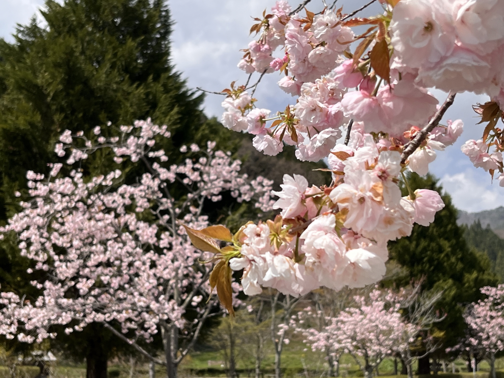 でも、そのあとは・・・晴れて・・・八重桜も微笑ましい!