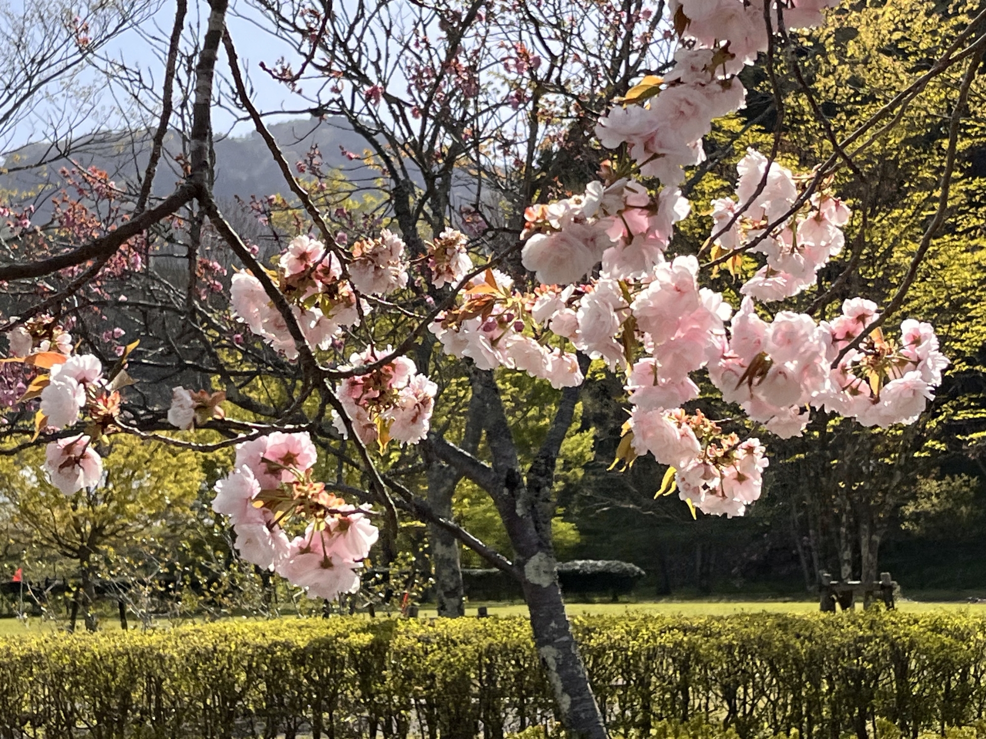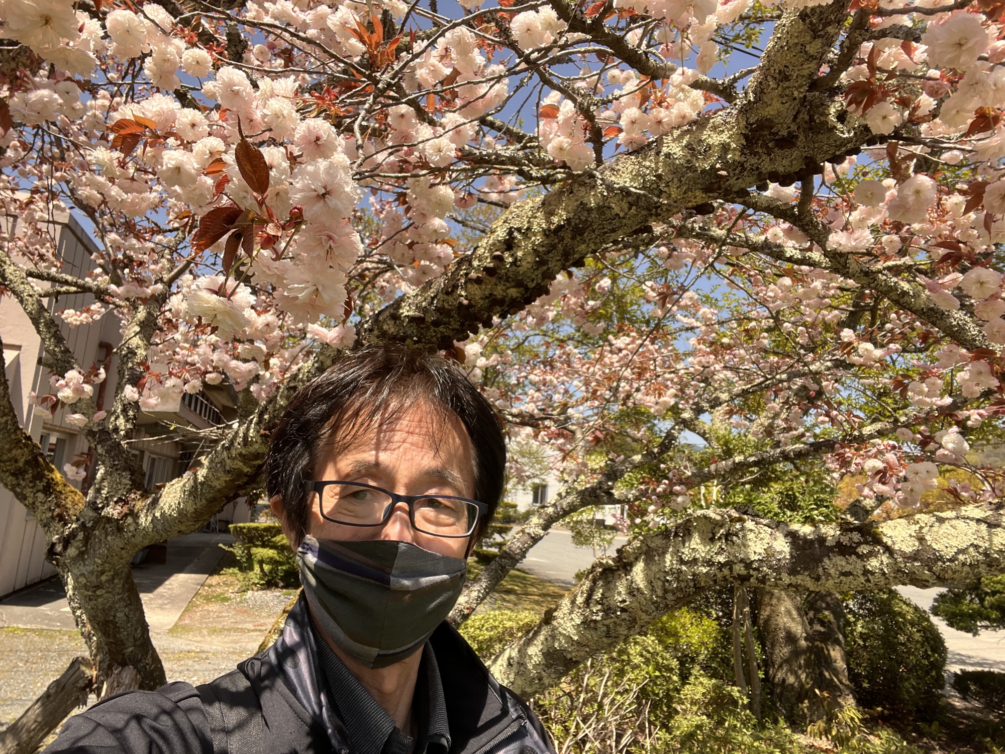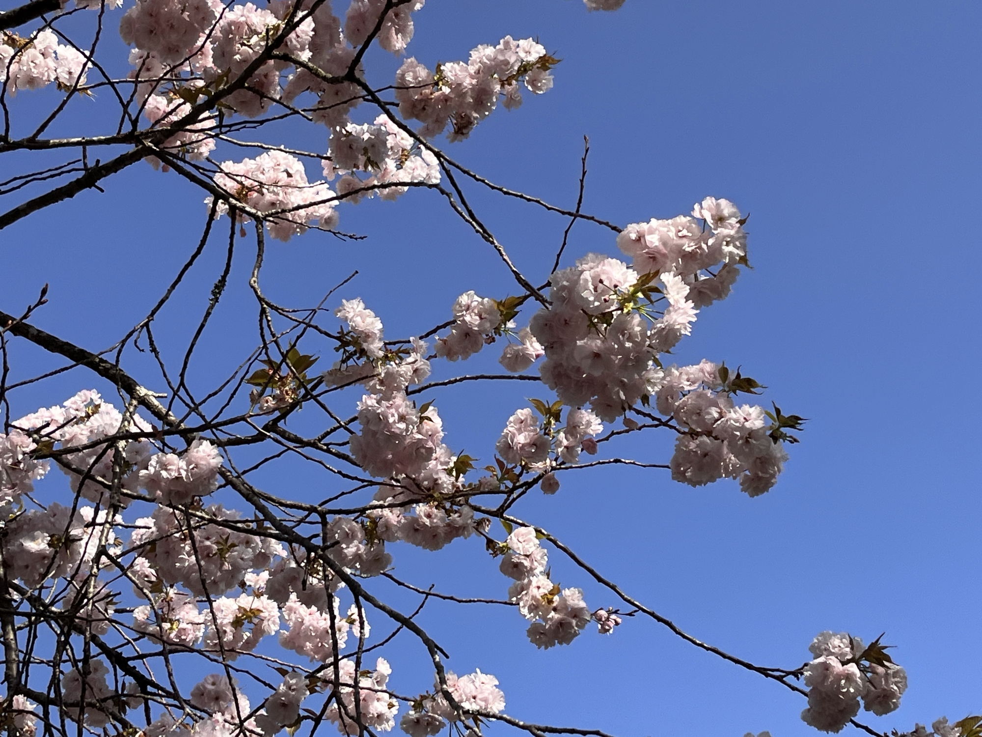 ほら・・公民館の夜の八重桜も満開で・・昨日も、観ましたけど・・でも、青空の中が良いですね、やっぱり。