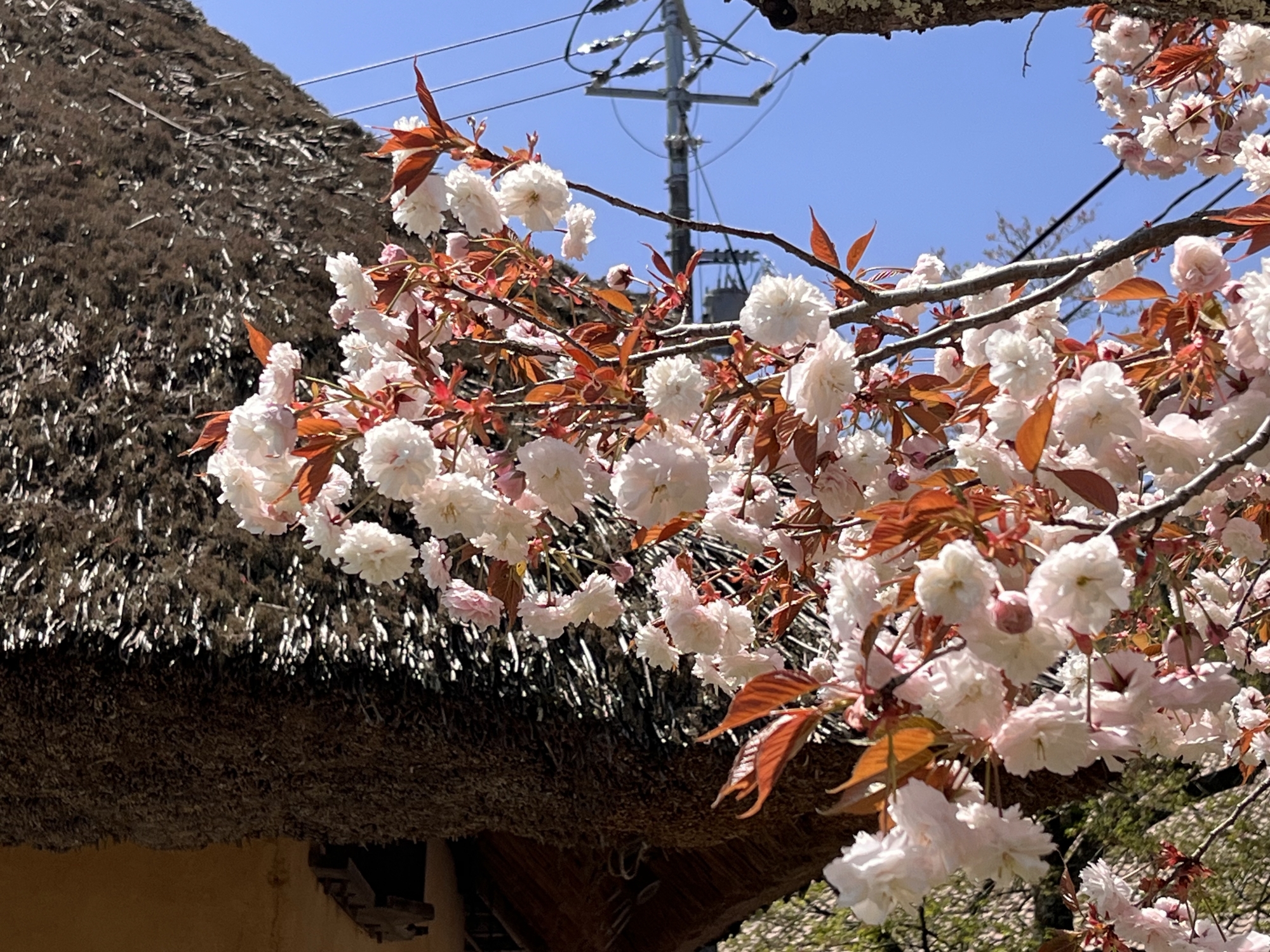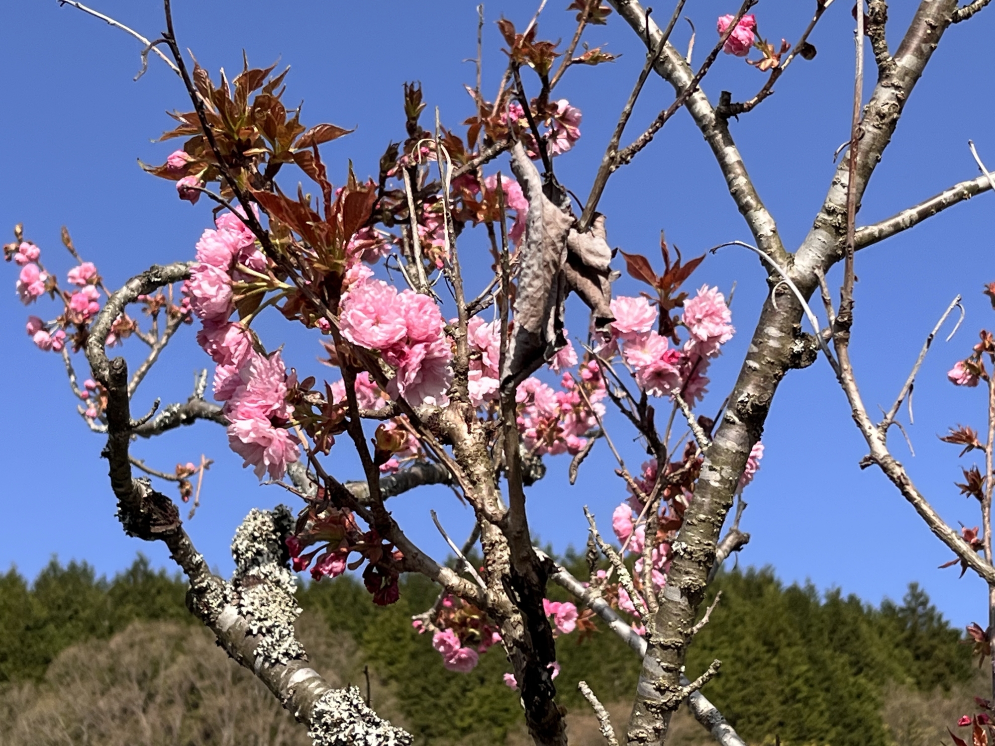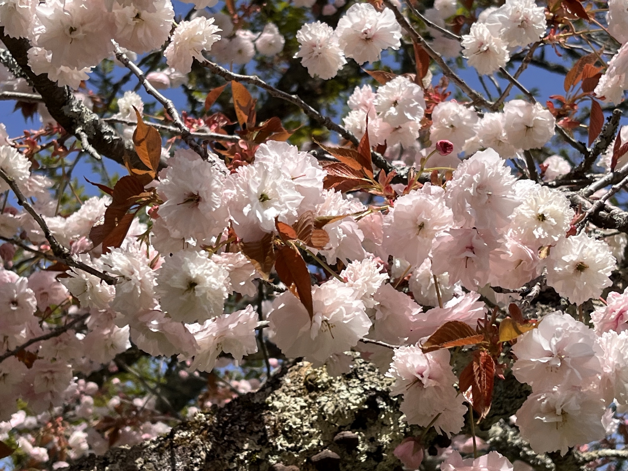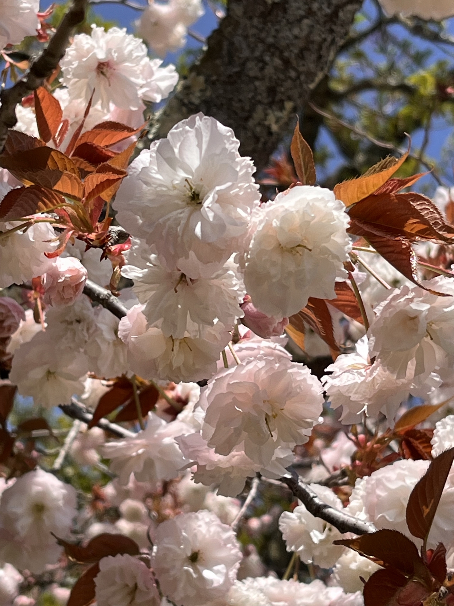 濃い色の八重桜は・・・漸く、咲き始めました。