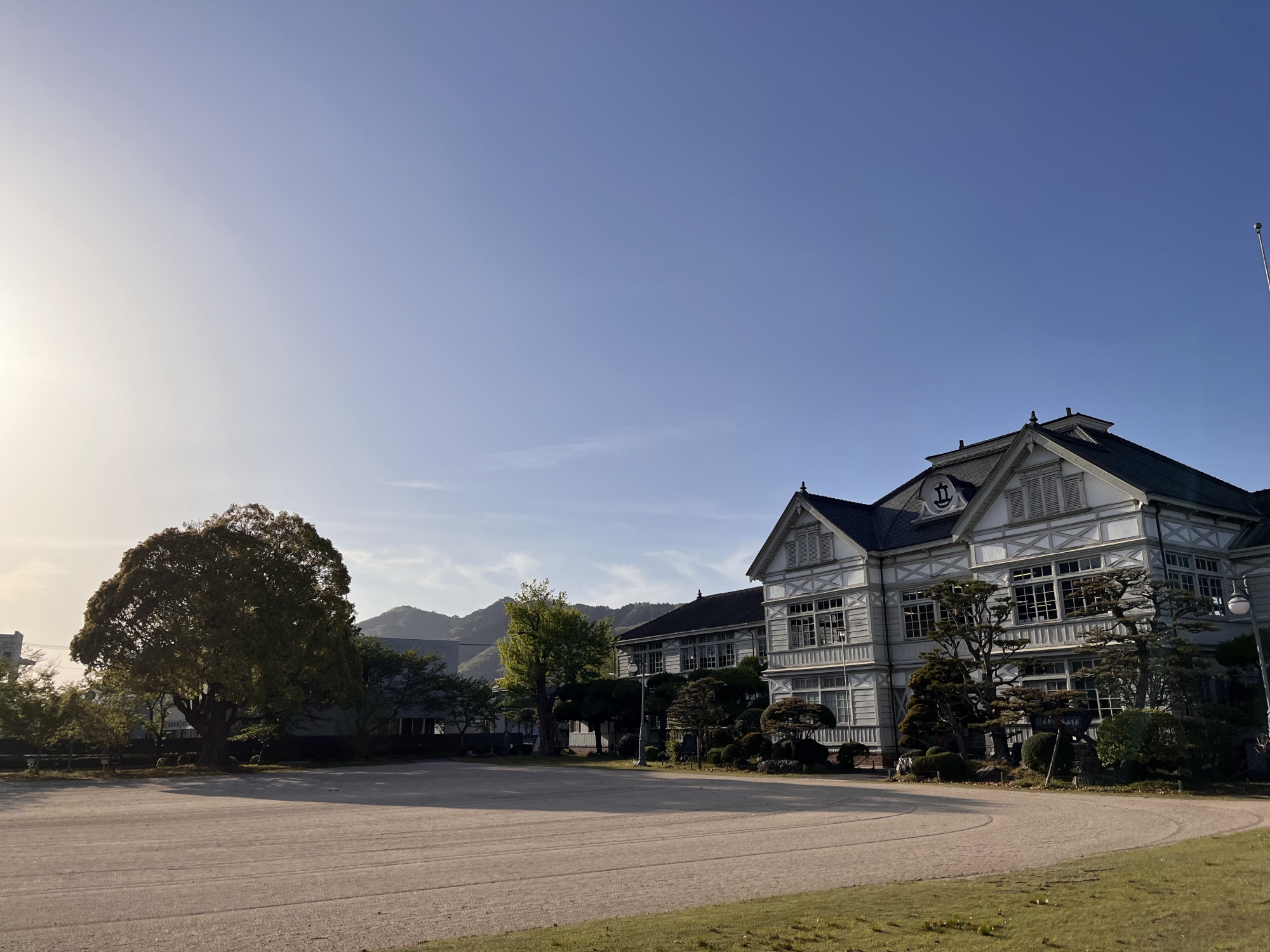 歴史民俗資料館が、新役場の駐車場から、良く見えています。