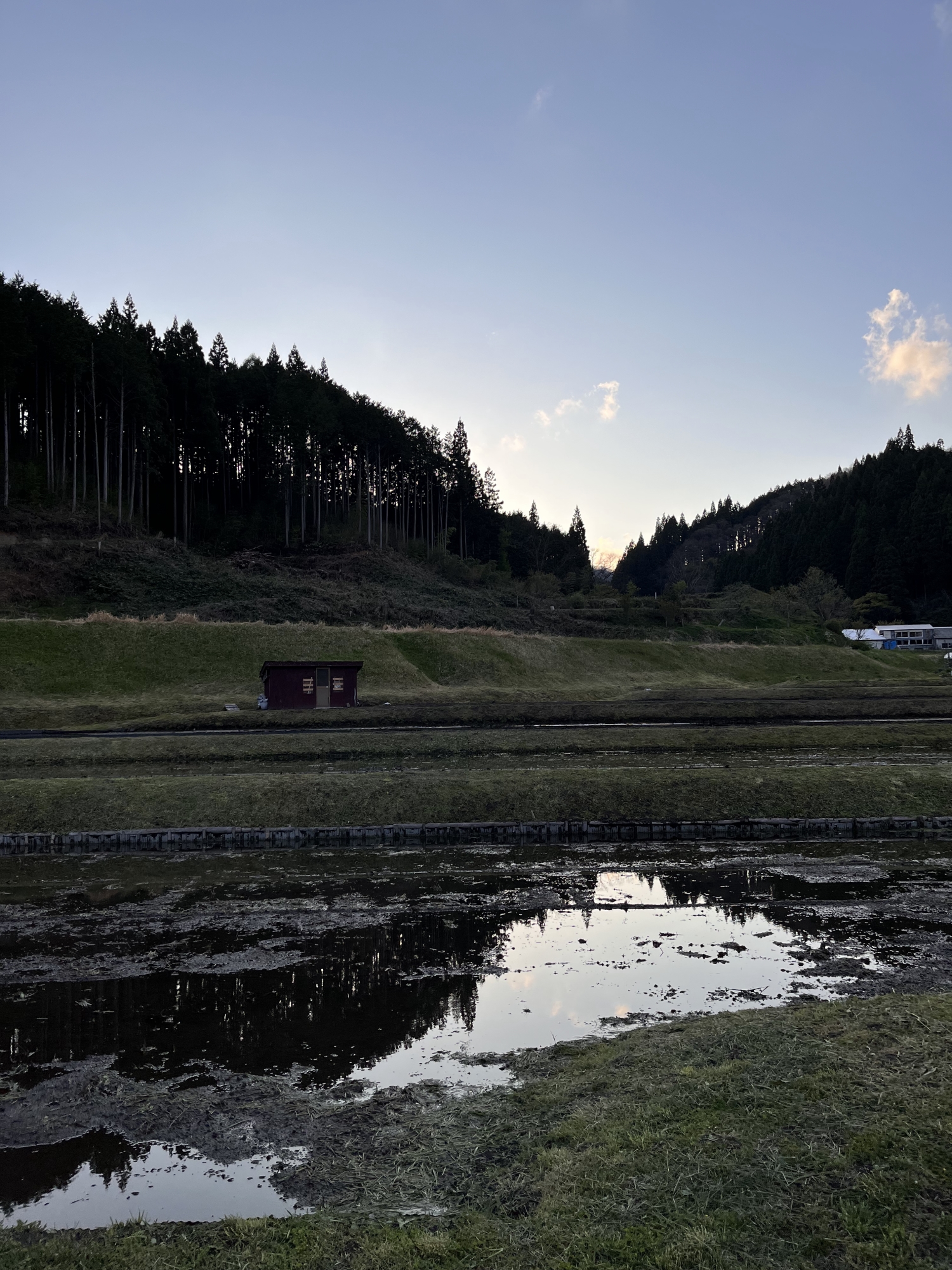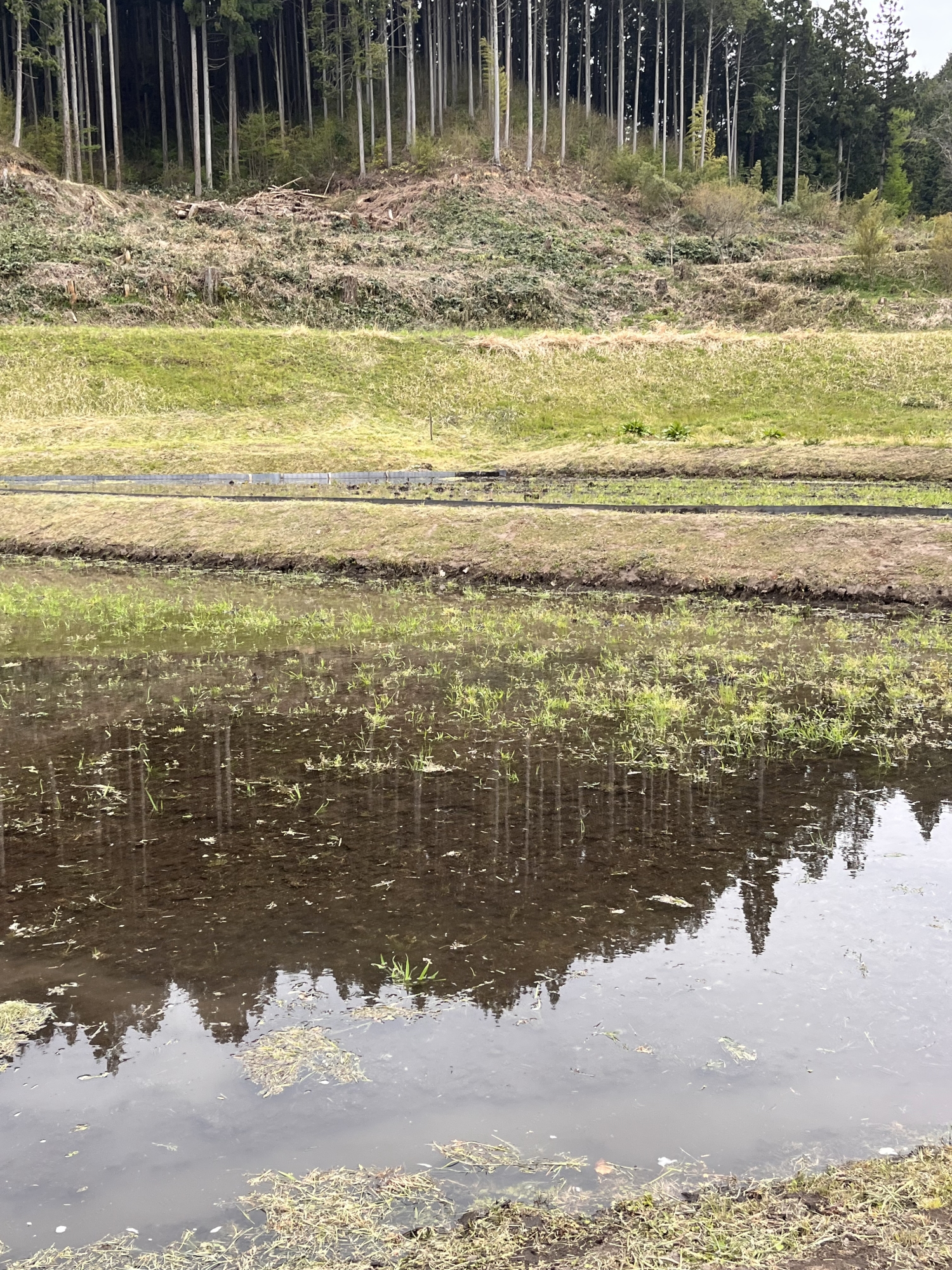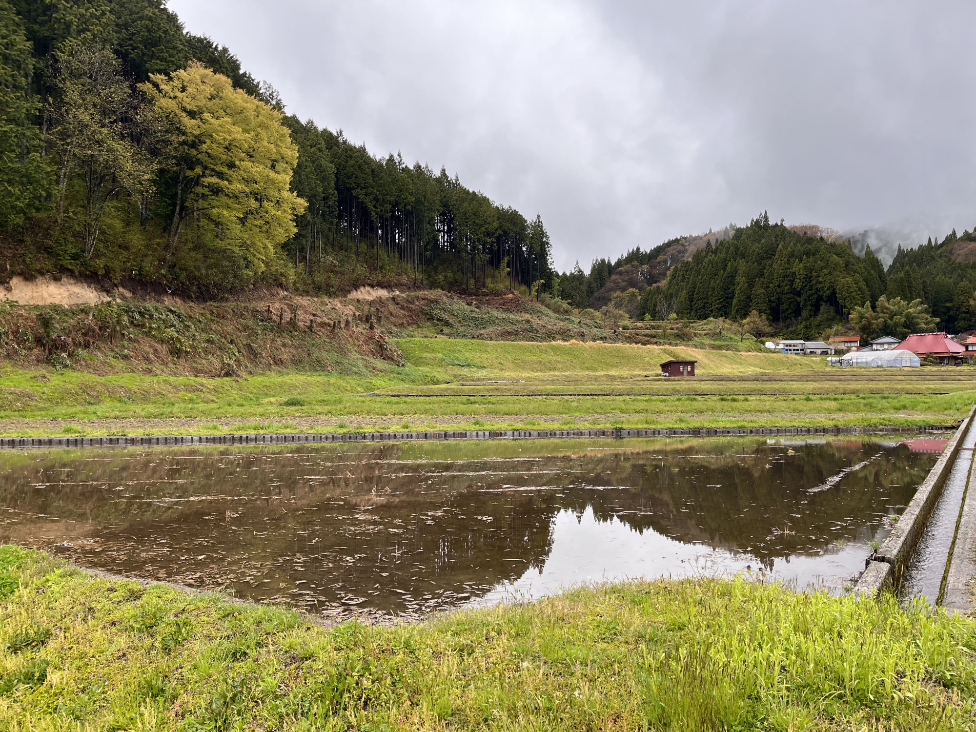 葱の畑も植わったし、田圃には水が張られています。