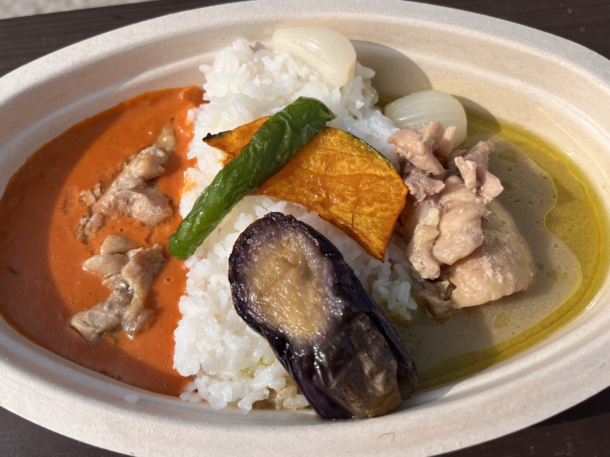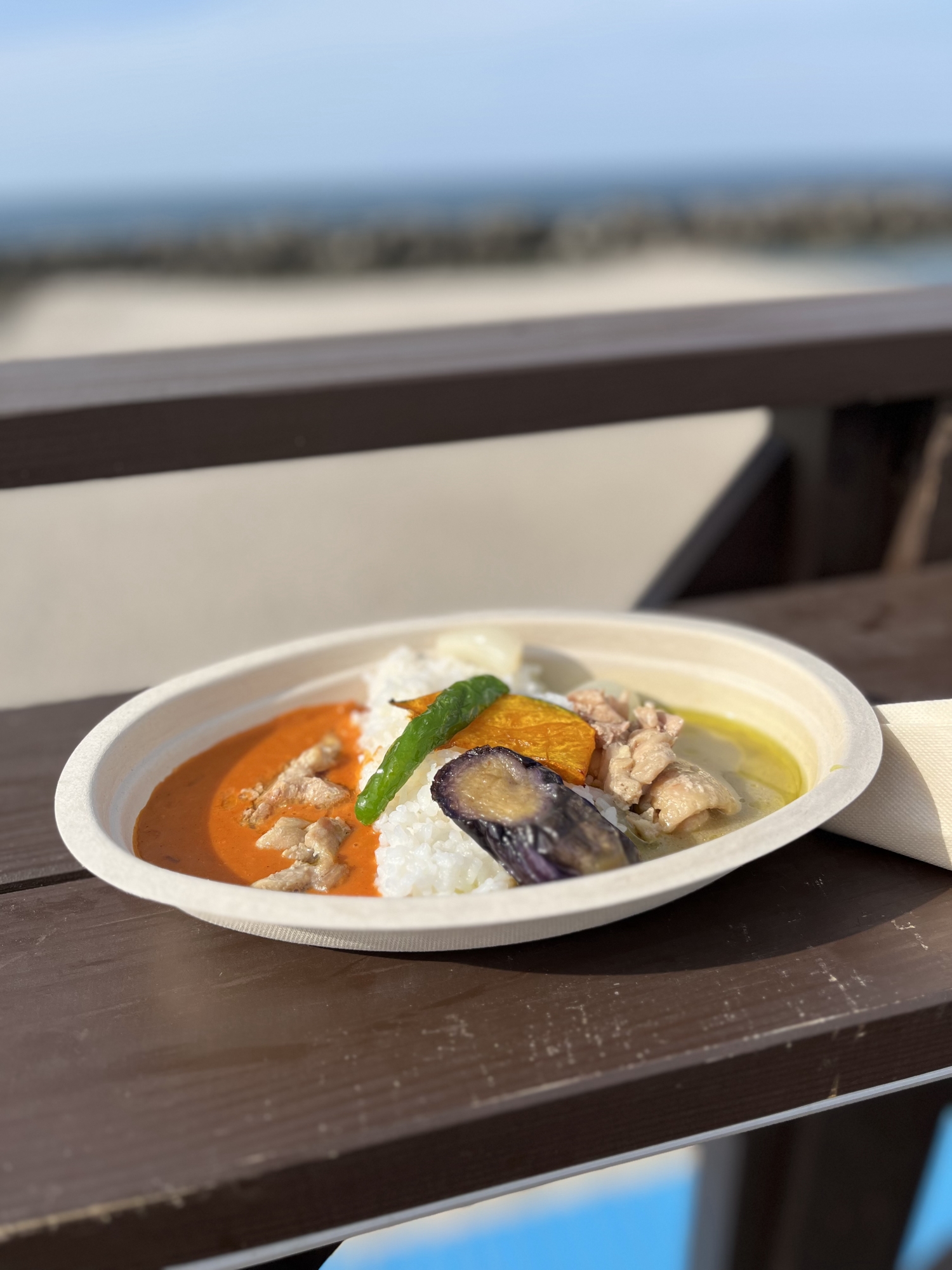 最後・・・出番の後で、なんか、お腹が空いて・・・バターチキン&グリーンカレーを、気持ちよく食べました。少し、夕方が近付きいて、肌寒くなって来たかな? 美味しいし、海辺で食べるの、気持ち良い🧡