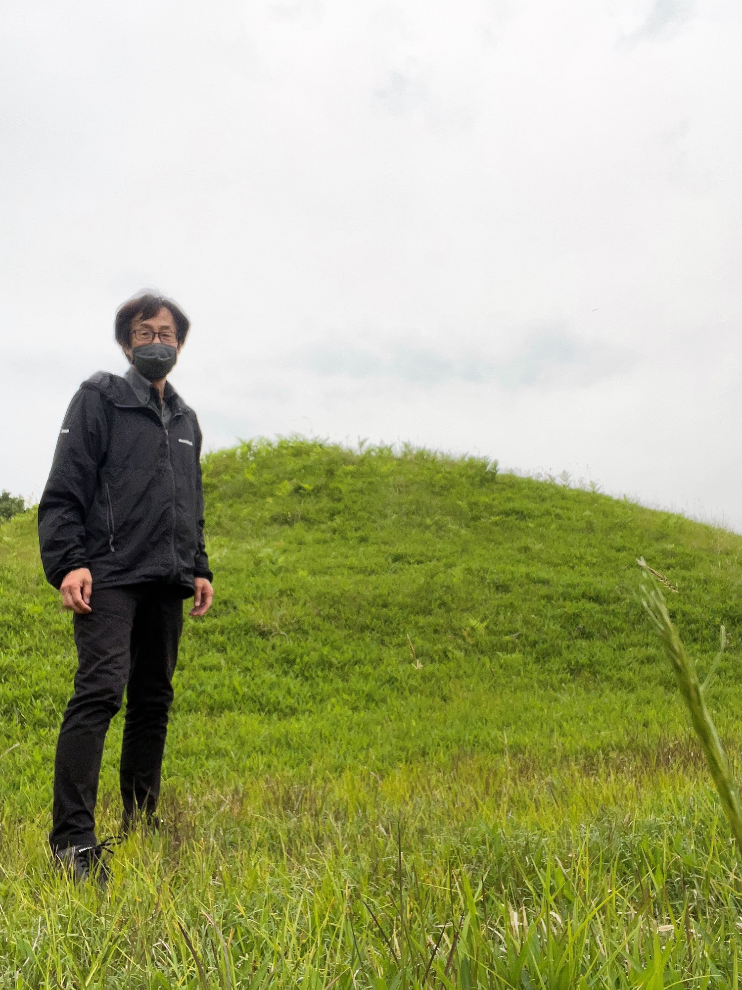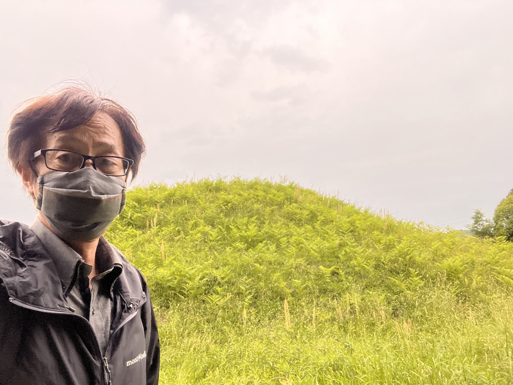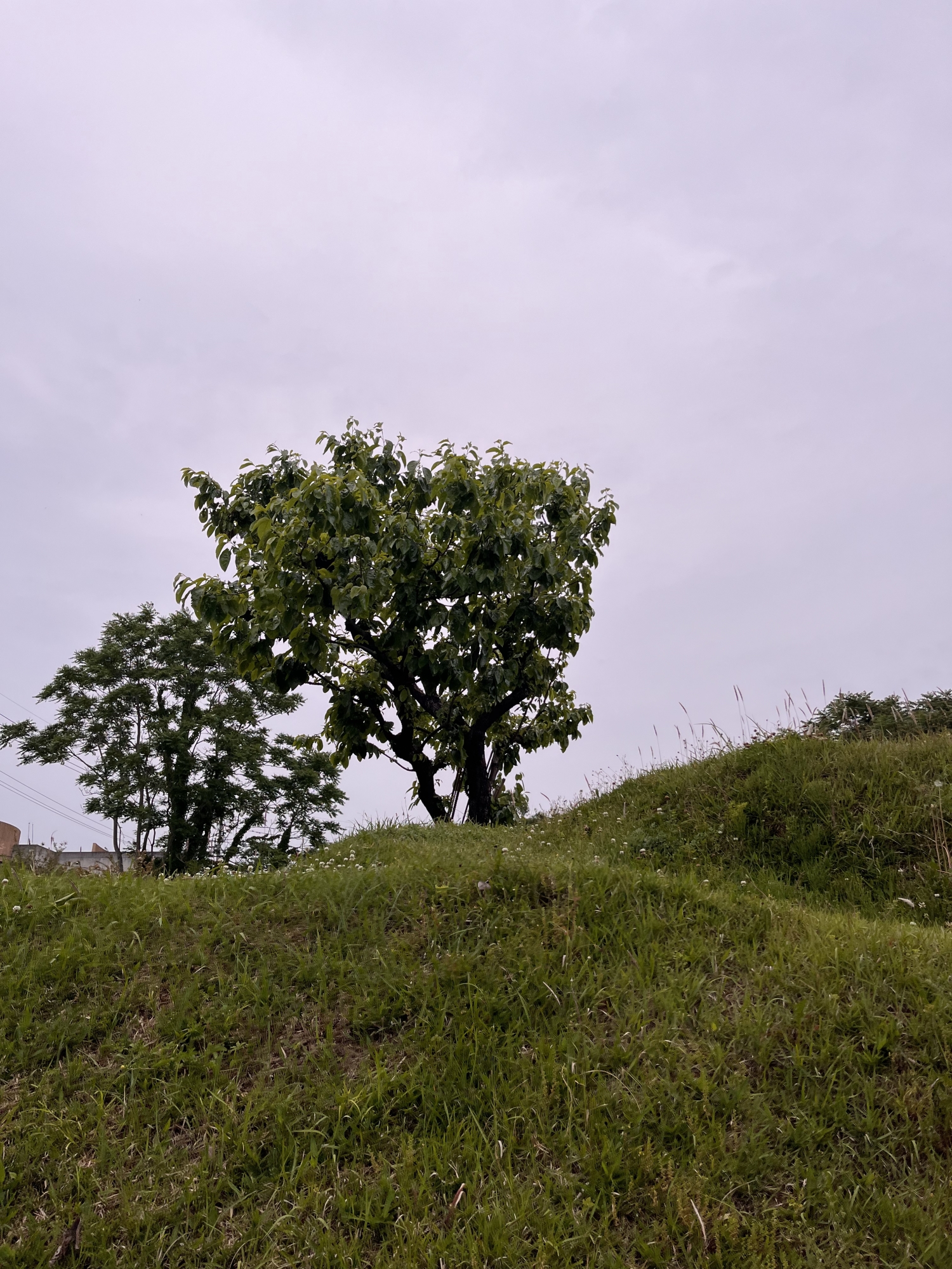 こういうのを、帆立貝式古墳っていうのですね。戻ろうって思ったら、少し雨。