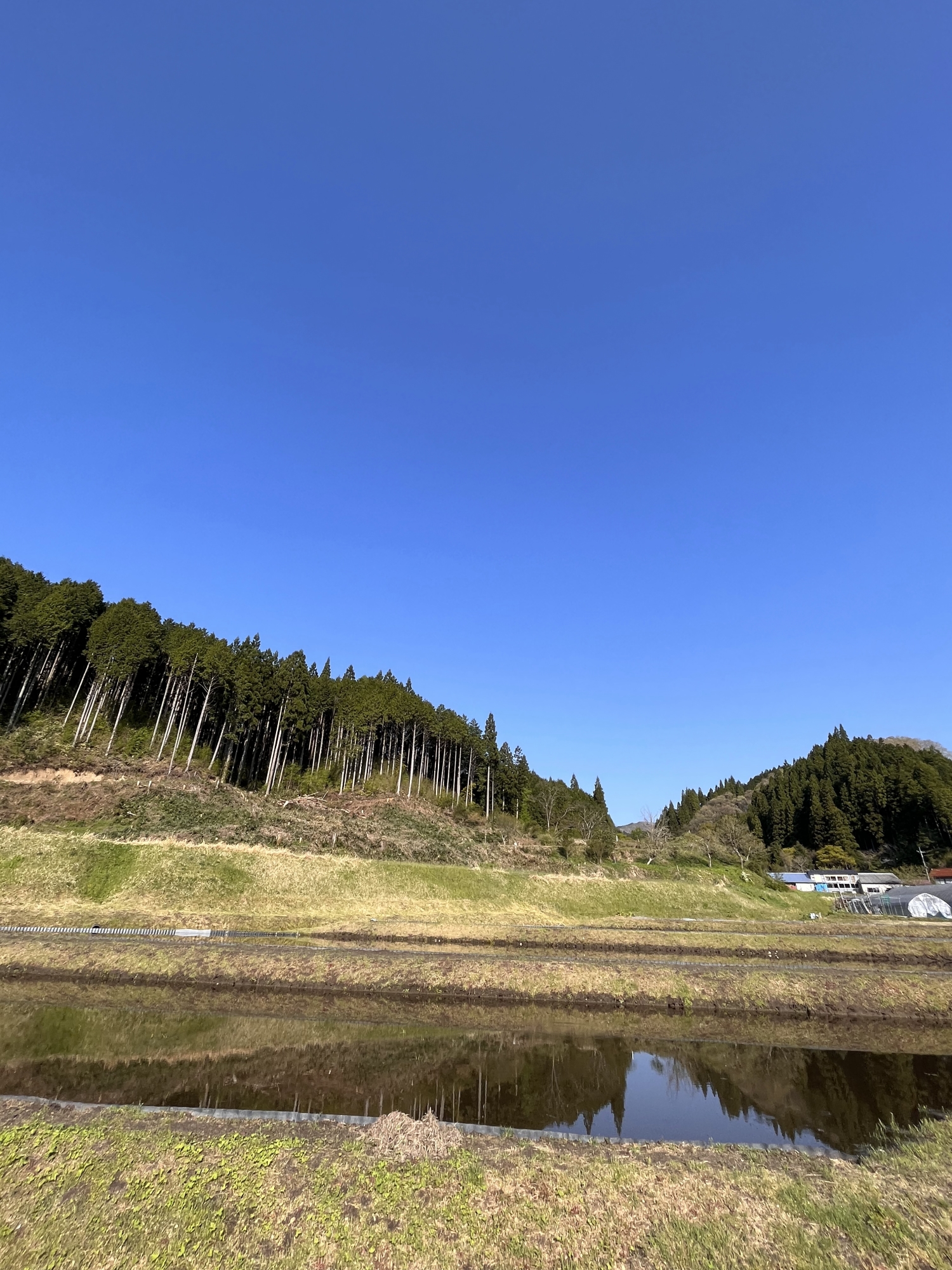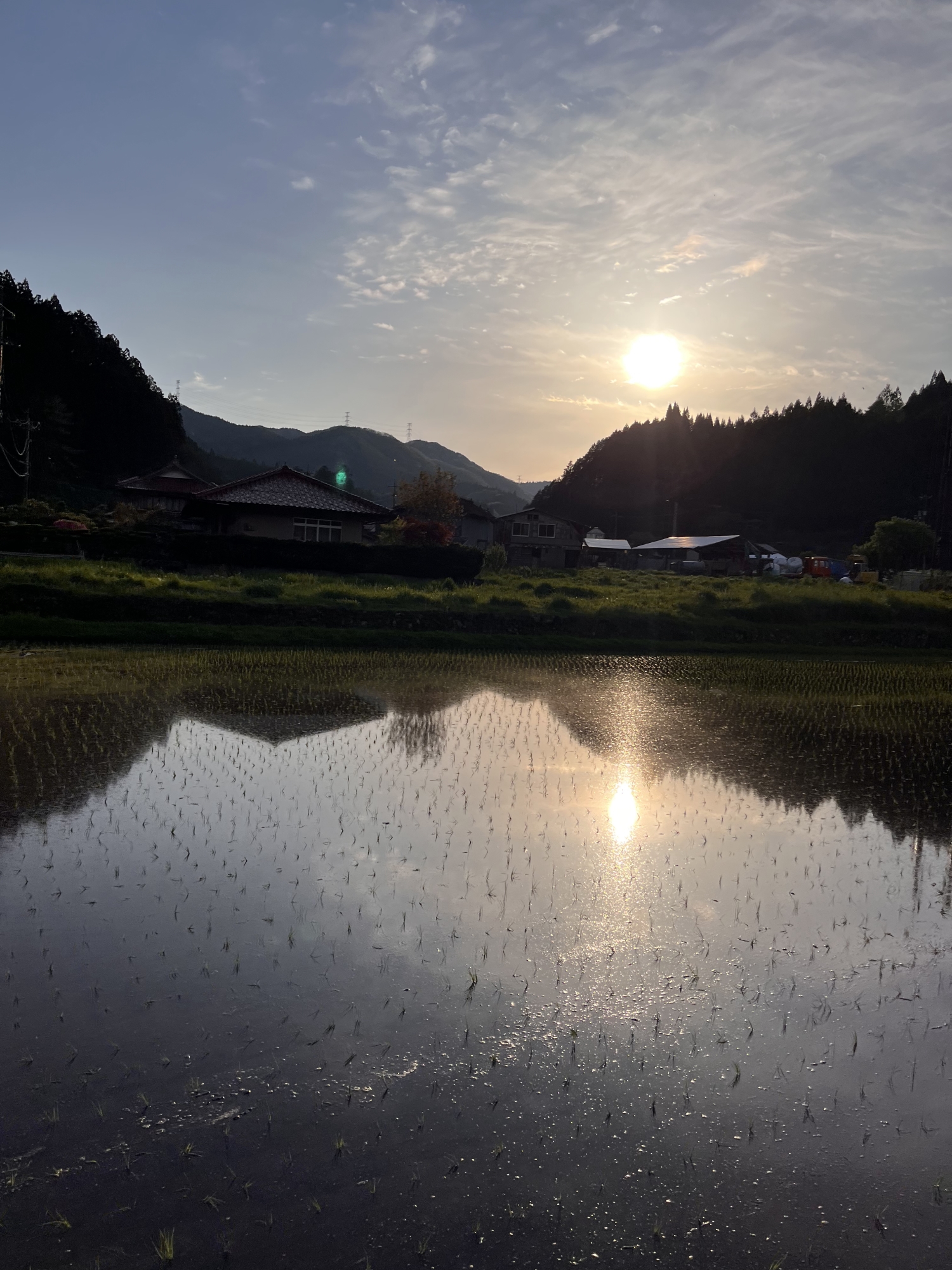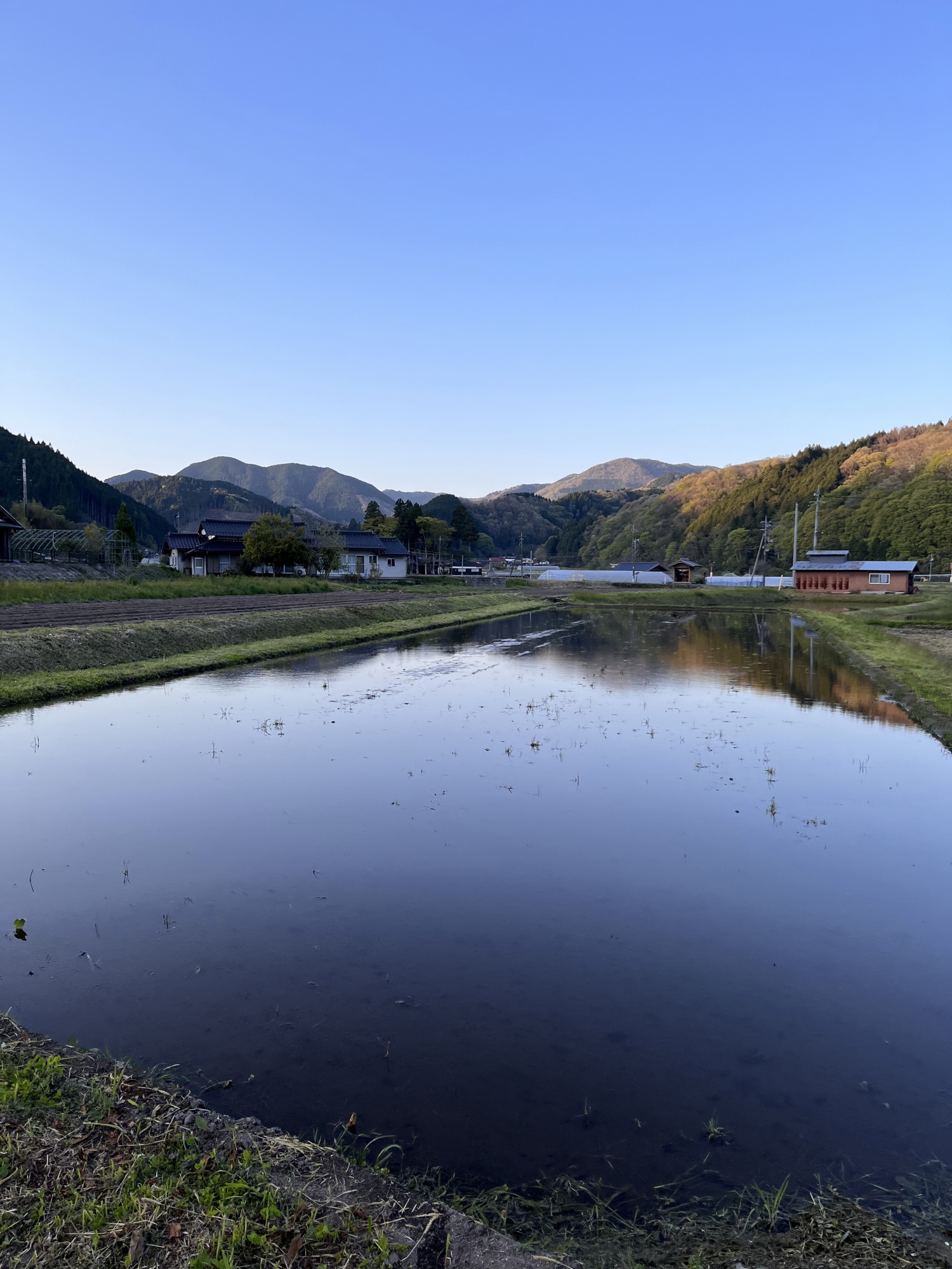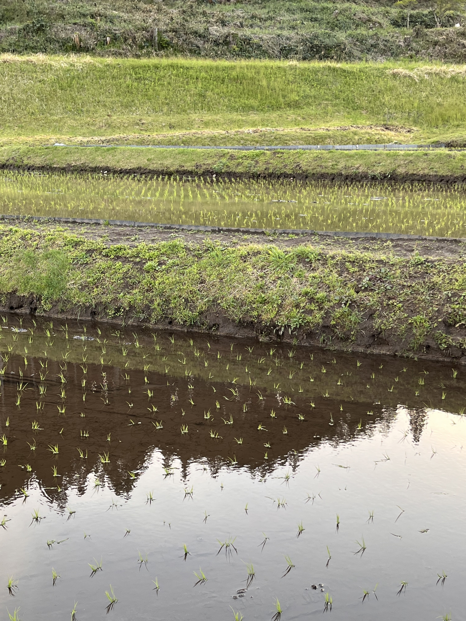 川も・・・そして田圃も鏡です。