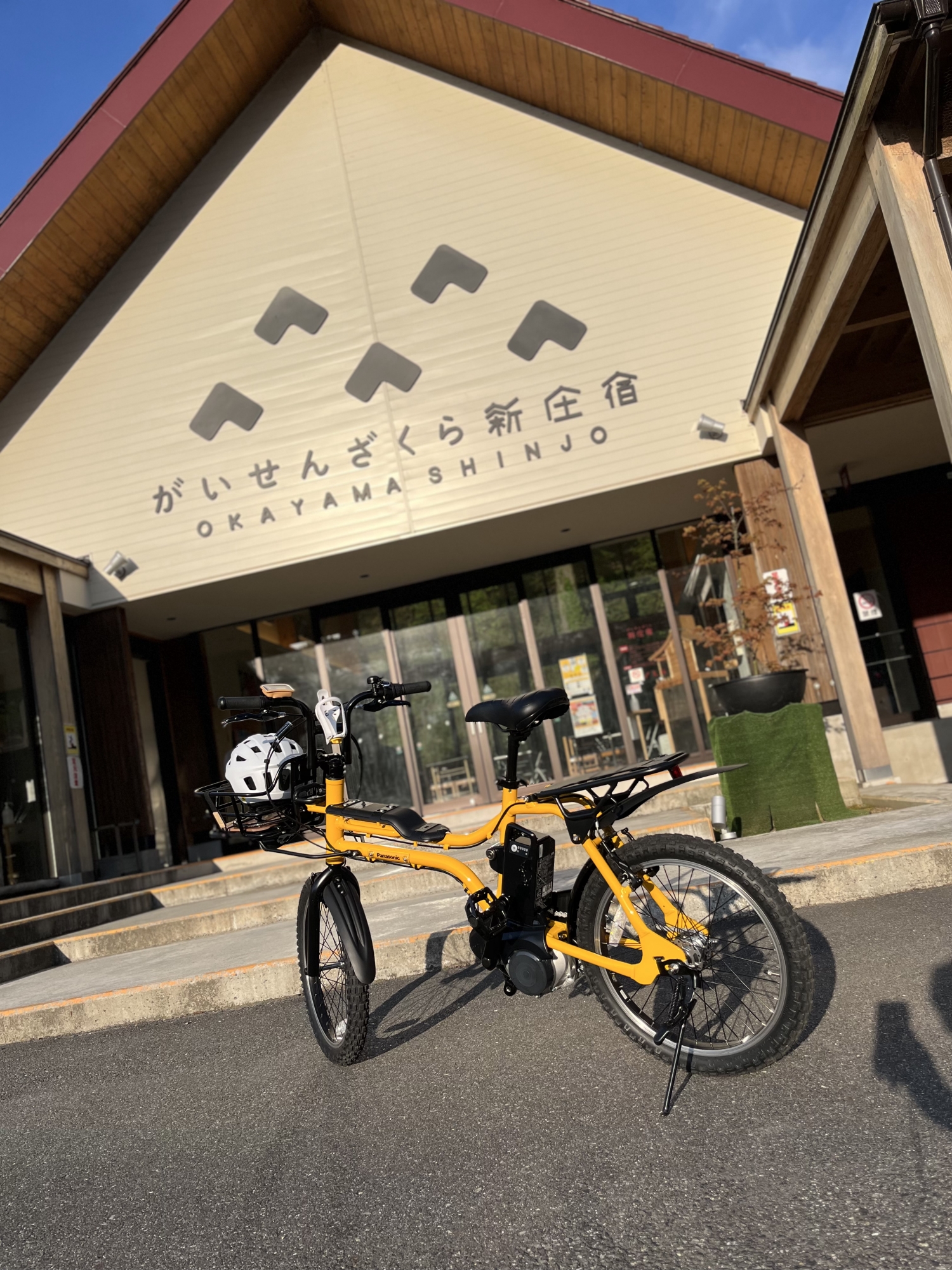 そして終了後・・・明日は、倉敷で、お土産を買いに、18時まで空いている(夏時間割)道の駅へ・・思い立って、森林セラピー協議会からの電動アシストオフロードタイヤ自転車で。。